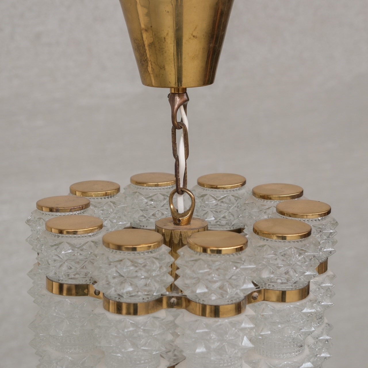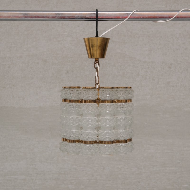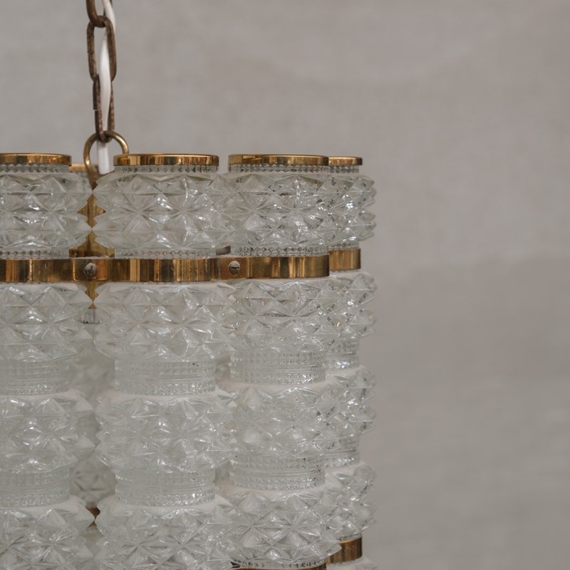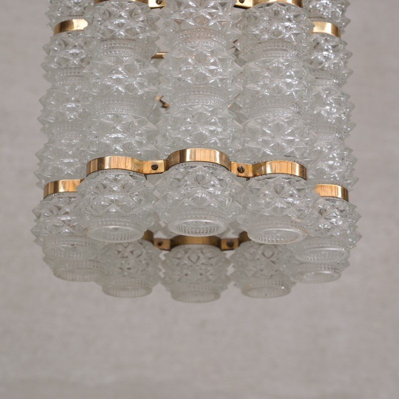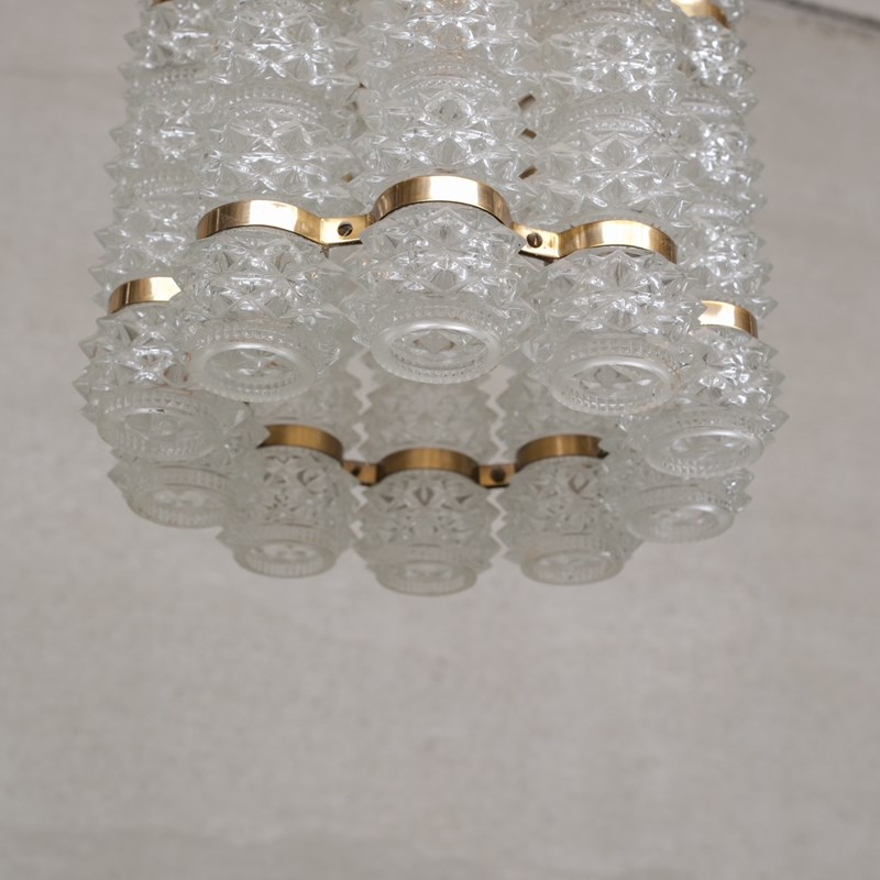 Swedish Mid-Century Brass And Glass Chandelier By Orrefors For Tyringe