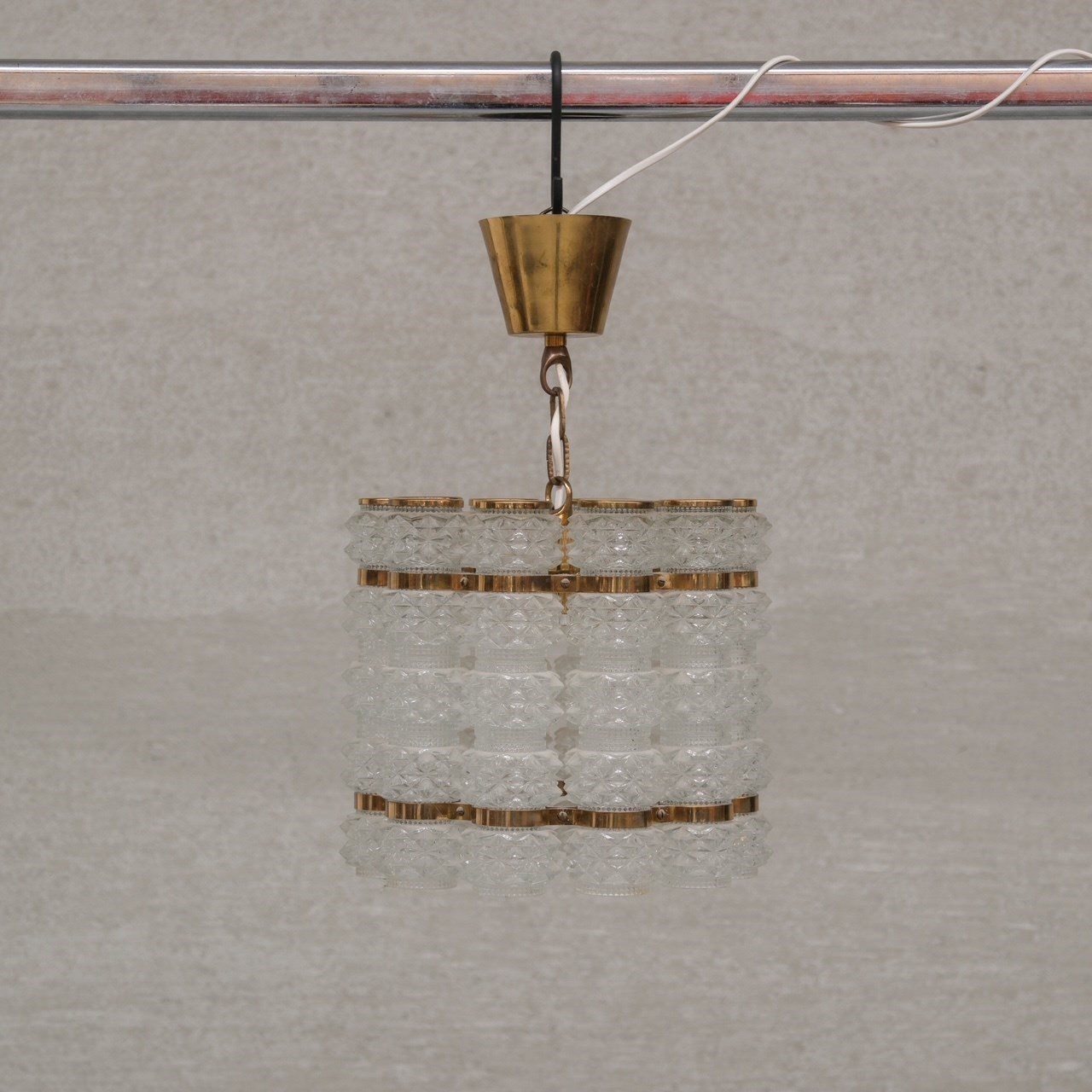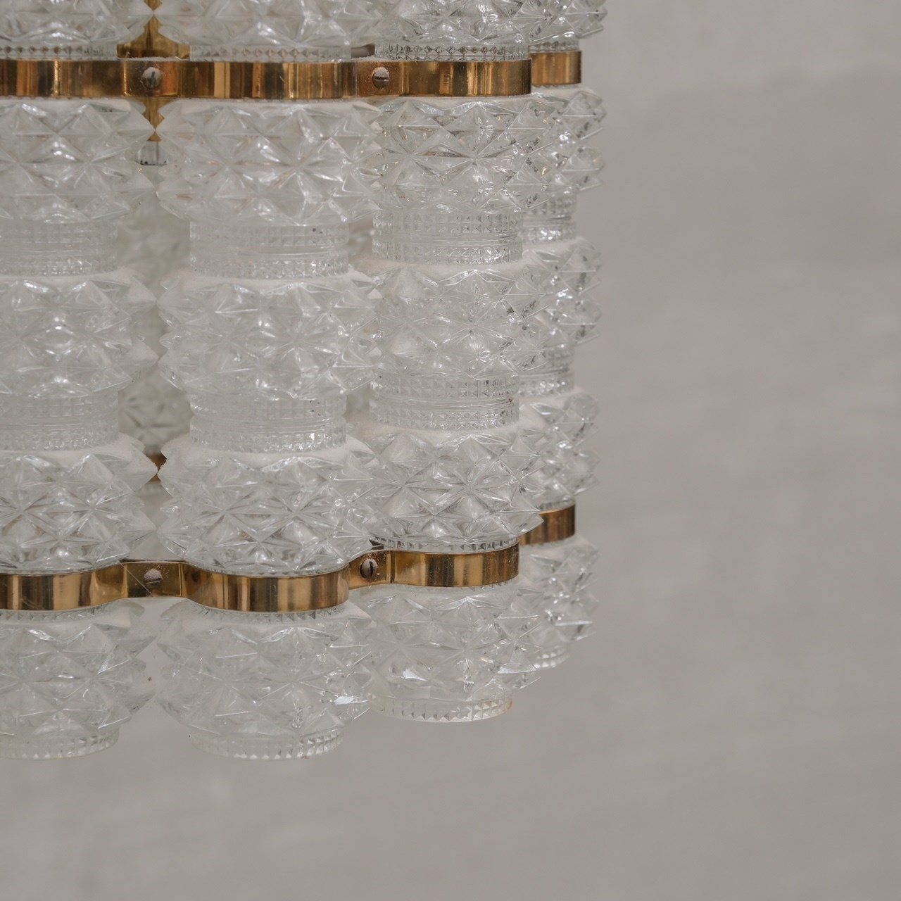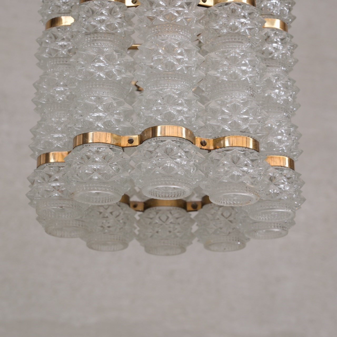 Swedish Mid-Century Brass And Glass Chandelier By Orrefors For Tyringe