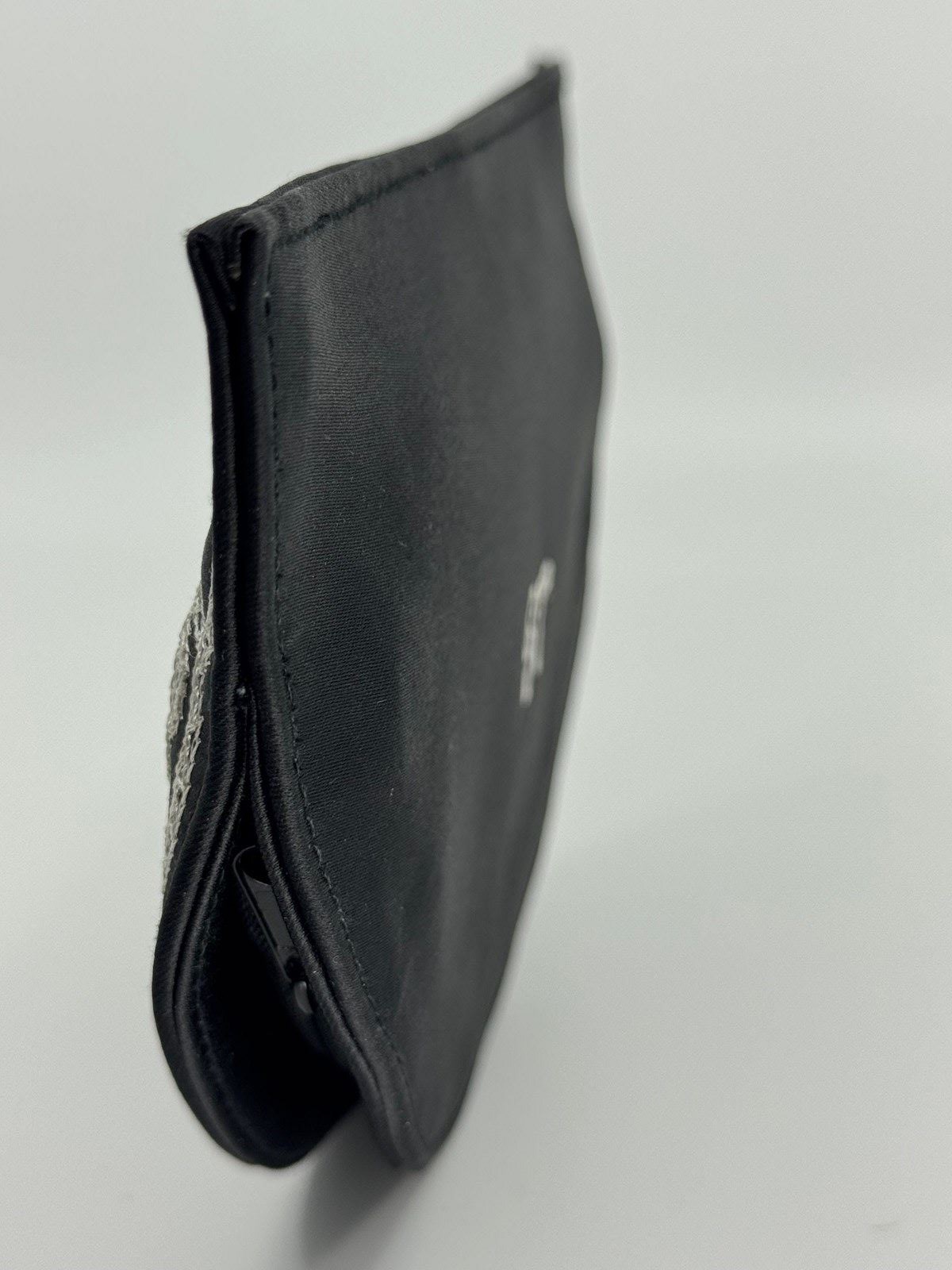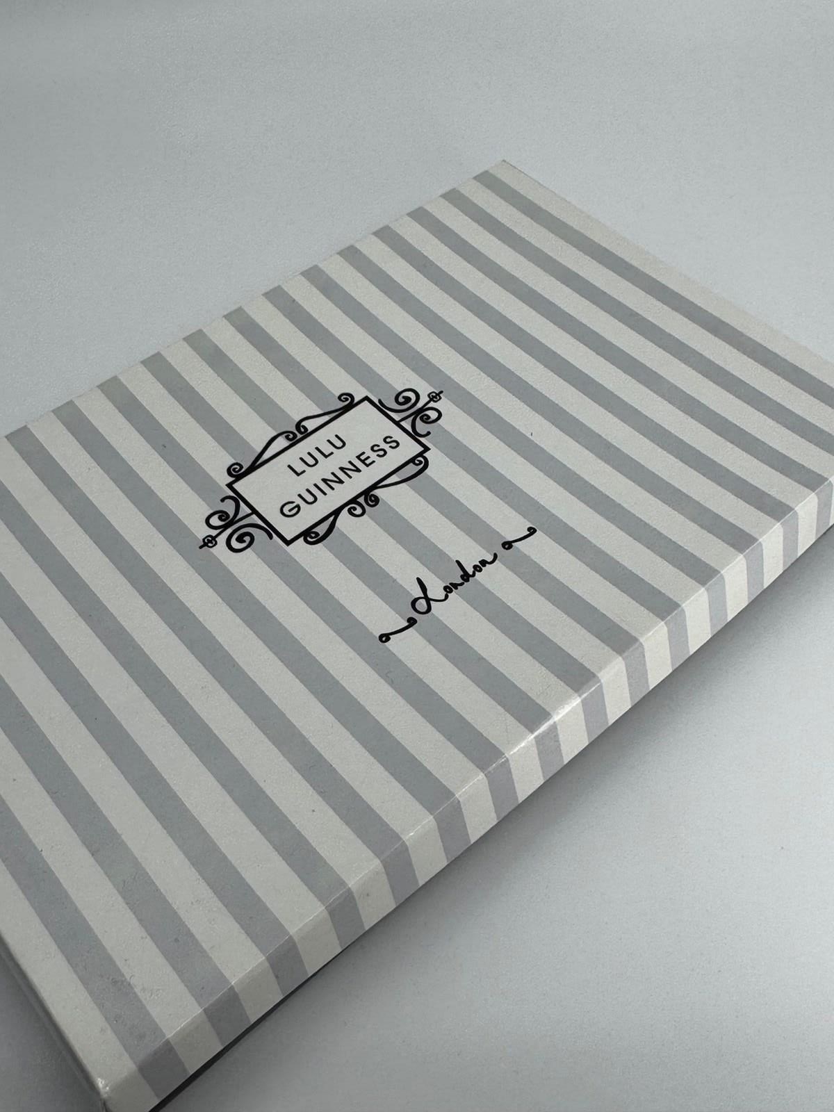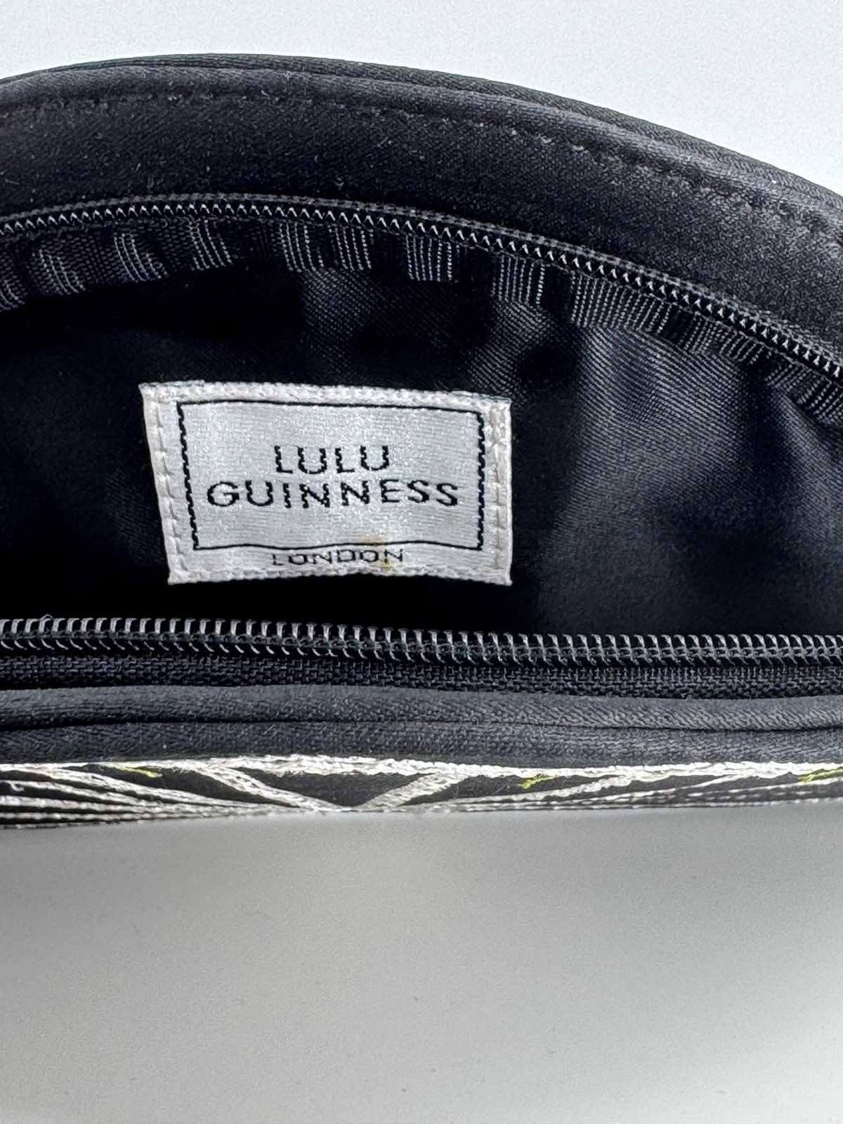 The iconic fan shape started with this embroidery design and I'm still looking to see when this particular bag was put into production, but there have been several created since 1995. It is made from black satin embroidered with white hearts and pink and green flowers within a white fan border and bears the LG initials logo on the back. Inside you have the Lulu Guinness London label and a small label confirming it is made of satin. The zip works perfectly well and the colours to the front are vivid and eye catching with no damage, marks or repairs. The box is also in very good condition.