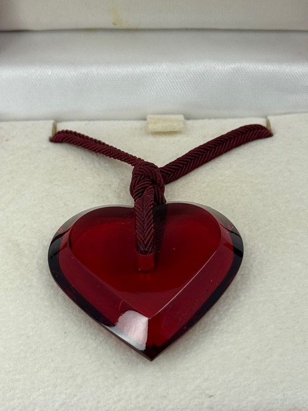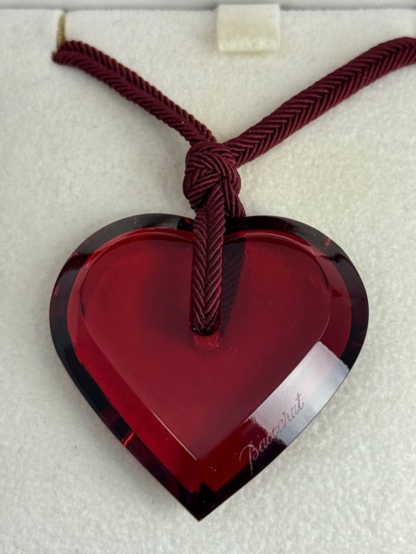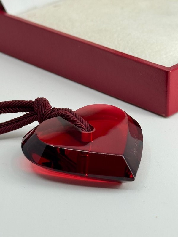 A perfect little crystal red cherry heart from the Les Bijoux range of Baccarat jewellery of lovely quality.