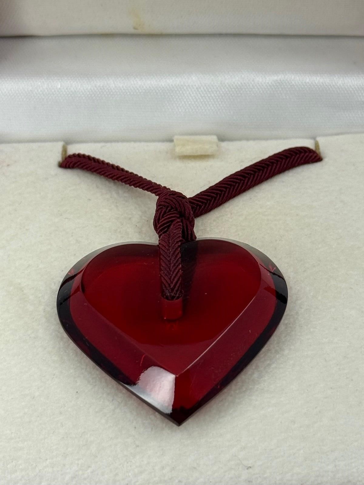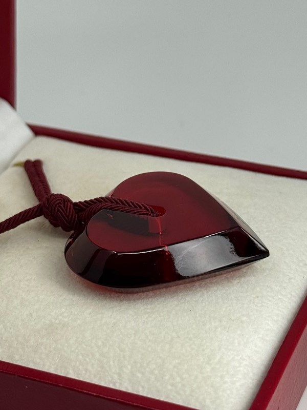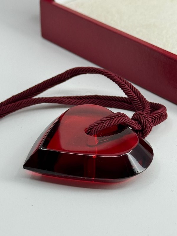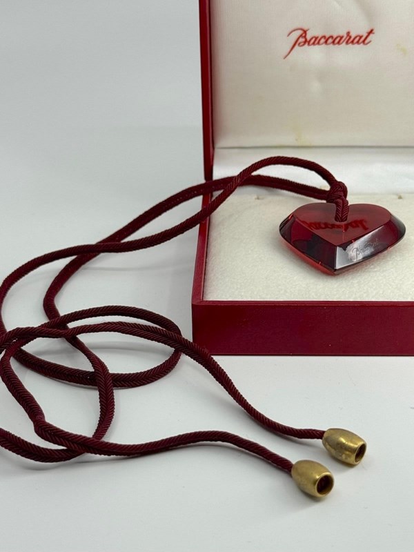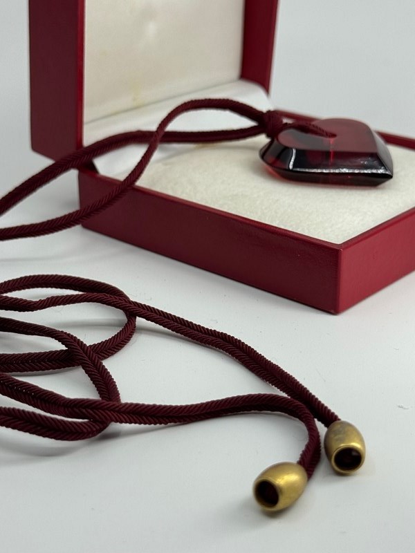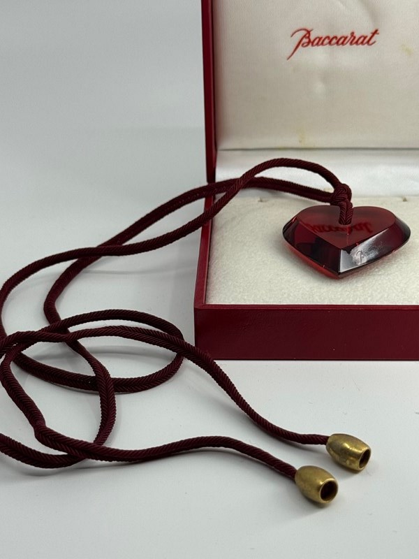The pendant, that is laser engraved Bacarrat on the side, is held on the original red fabric rope necklace strap so you can wear this as a choker, or at a longer length to suit your dress style at the time of wearing.