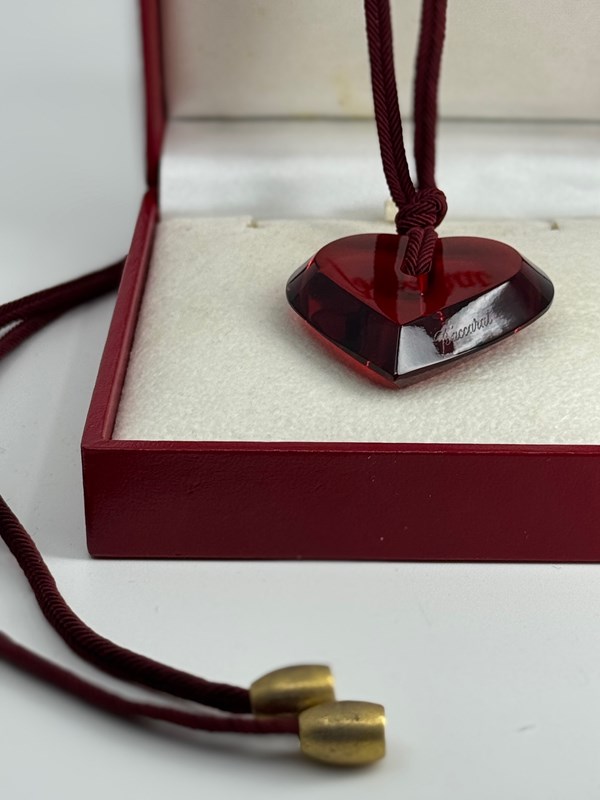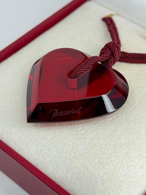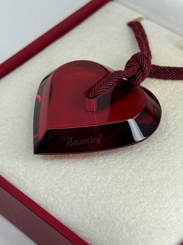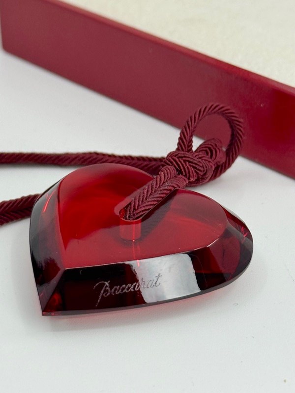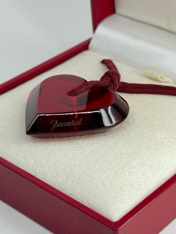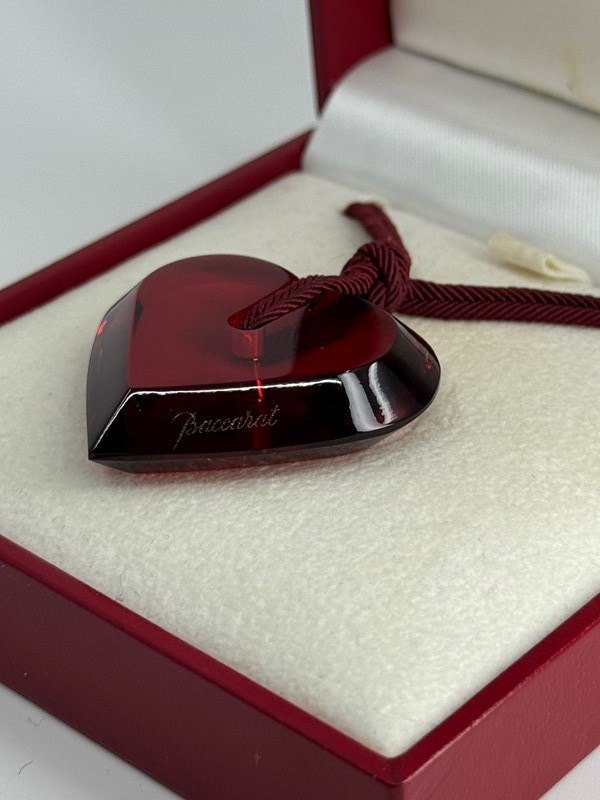 The pendant, that is laser engraved Bacarrat on the side, is held on the original red fabric rope necklace strap so you can wear this as a choker, or at a longer length to suit your dress style at the time of wearing.