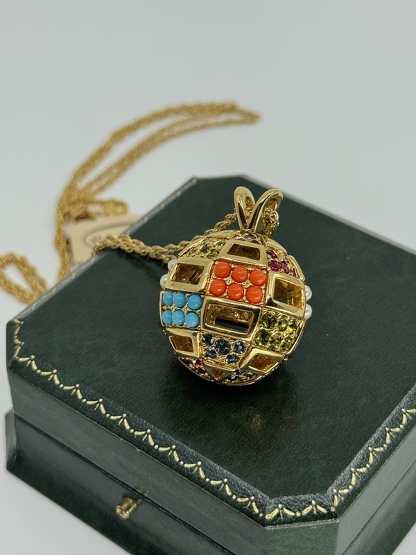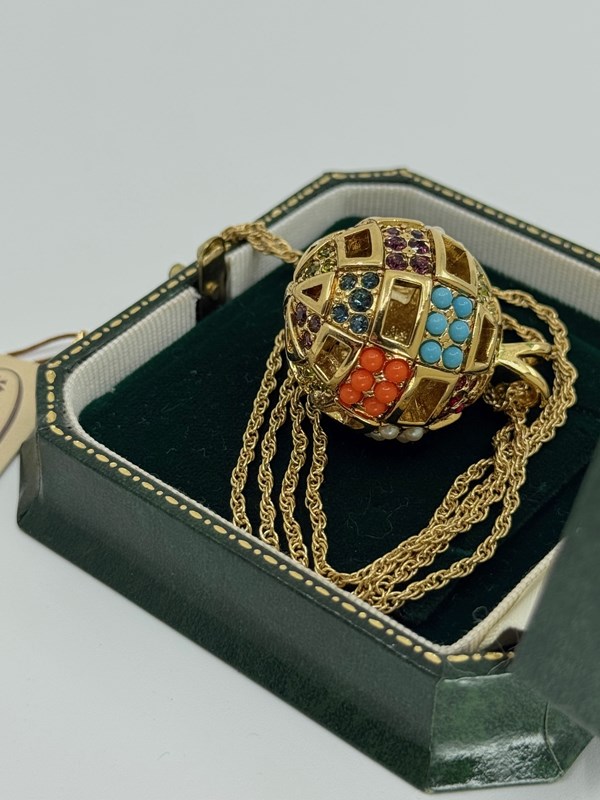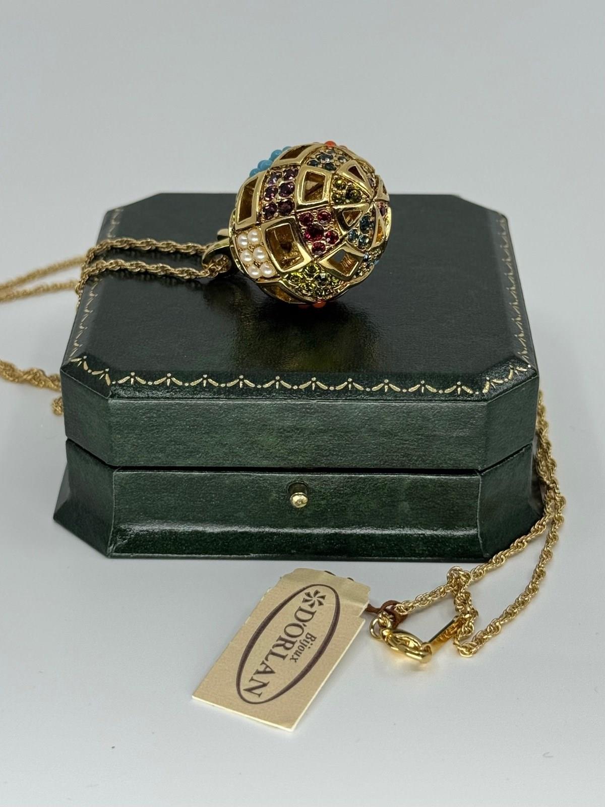 A fun and vibrant vintage 1980s D'Orlan multi-coloured ball pendant on original gold plated finish rope chain, that secures with a signed tag and lobster clasp. Also still attached is the original D'Orlan label and we believe this necklace has never been worn.