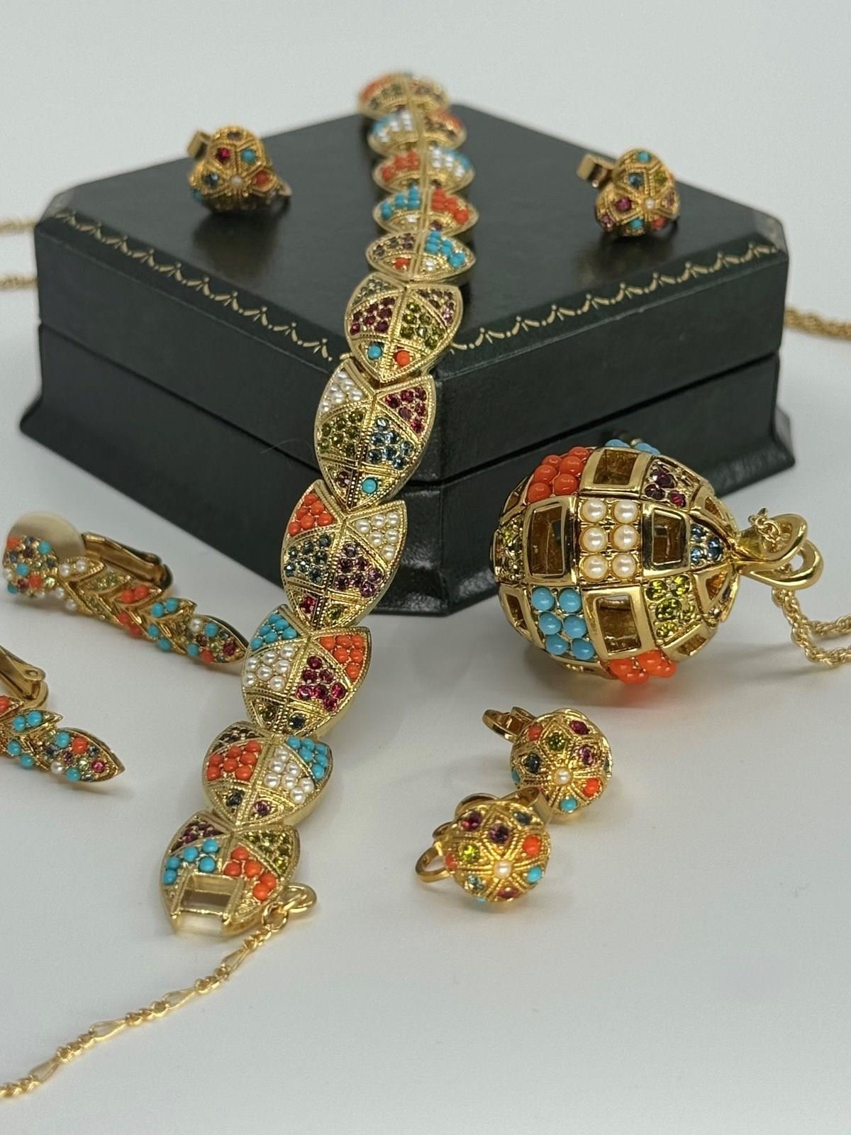 Also available for sale separately, are matching accessories for this piece. We have 3 pairs of clip on earrings, 1 heart shaped, 1 round shaped and the last a pair of drop earrings, along with a pretty bracelet (see final pictures of each). All in great original order.