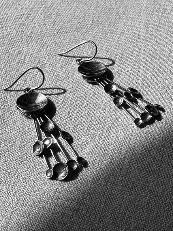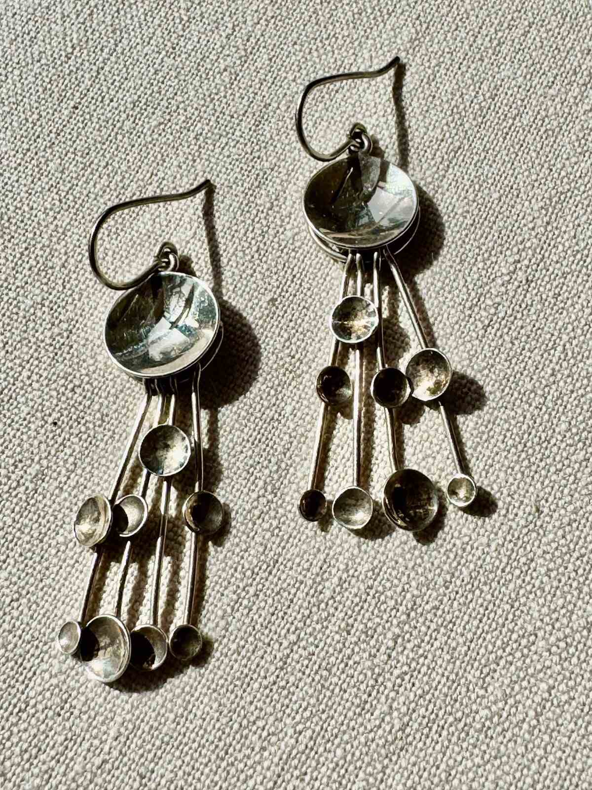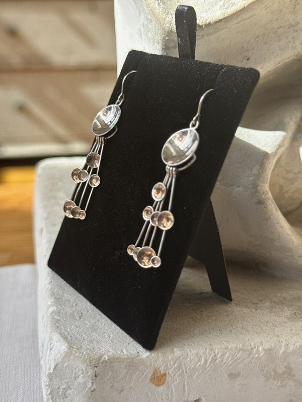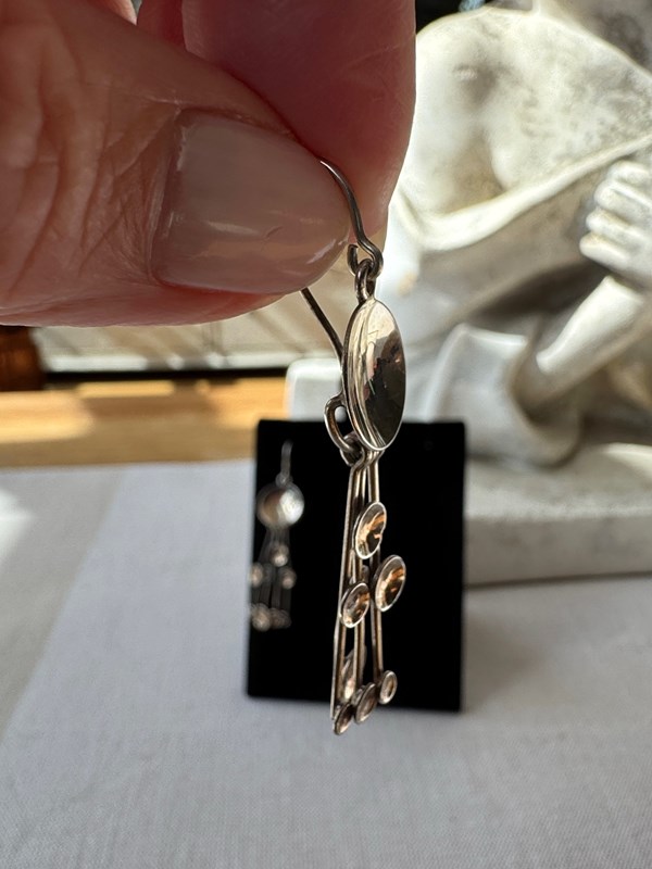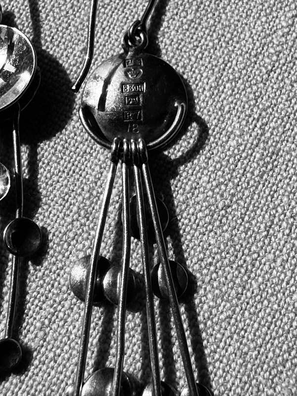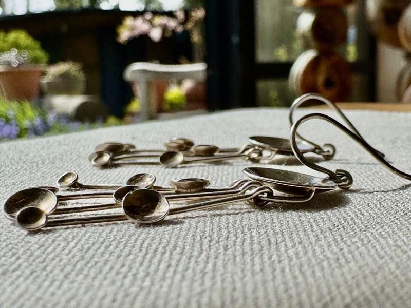 A striking pair of 1970s hallmarked Jorma Laine 830 silver dangling 'Kinetic Fireworks' earrings in all original and very good condition, they are light and easy to wear.