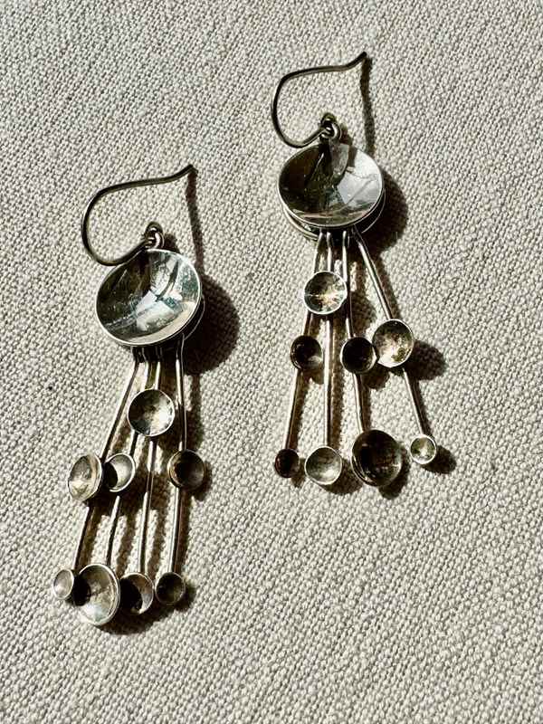 Jorma Laine 1970S Pair Of Kinetic Fireworks Silver Earrings