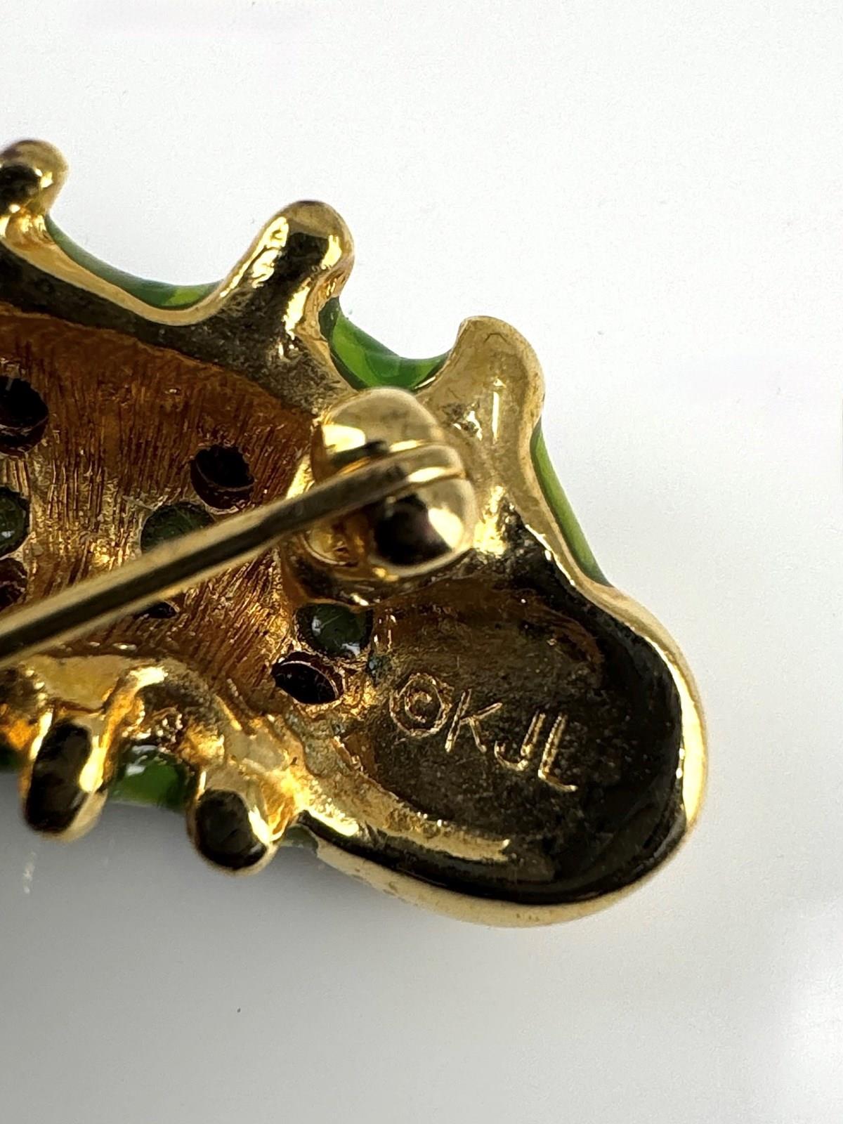 Wonderfully vibrant and in excellent original condition, is this 1980s vintage Caterpillar brooch, stamped with KJL for American jewellery designer Kenneth Jay Lane (1932-2017).