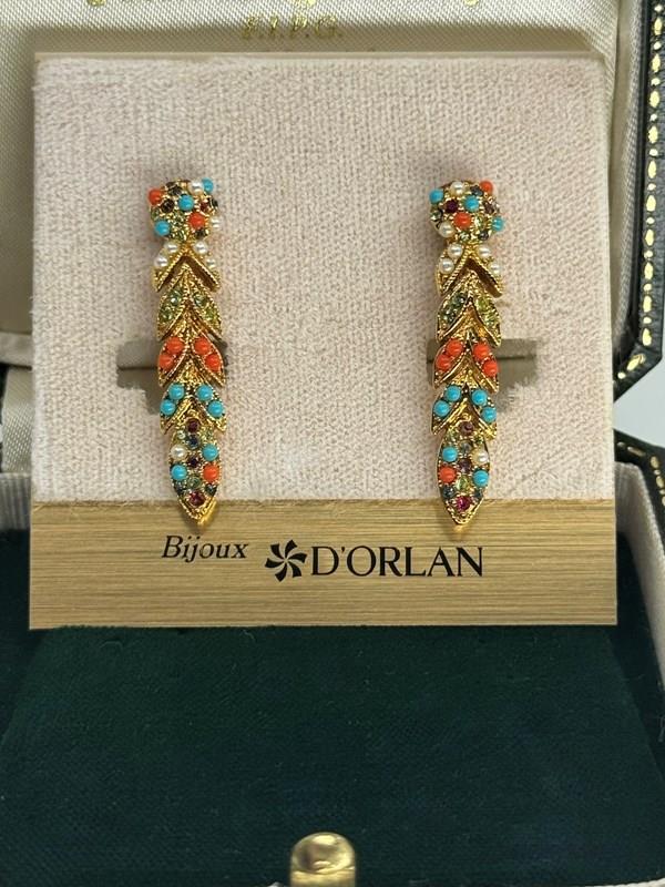 D'Orlan was founded in Toronto, Canada in 1957 by Maurice Bradden. It acquired the Marcel Boucher company in 1979. In 1984, D'Orlan formed a partnership with the fashion house Nina Ricci to produce costume and precious jewellery under the Nina Ricci brand, utilizing D'Orlan's high quality 22-karat triple-plated finish. Well respected for it's craftsmanship, attention to detail, and use of Swarovski crystals and Japanese pearls, D'Orlan ceased operating in March 2006.