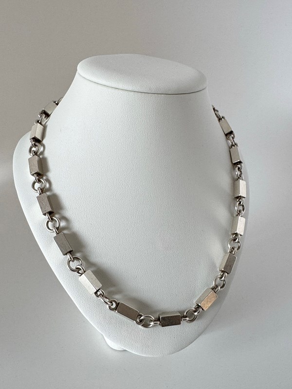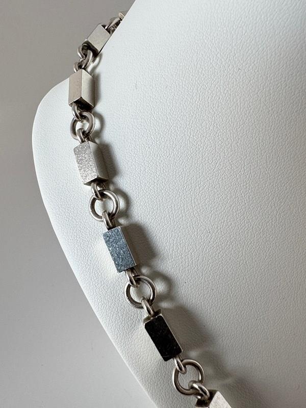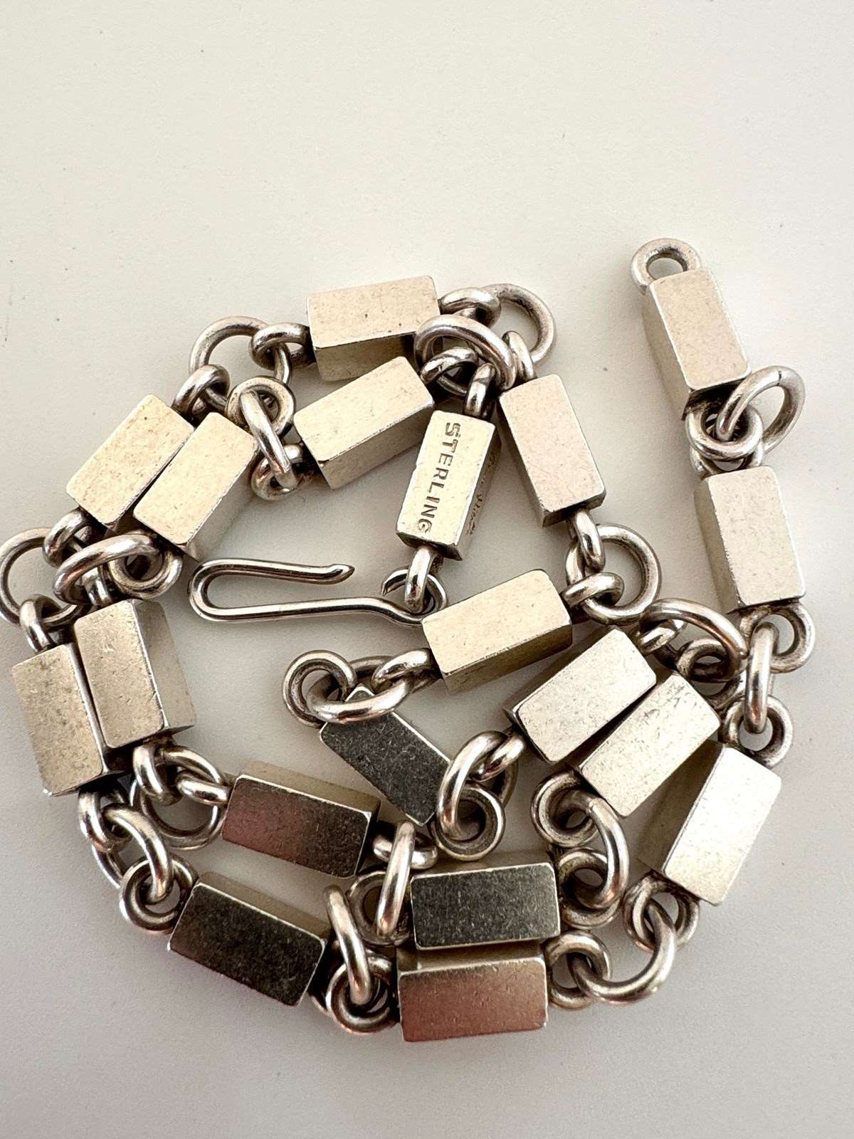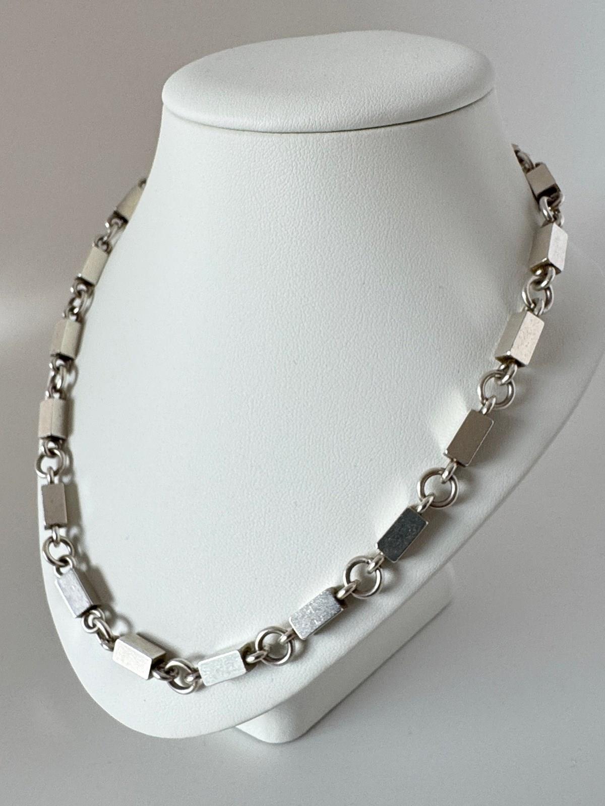 His work is always of excellent quality and much desired throughout the world. This is an iconic necklace and can be found in various lengths. This particular piece is approx 43cm in length and sits really well and comfortably on the neck. I also have a matching bracelet which I will list separately. There is just something about his works that stand apart from most others. They look expensive, they feel expensive and yet all achieved without the need for added decoration, as is his signature style.