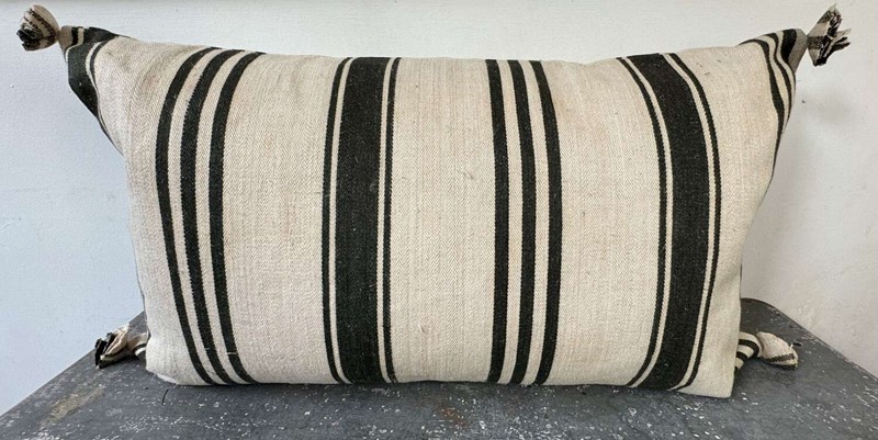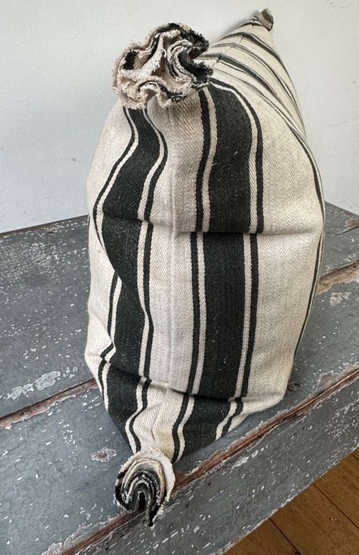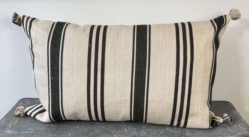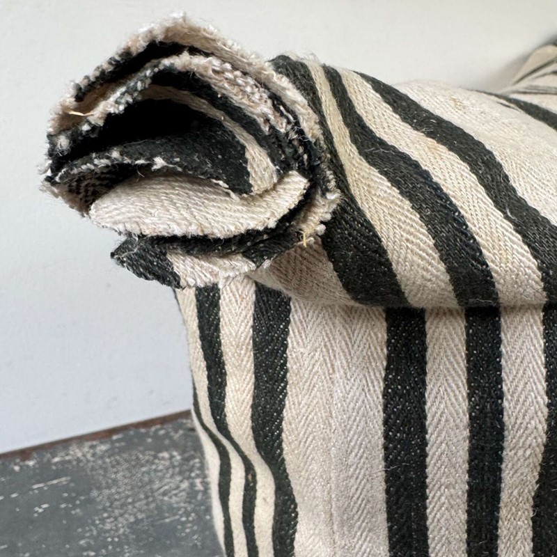 Dark Grey/Black Striped Hemp Cushion French 19Th Century
