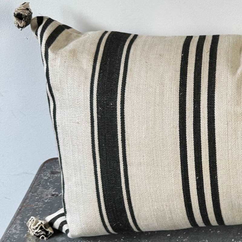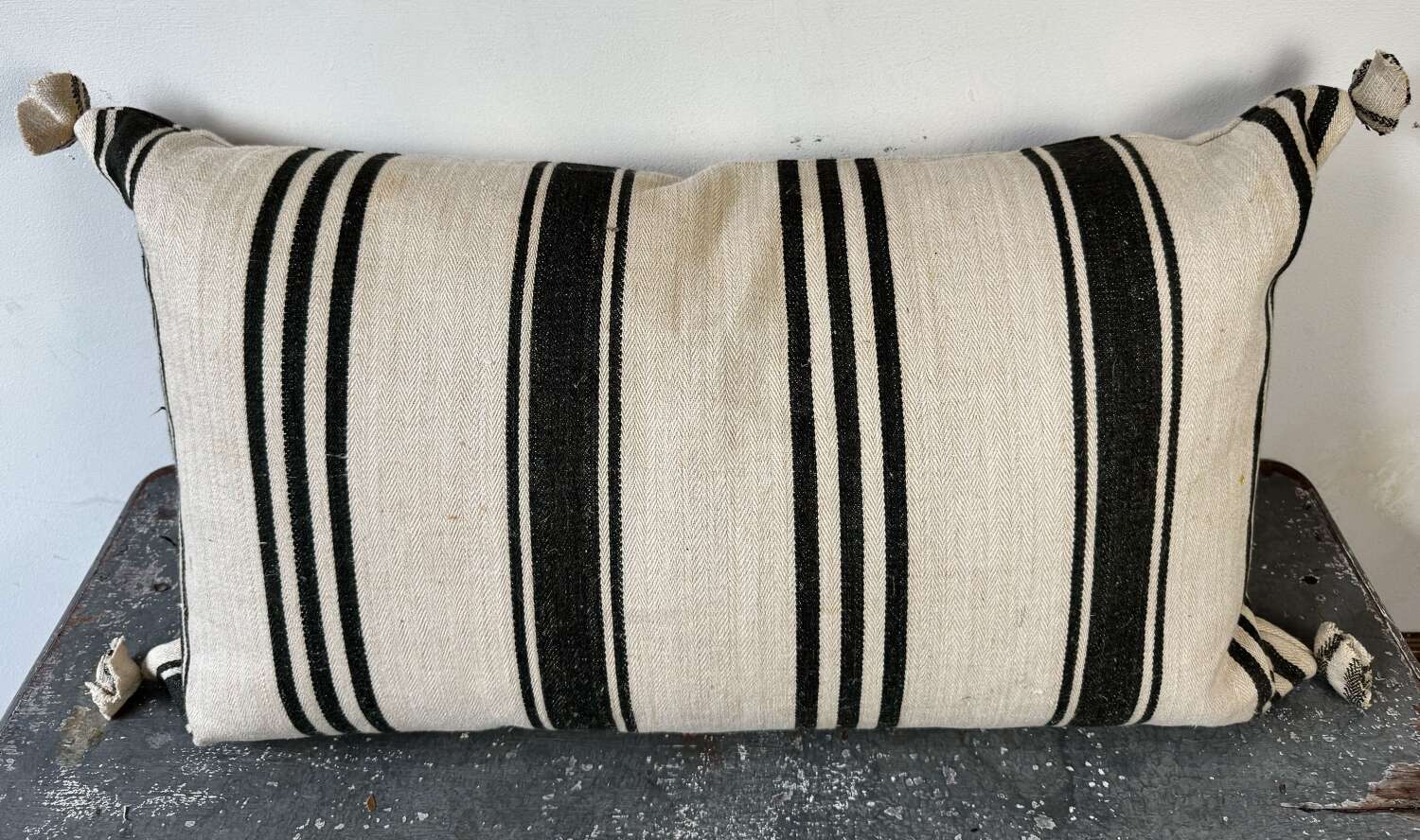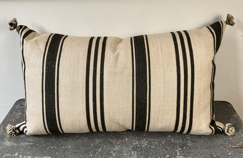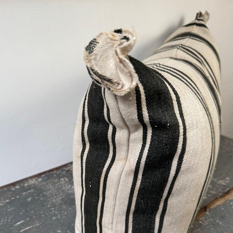 Dark Grey/Black Striped Hemp Cushion French 19Th Century