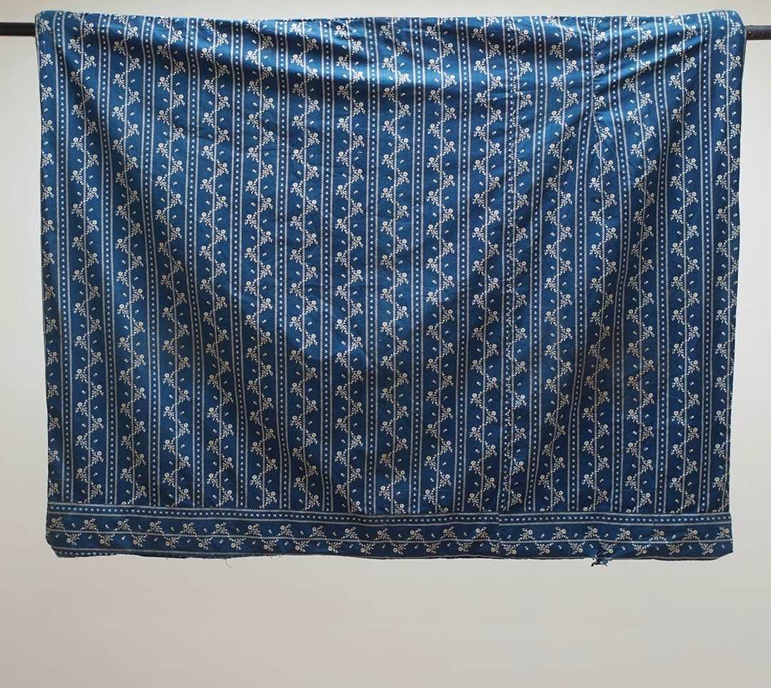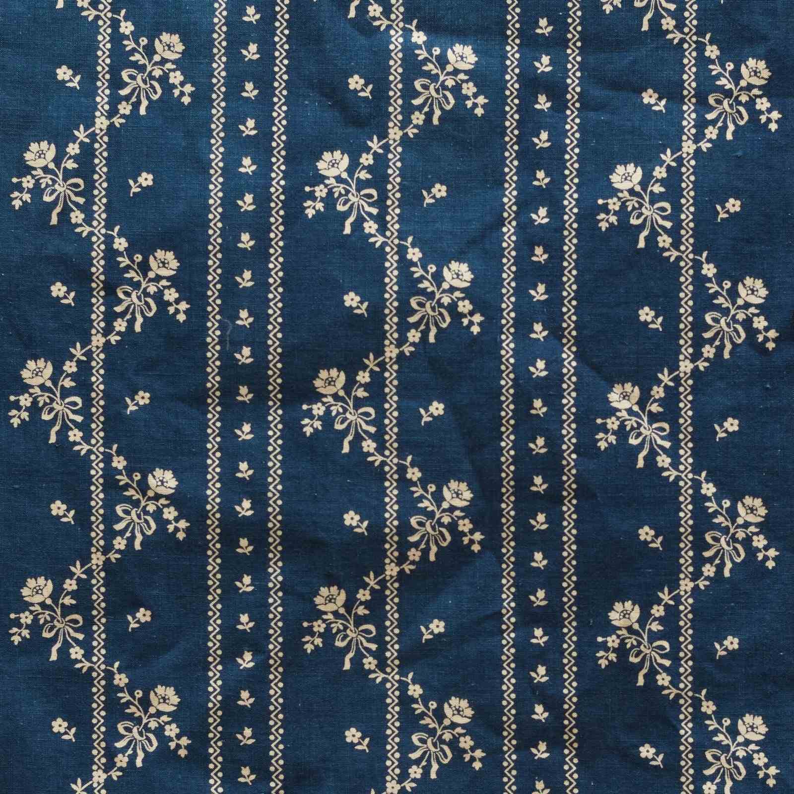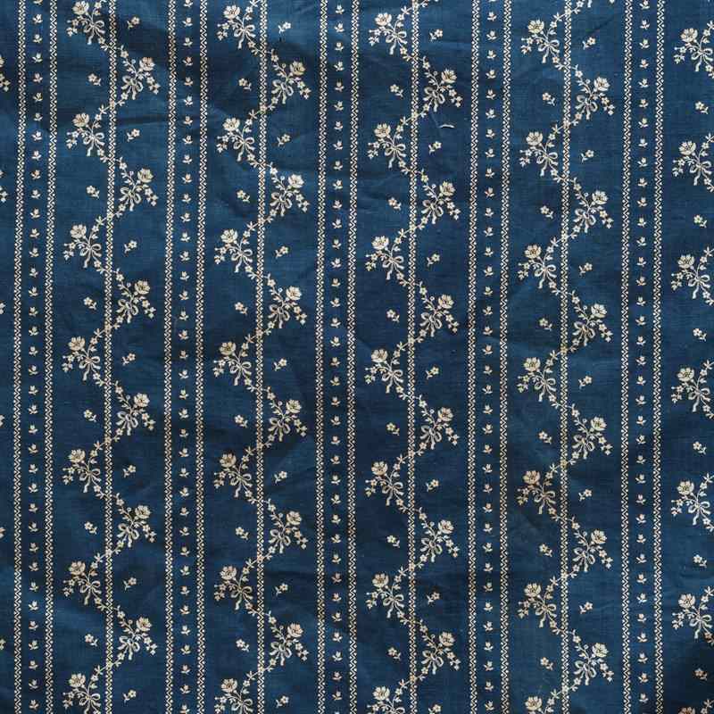 Indigo Floral Stripe Printed Cotton French 19Th Century