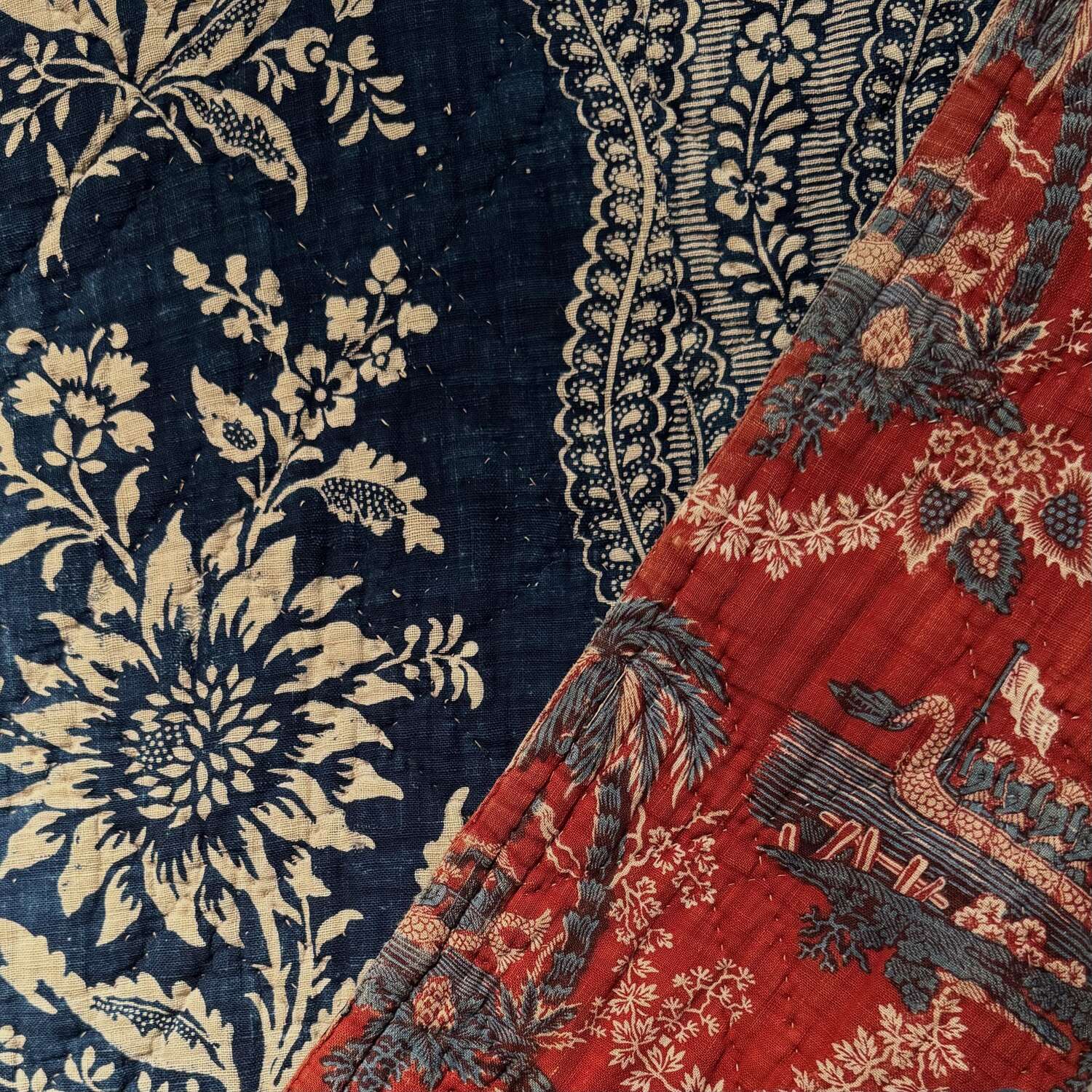 Indigo Flowers/ Dragon Boats Quilt