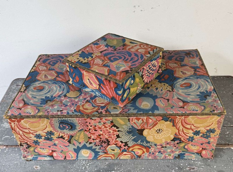 Pair of Art Deco Textile Covered Boxes French 20th Century