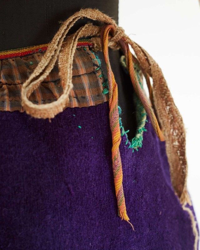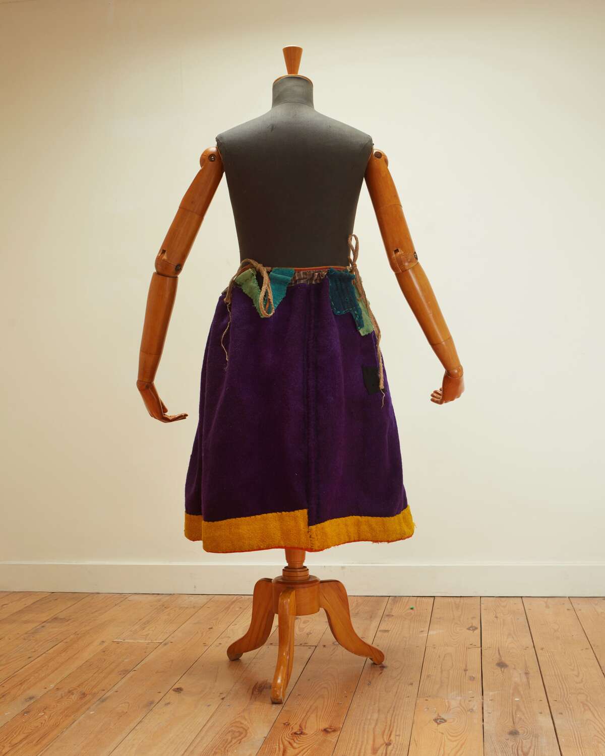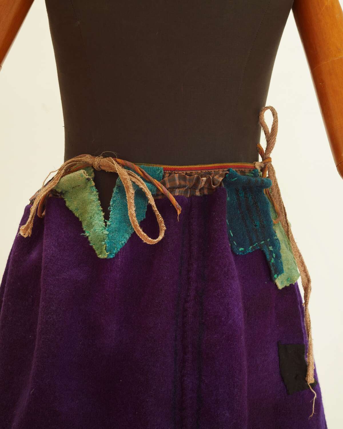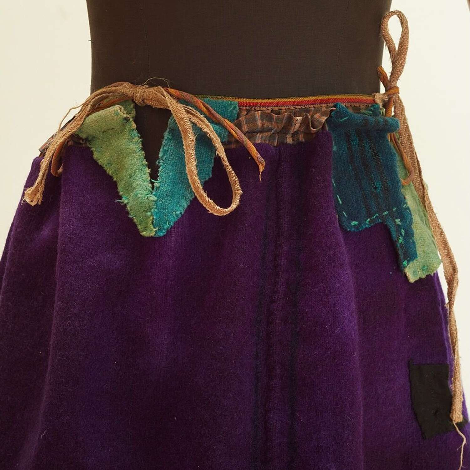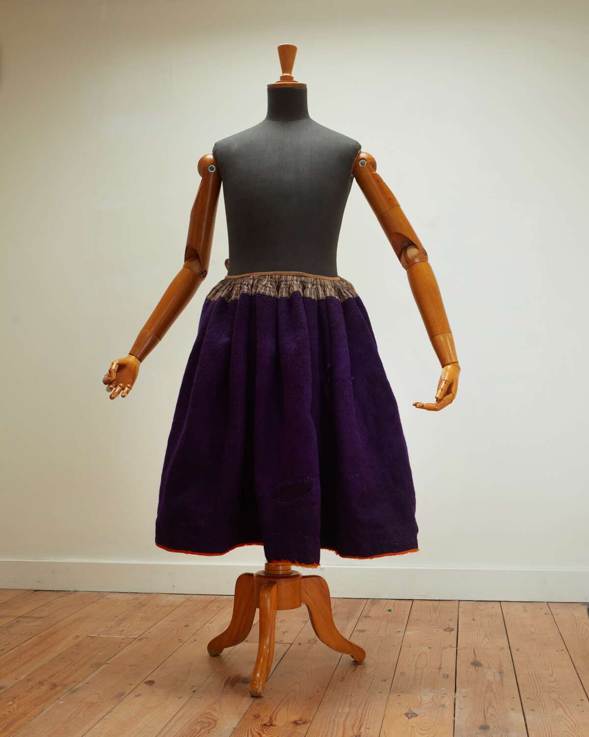 A 19th century French, from Lourdes,Hautes-Pyrénées in the South West, peasant woman'sboiled wool skirt in a wonderful dark emerald green colour.Beautifullyrustic with old patched repairs.