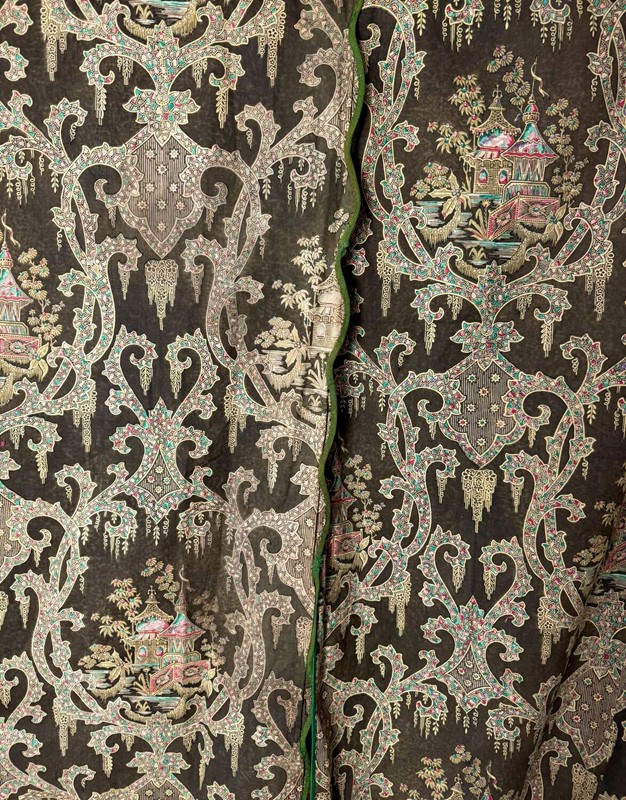 Two Chinoiserie Curtains French 19Th Century