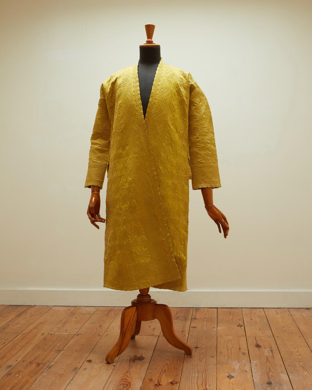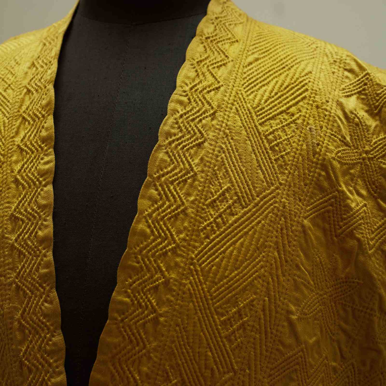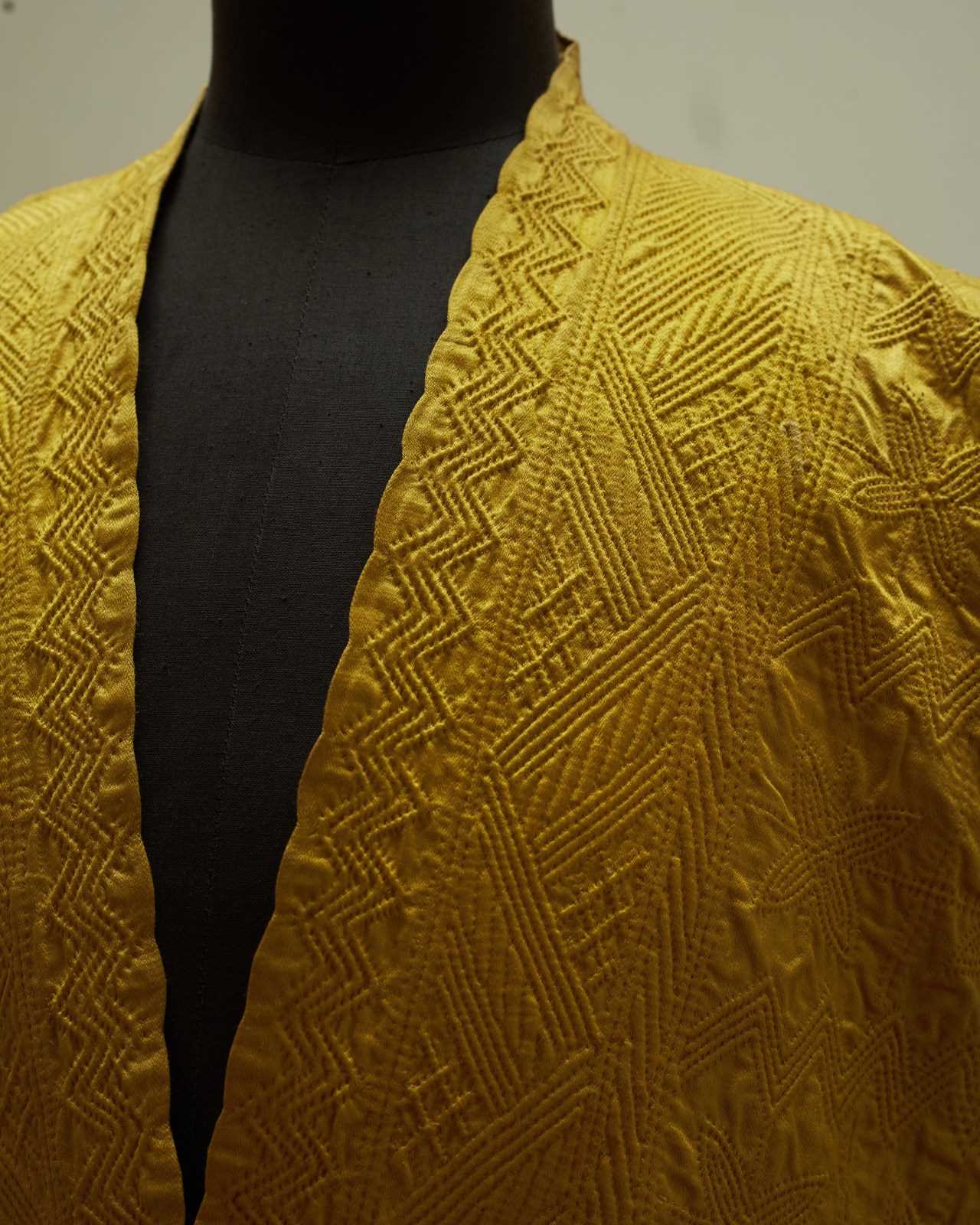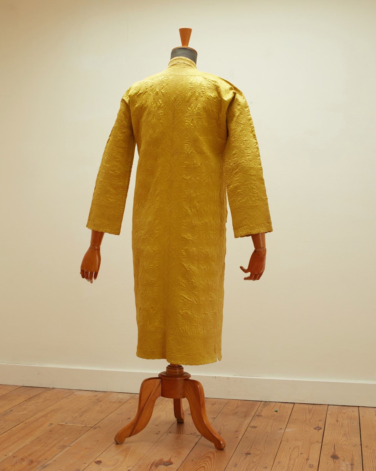 Beautiful 19th century Syrian yellow silk robe to be worn at a hammas with exquisite densely patterned stitching.