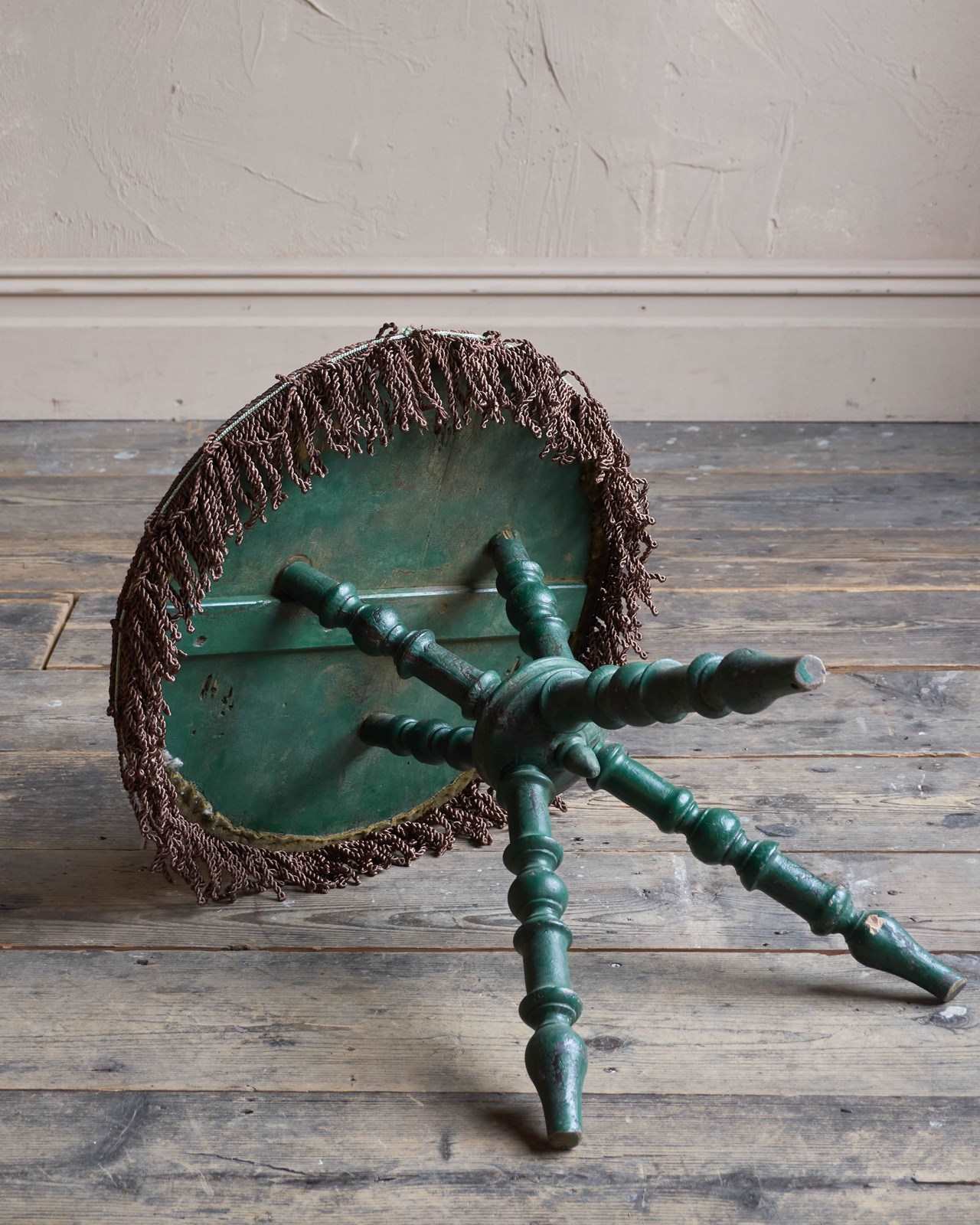 Old distressed green paint to the legs.