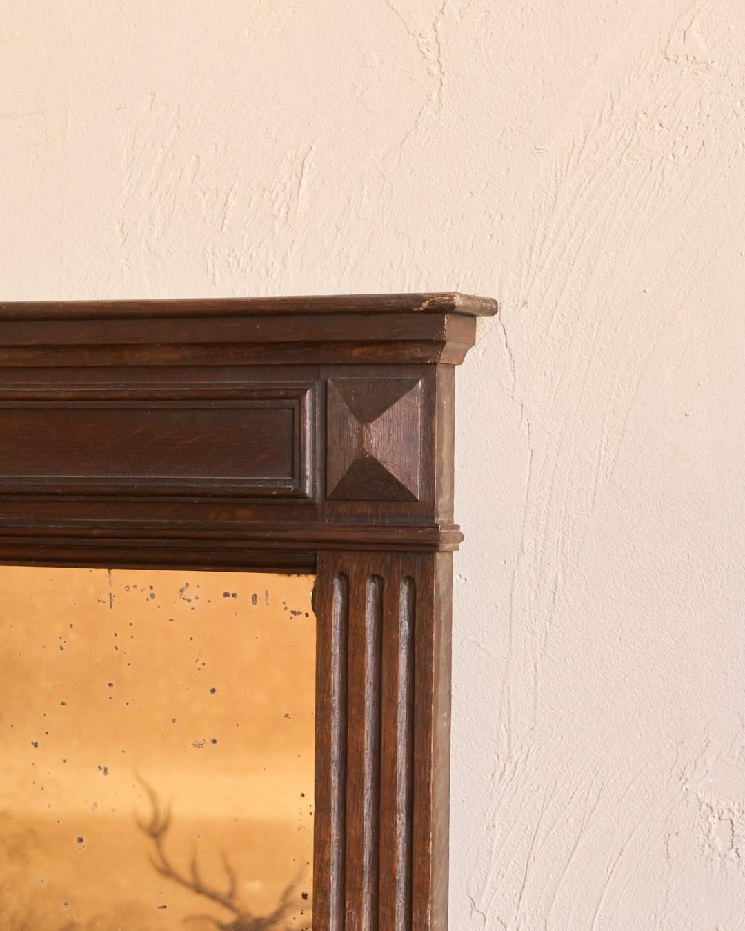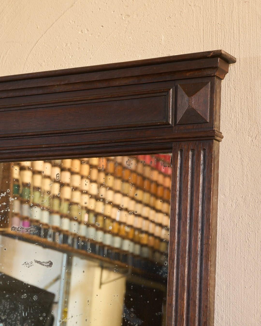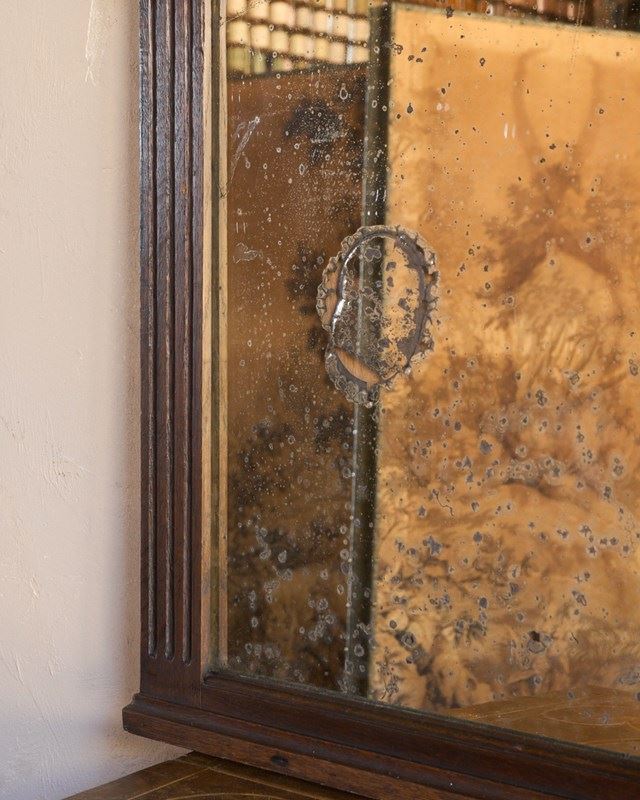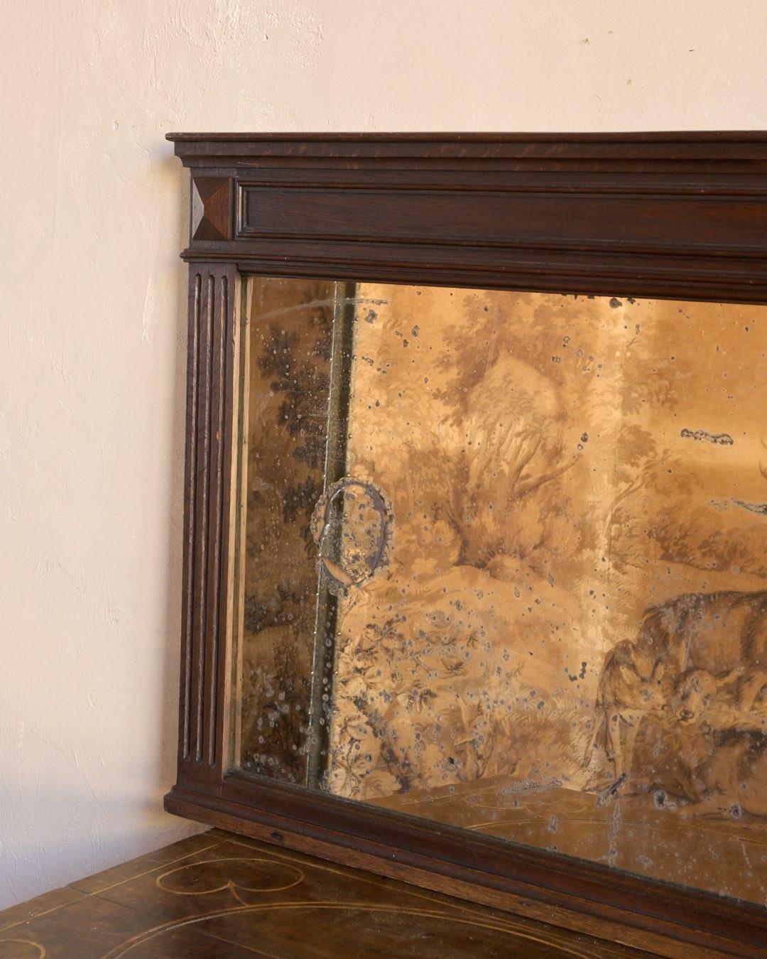 A French oak mantle mirror with foxing.