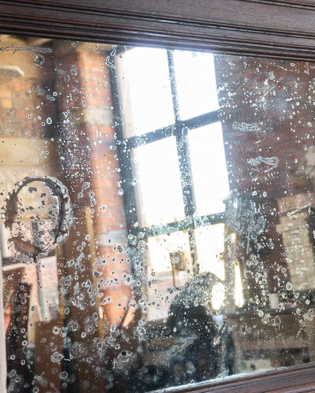 The mercury on the mirror plate is foxed.