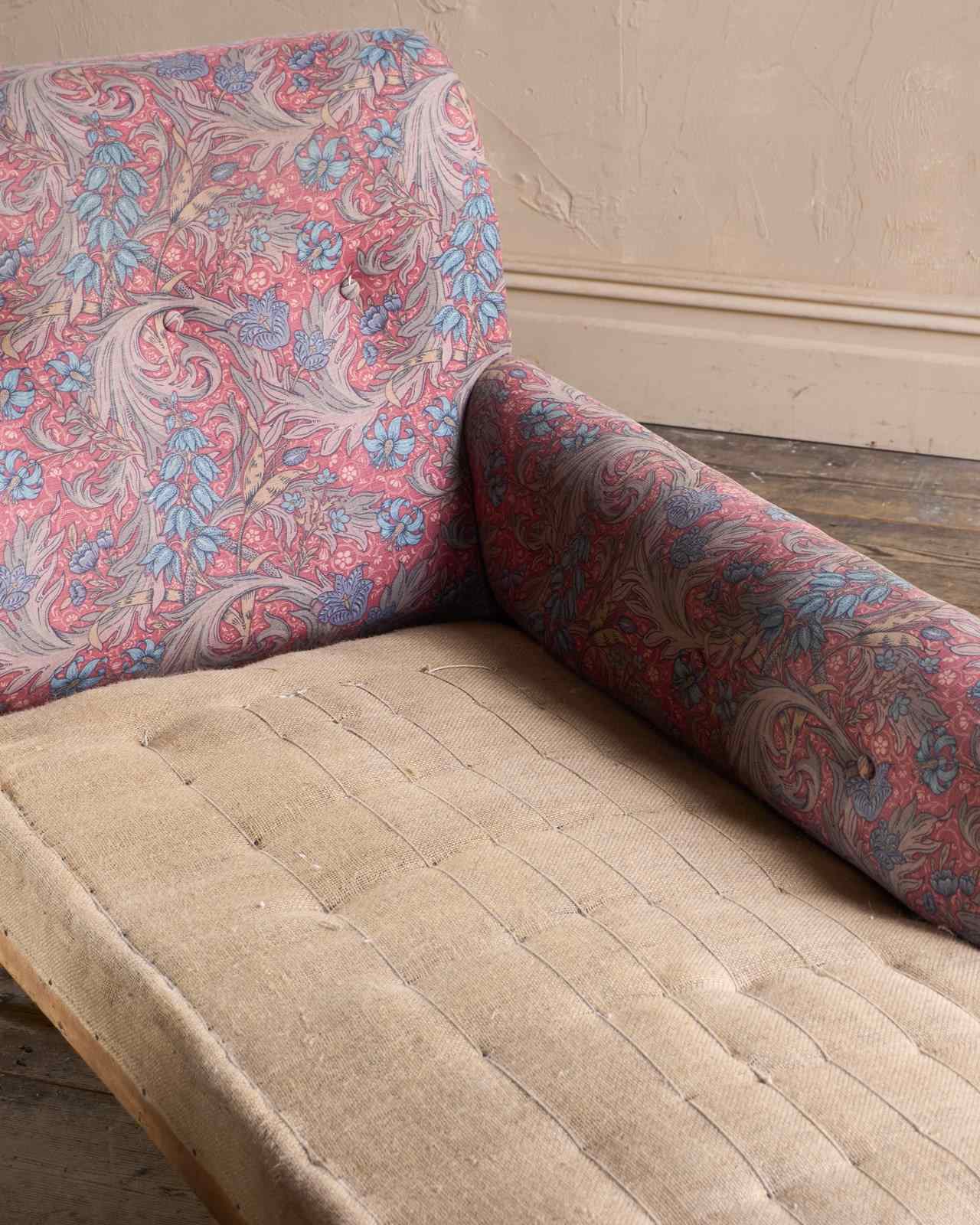 Fully traditionally upholstered, with a hand tied sprung seat and with horsehair fillings.