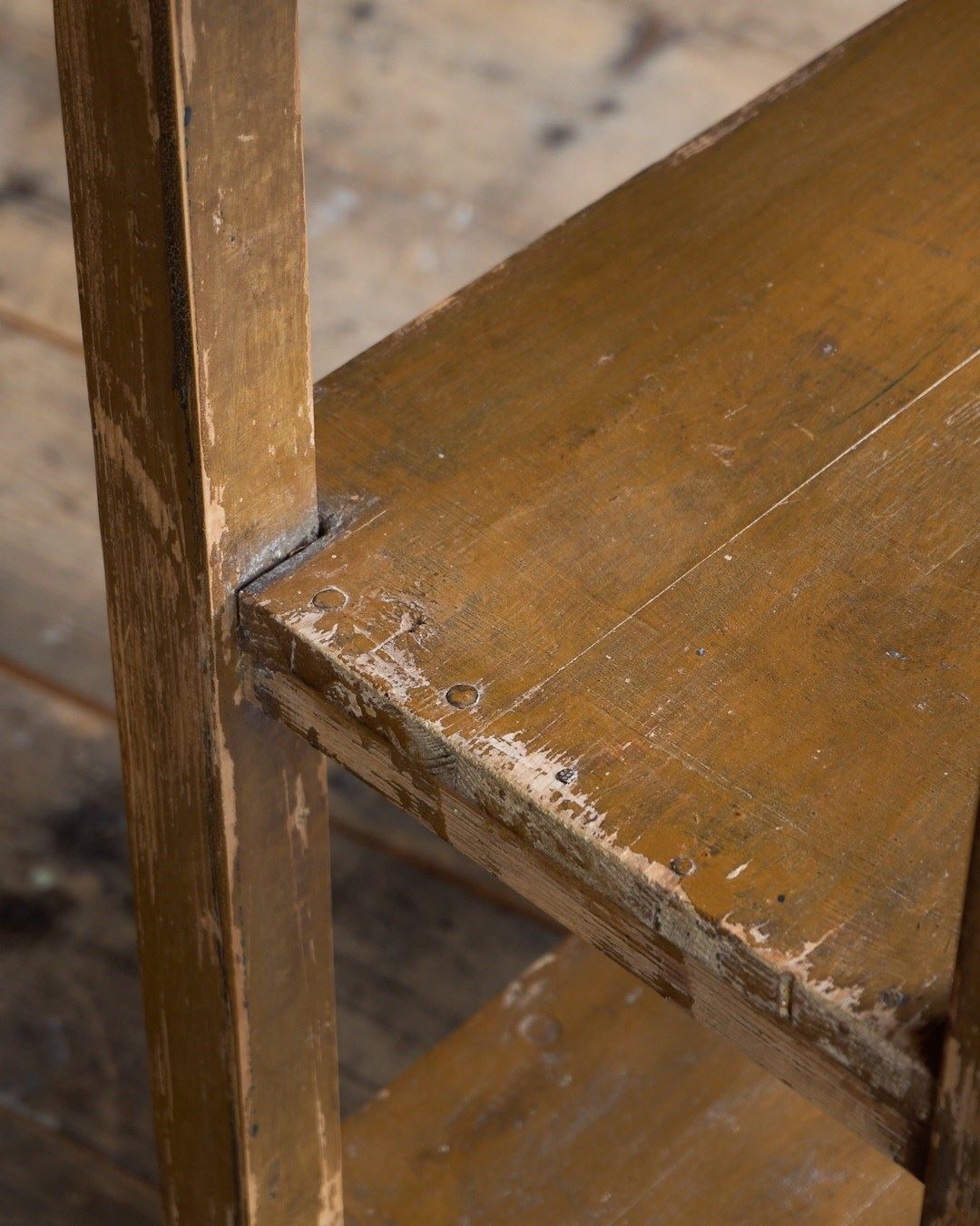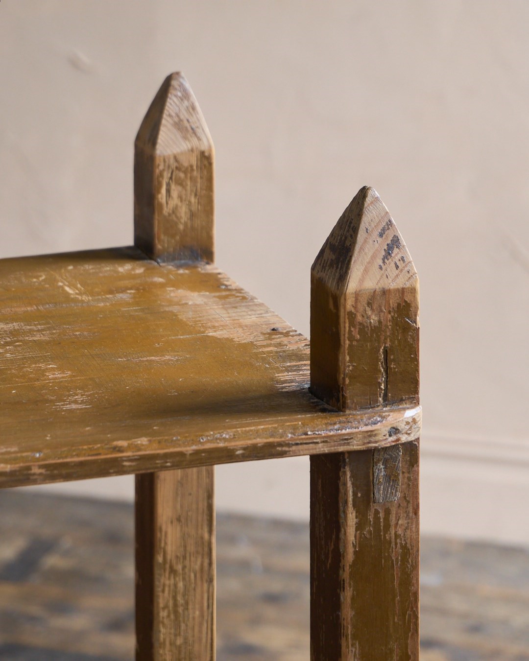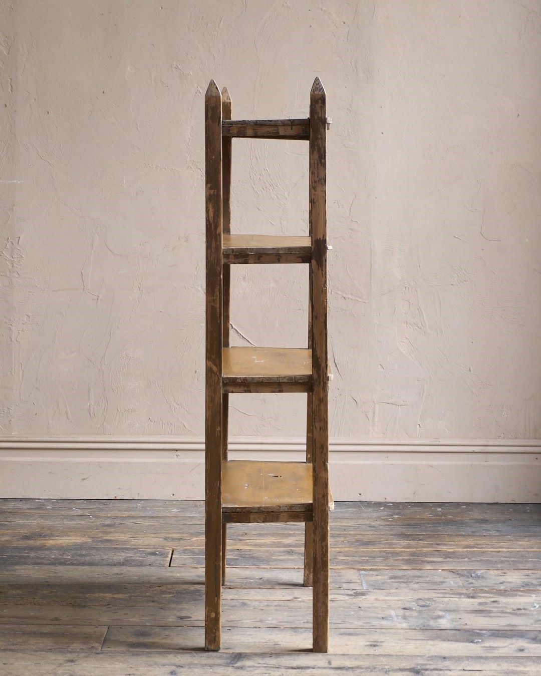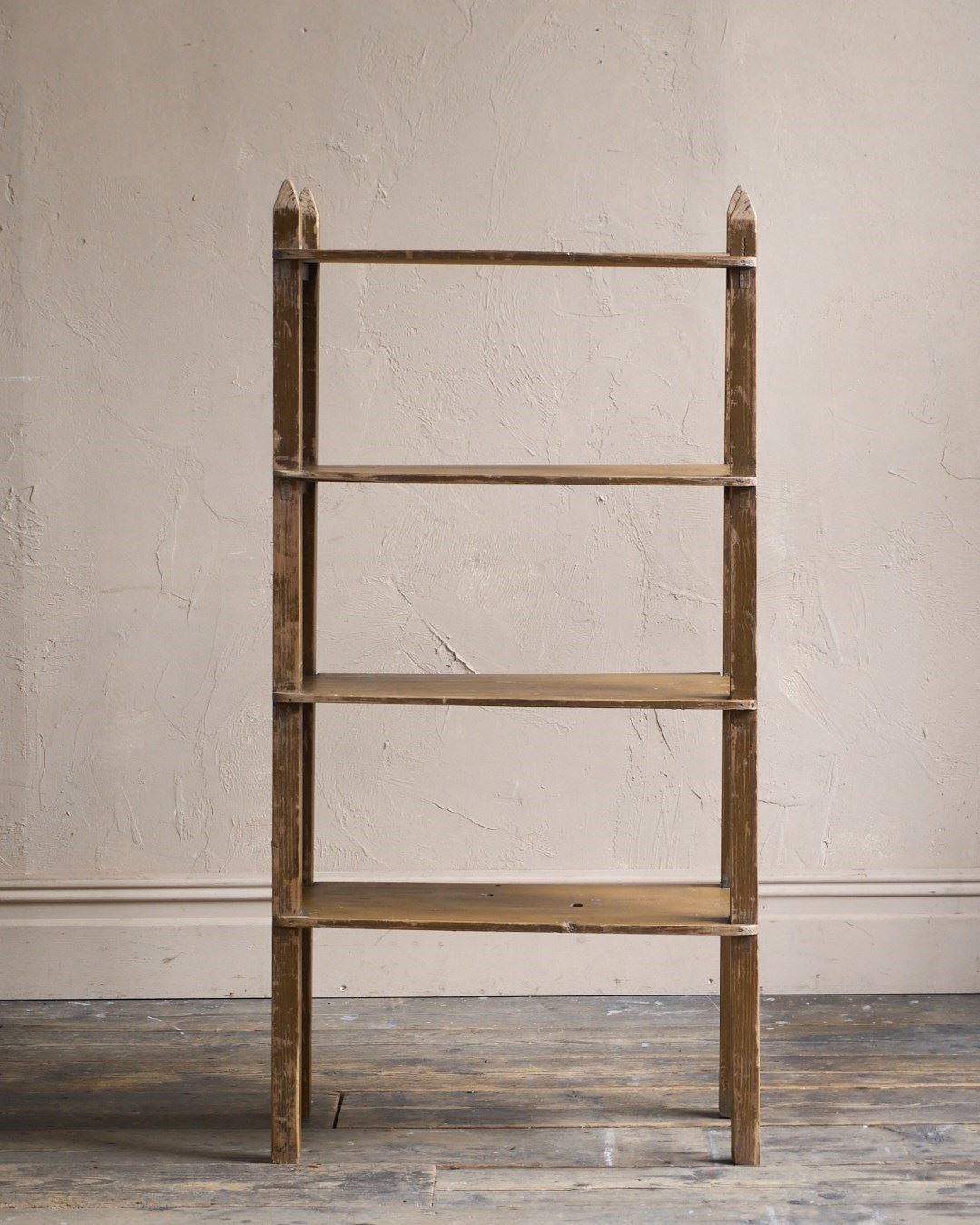 Made from Baltic pine this shelf unit was made by hand and painted in a light brown earth pigment paint which is now heavily distressed.