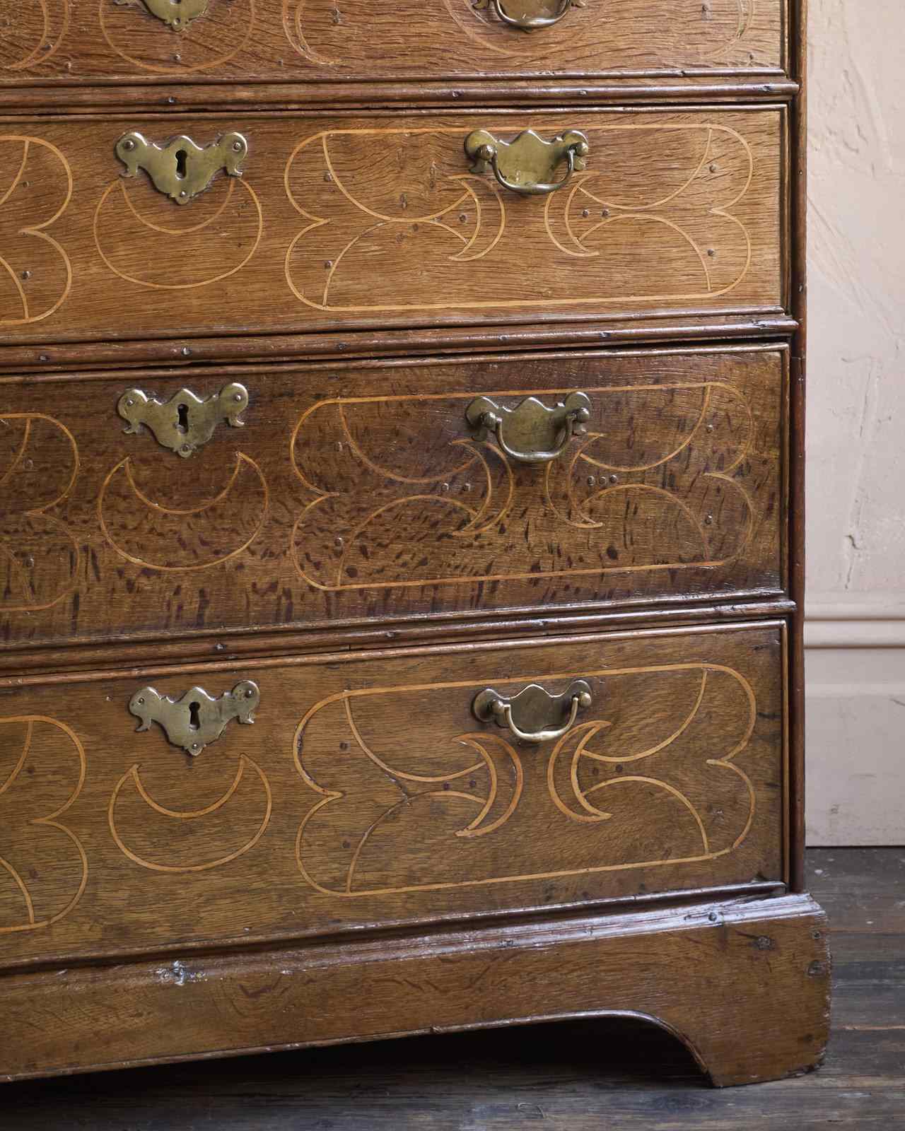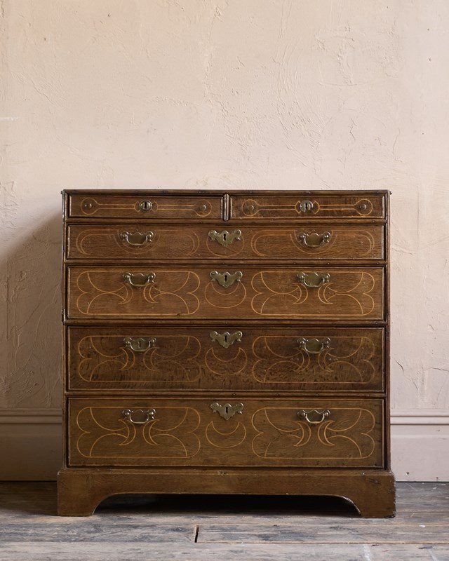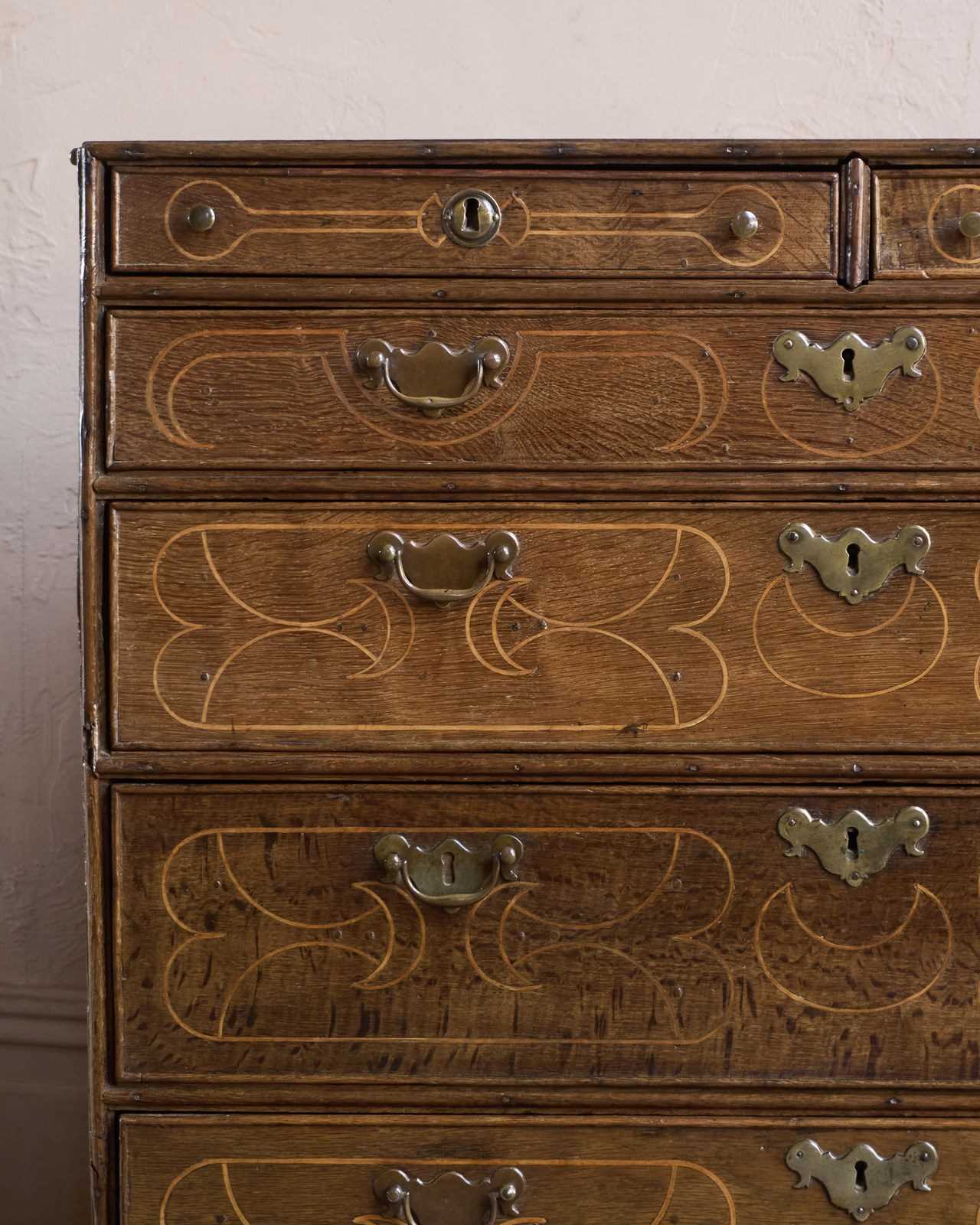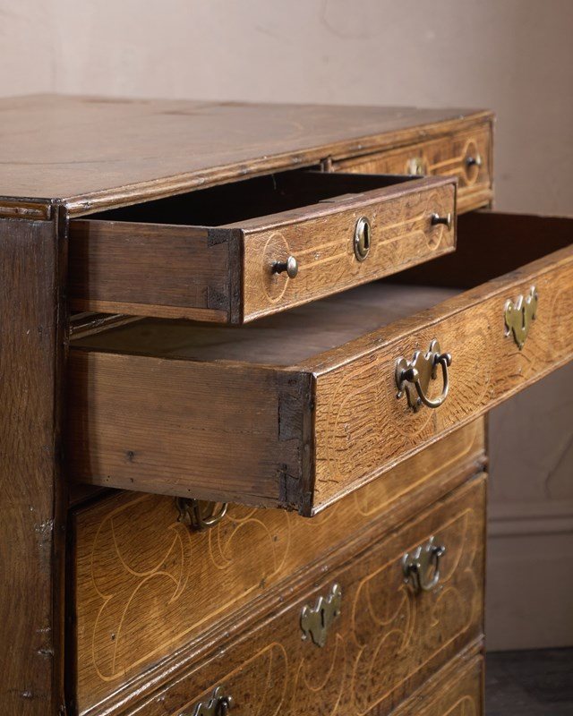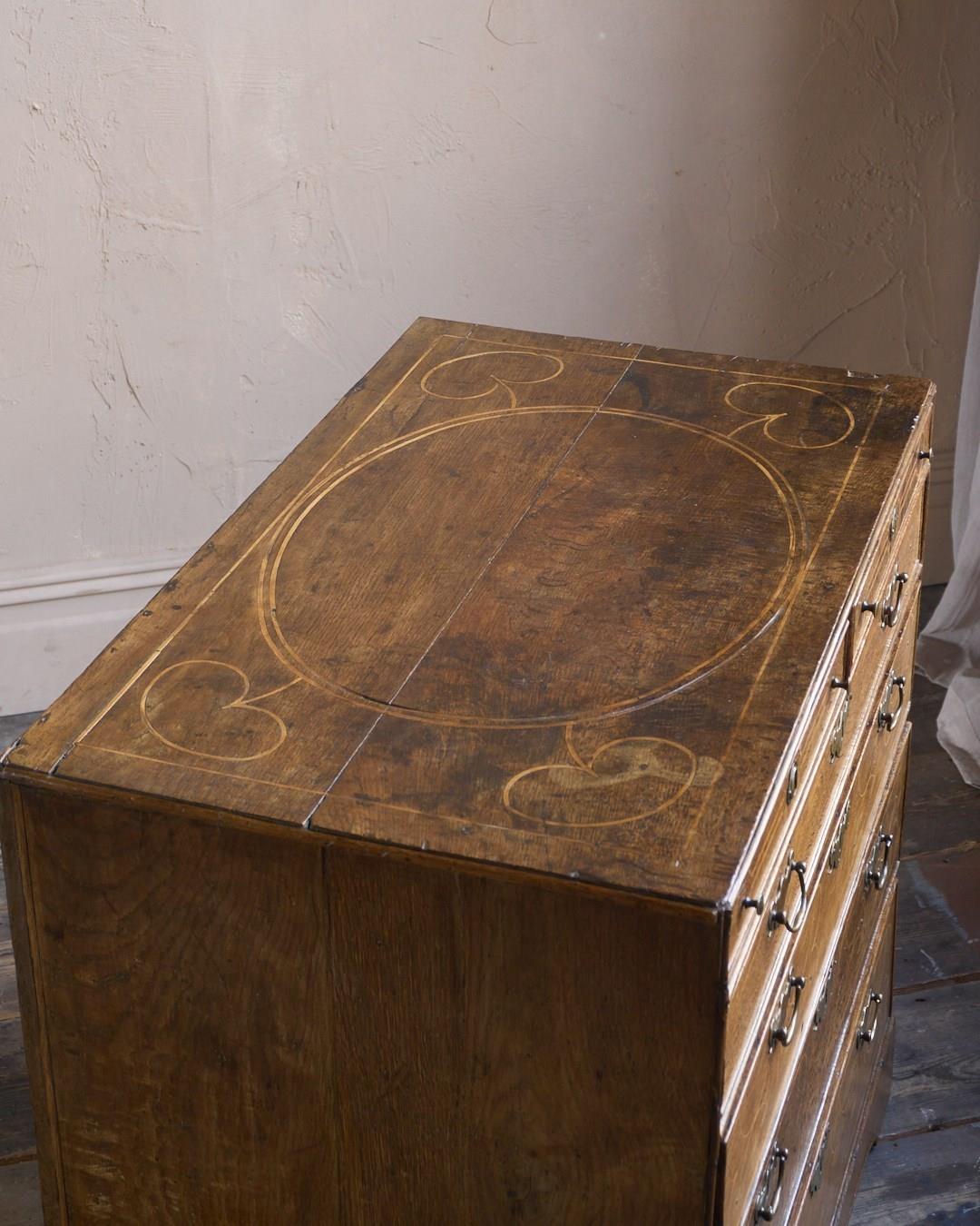 A William and Mary Oak Chest of Drawers with Inlay