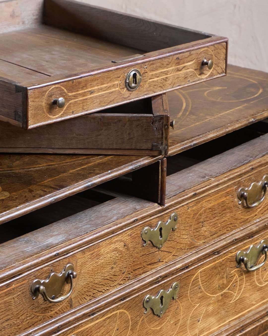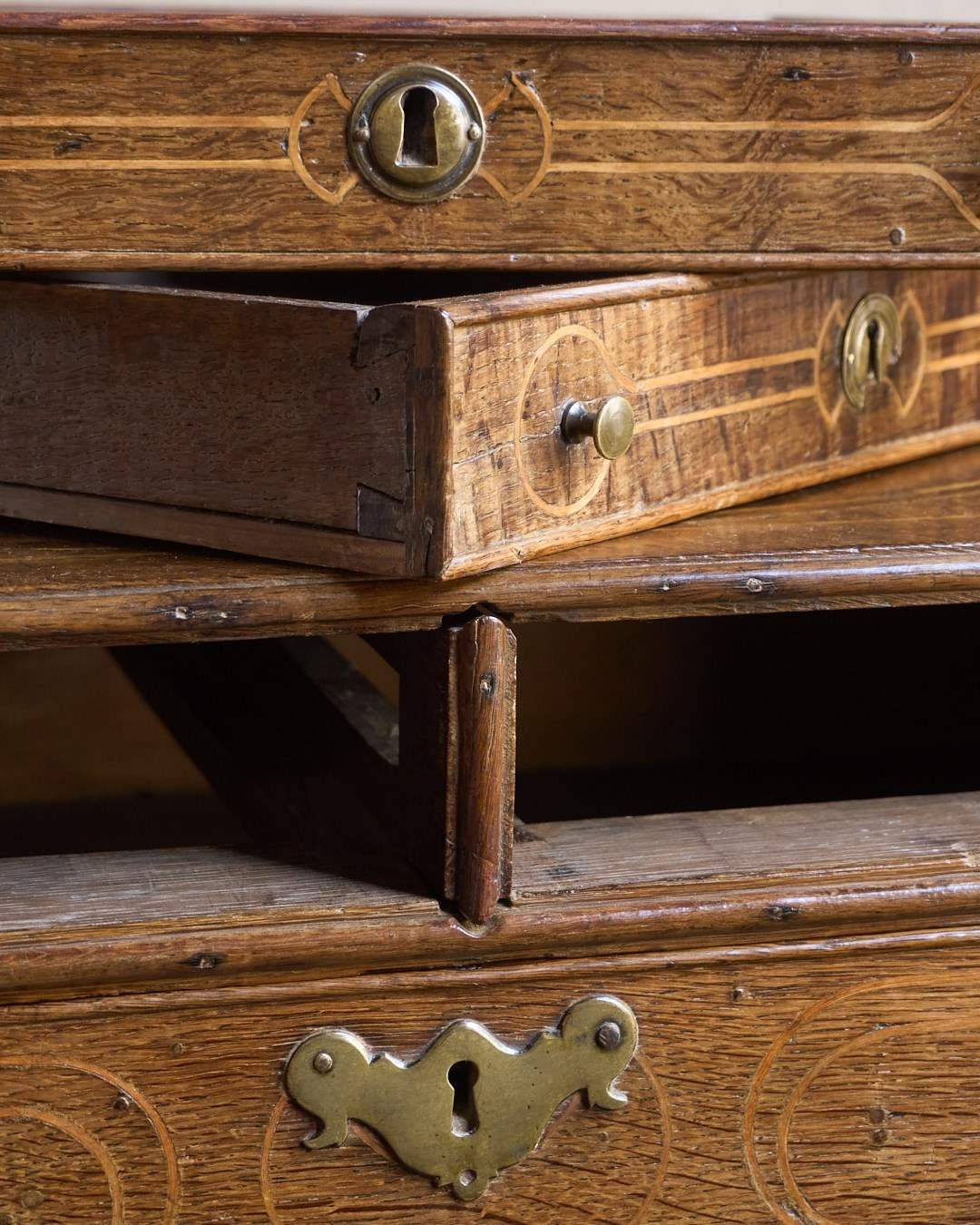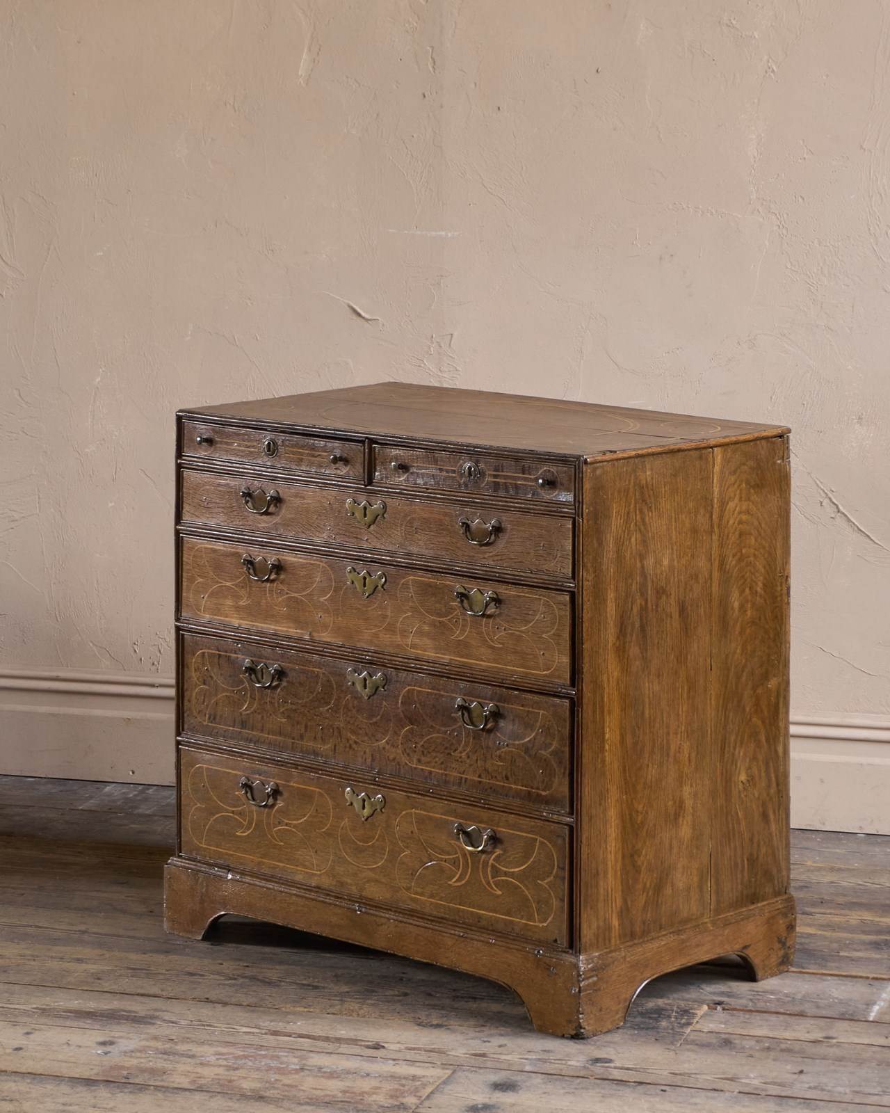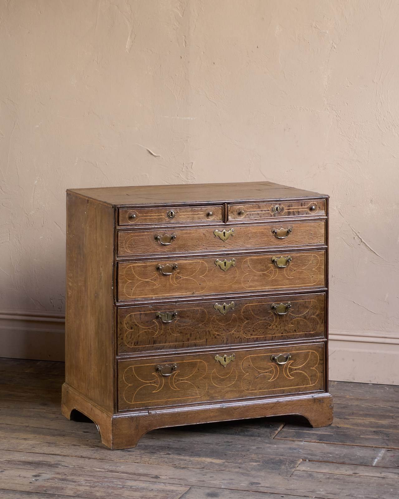 A William and Mary Oak Chest of Drawers with Inlay