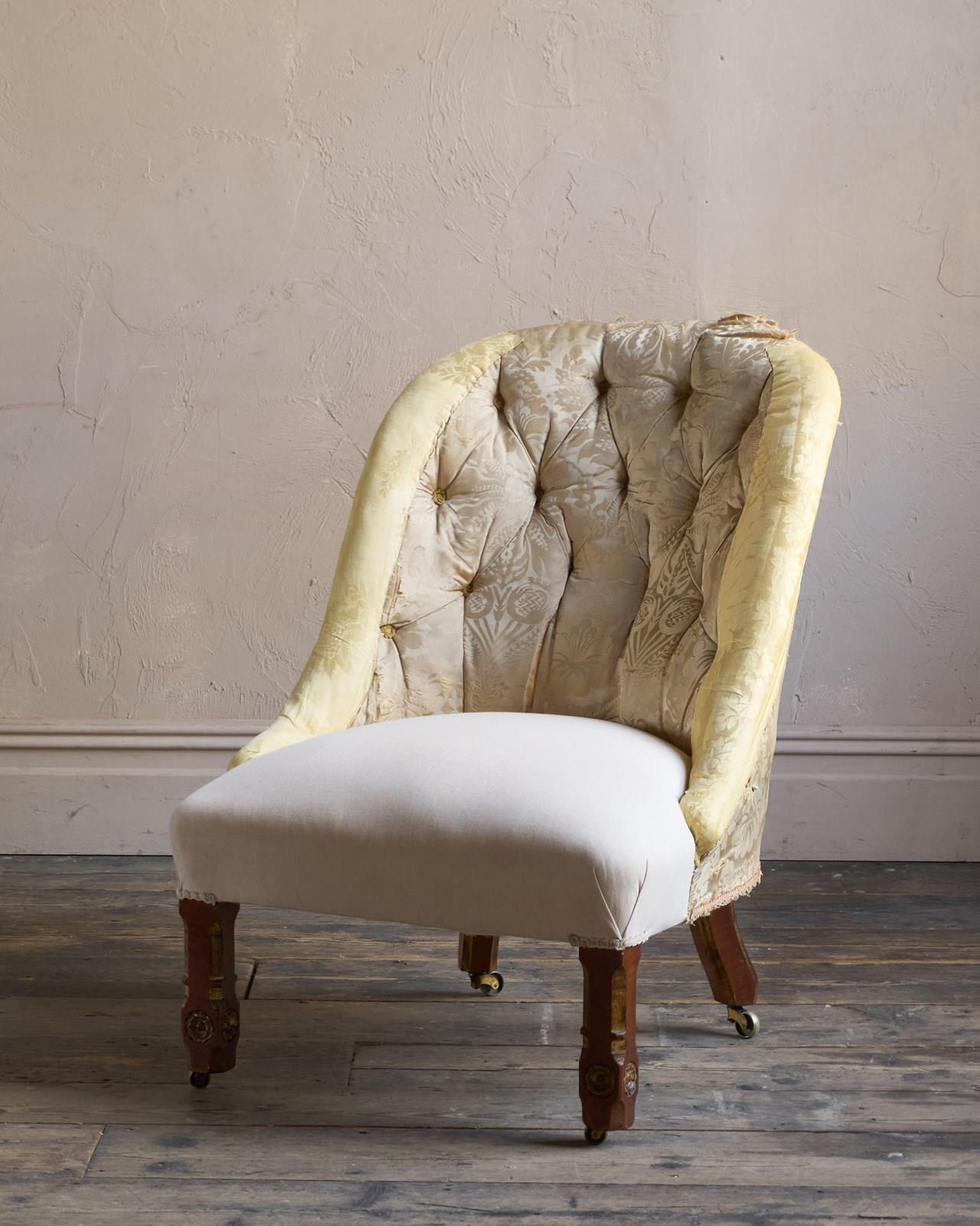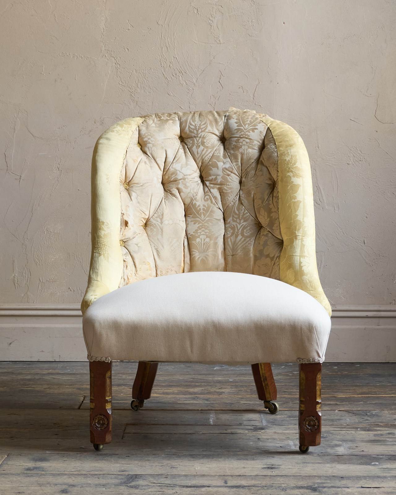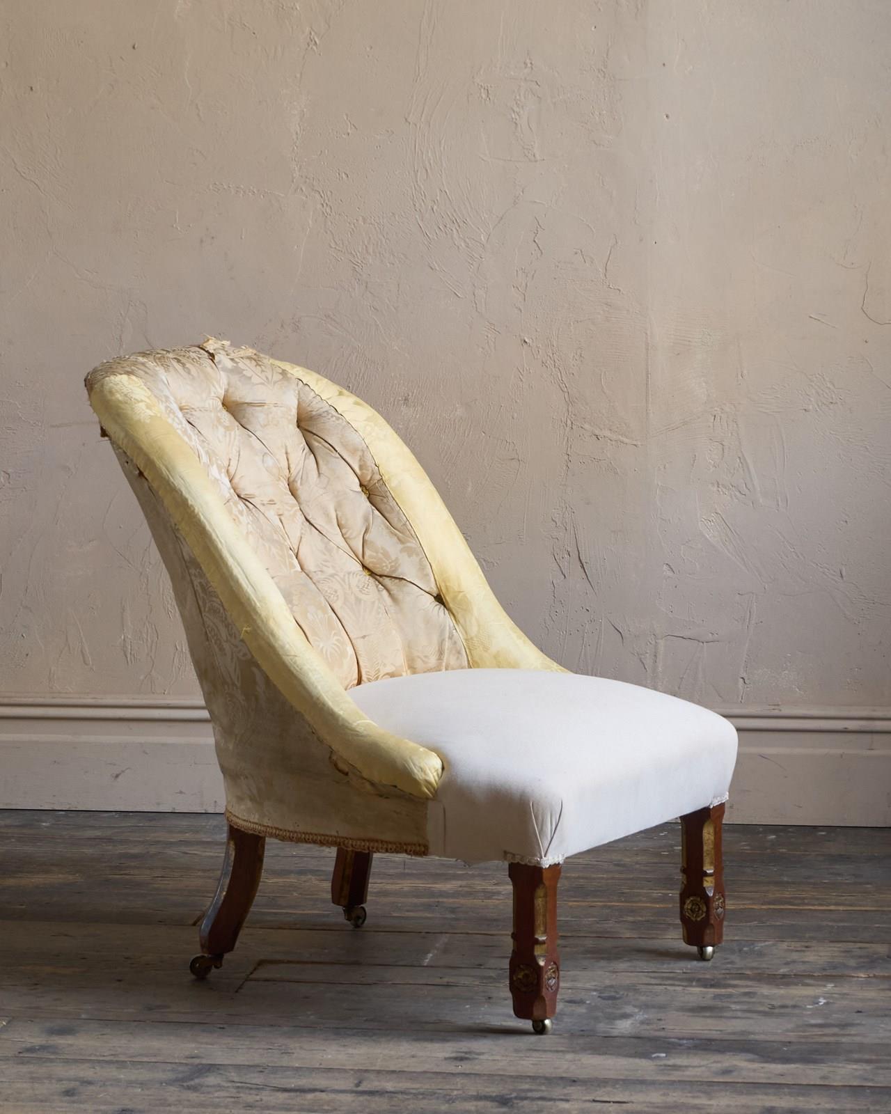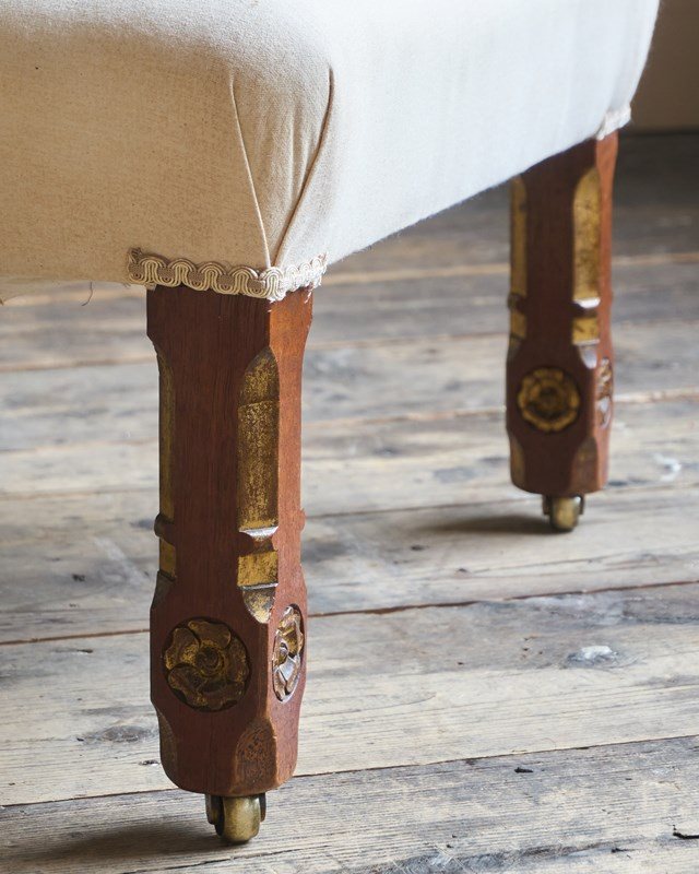 Having parcel gilt legs in the gothic revival manner and also with rosette carvings to the front legs which also have recessed castors all of which are cope castors.