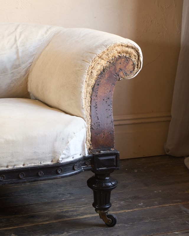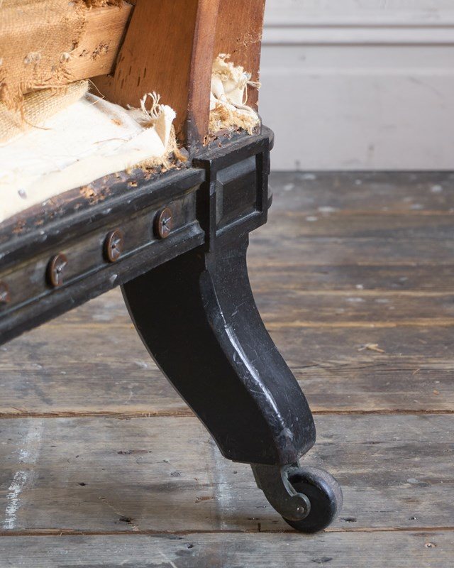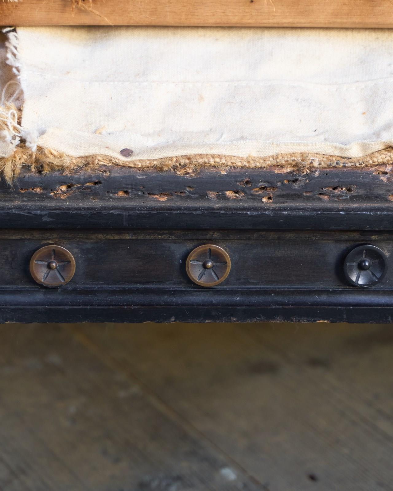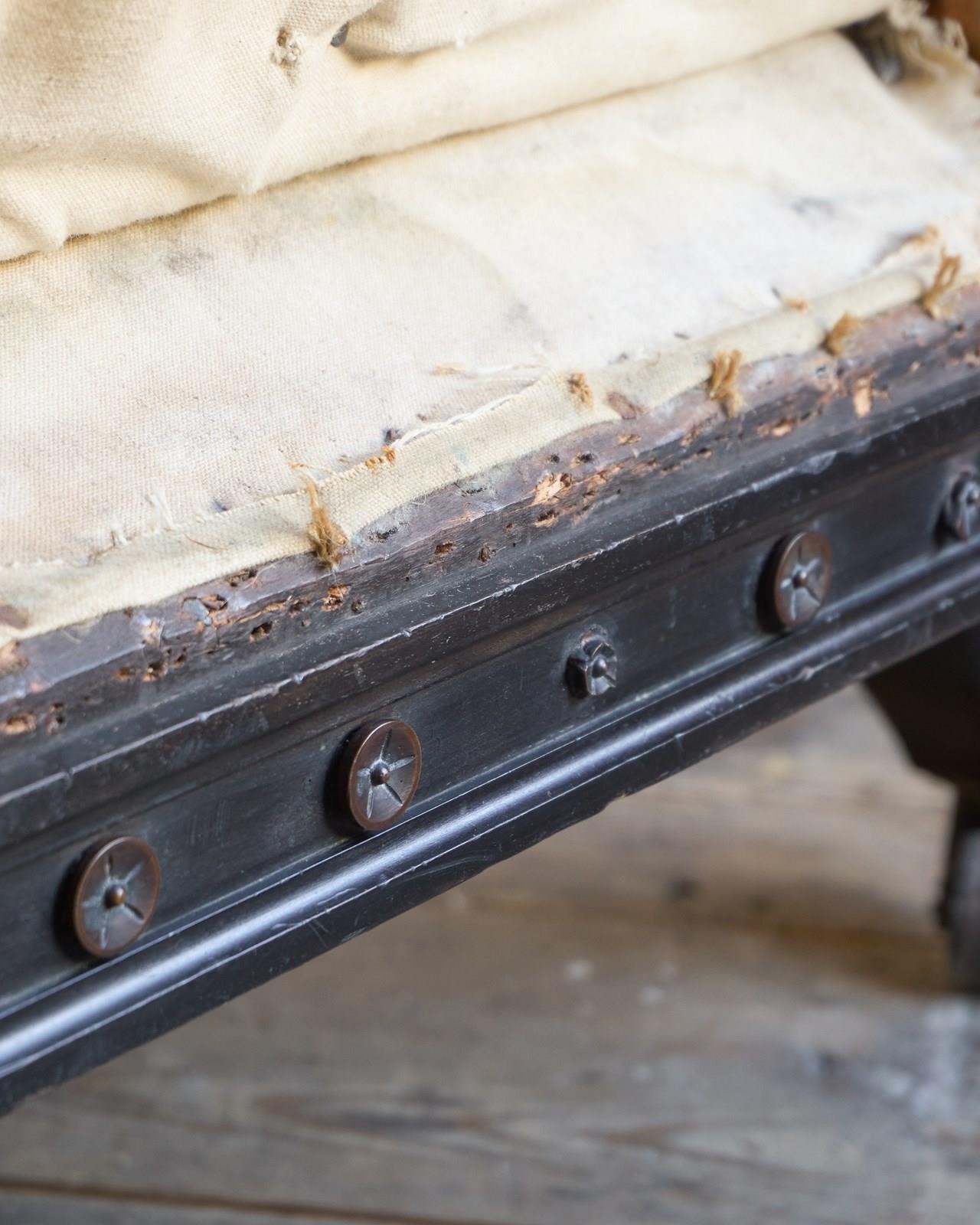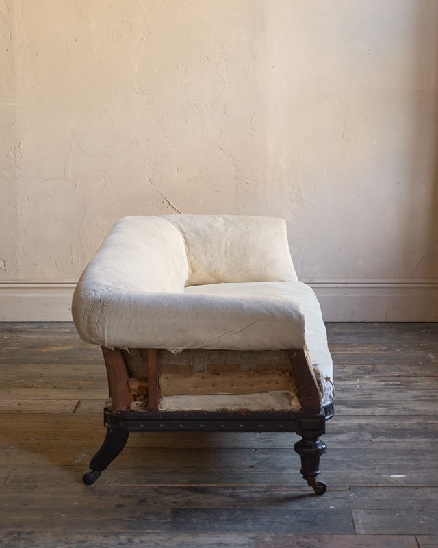 The upholstery you see is without a top cover and is all traditional with tied springs and horsehair fillings with visible hand stitching to the calico lining.