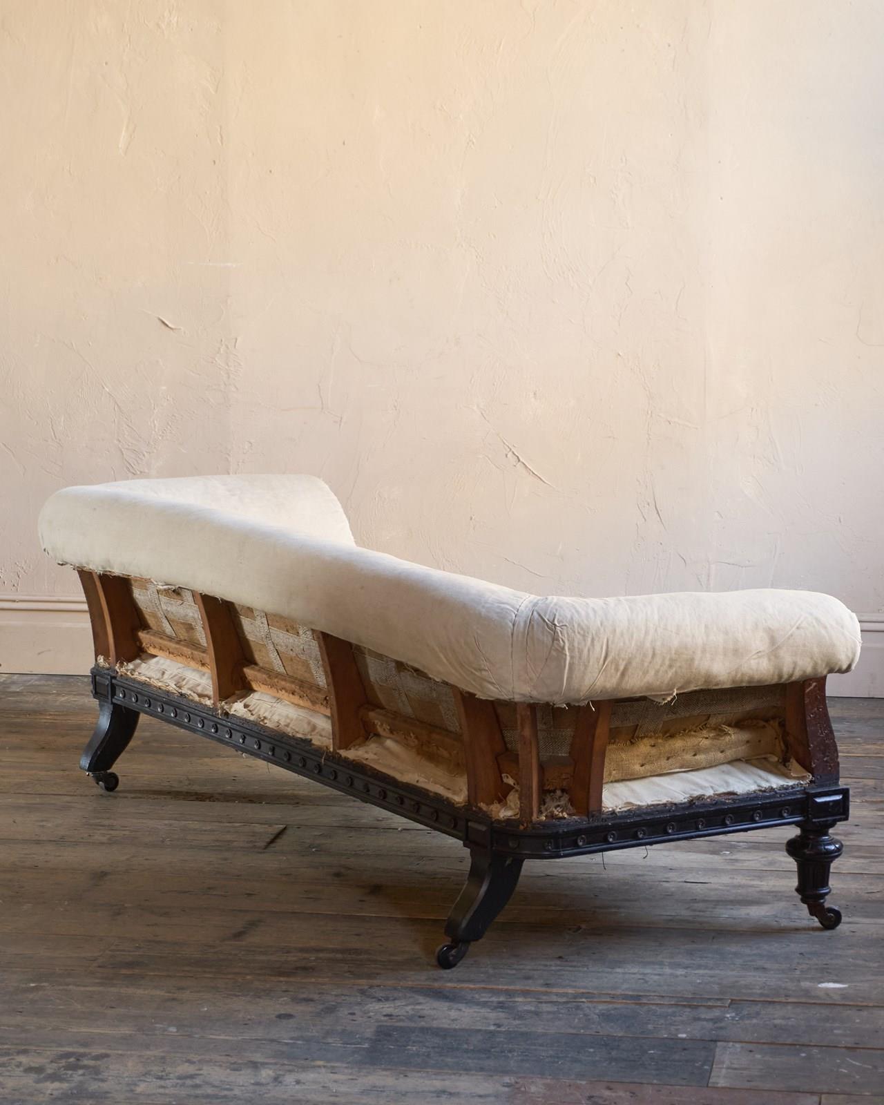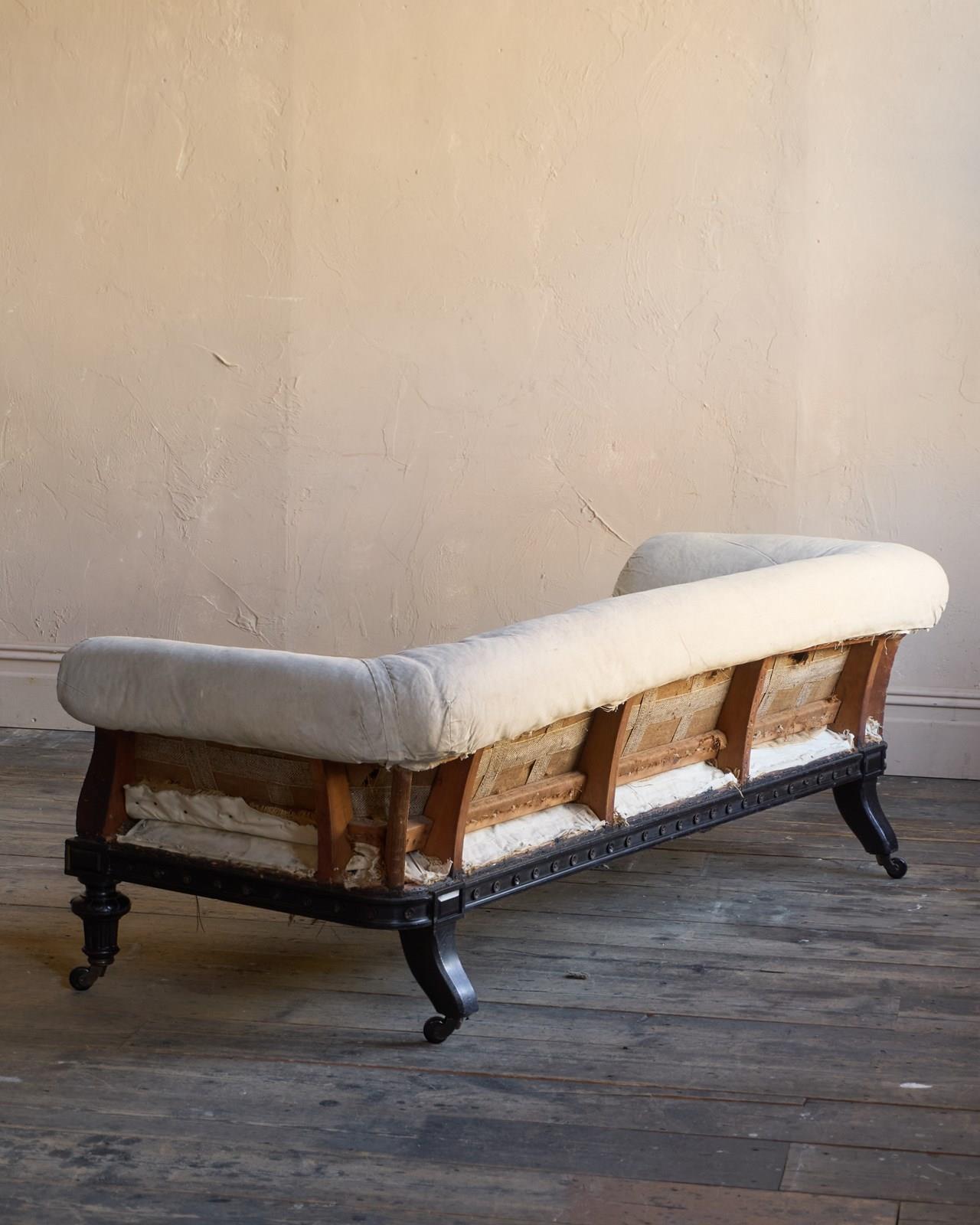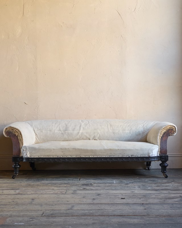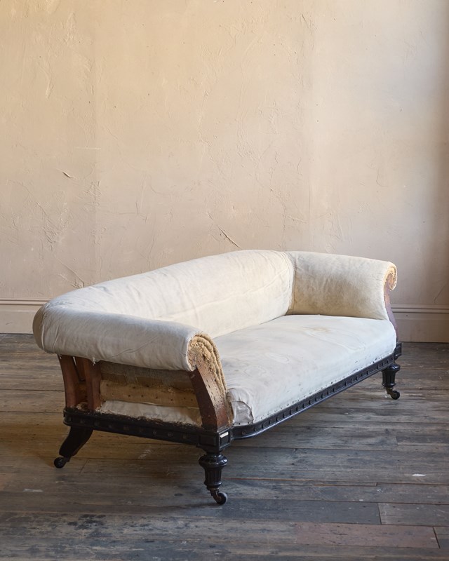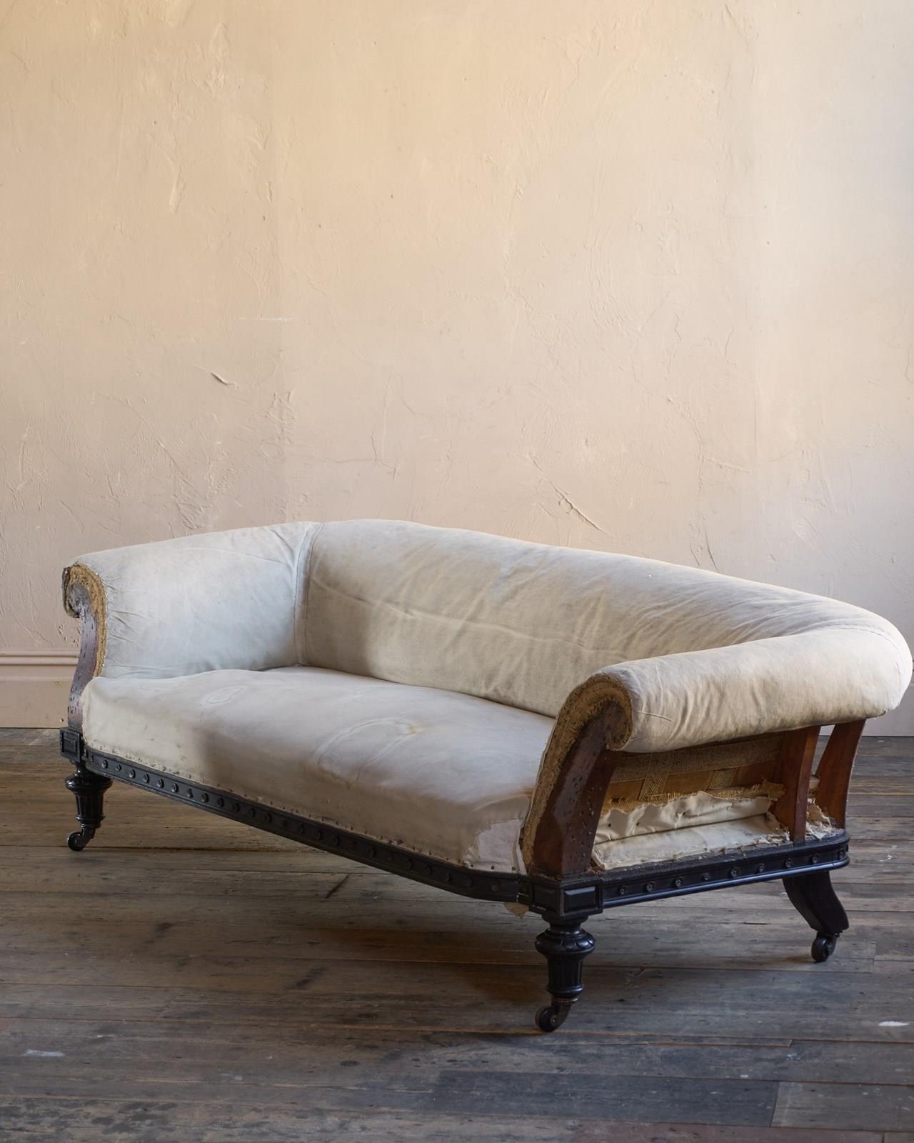 The upholstery you see is without a top cover and is all traditional with tied springs and horsehair fillings with visible hand stitching to the calico lining.
