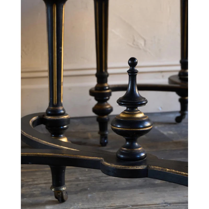 One table is number stamped to the underneath and the other bearing the label of a Taunton Based retailer W&A Chapman ltd, they're similar in design but not identical.