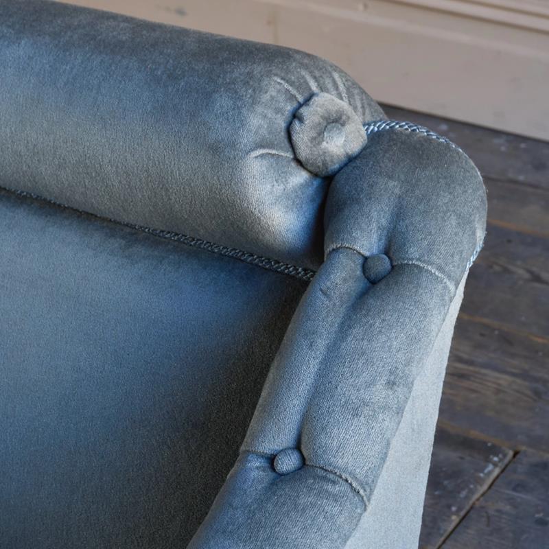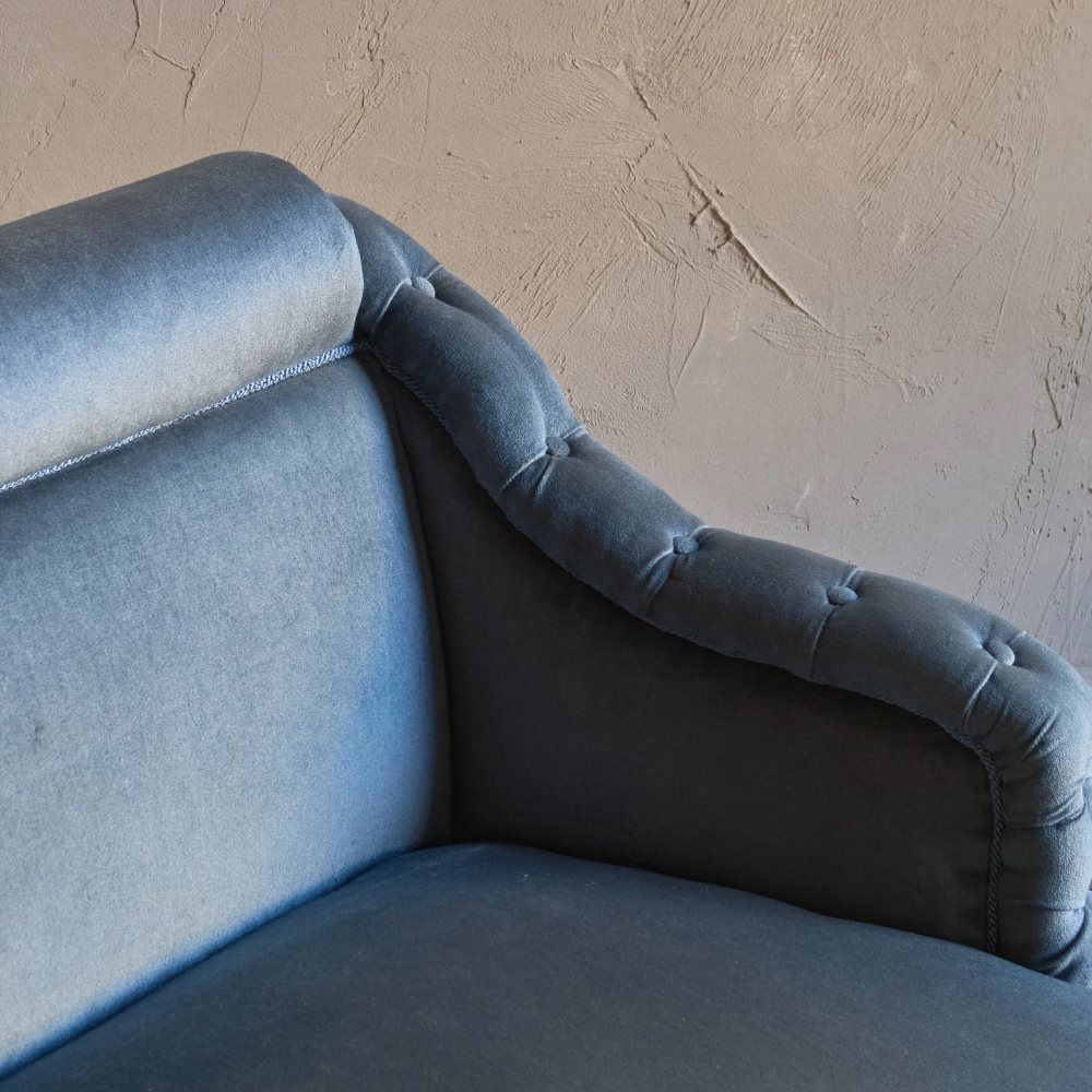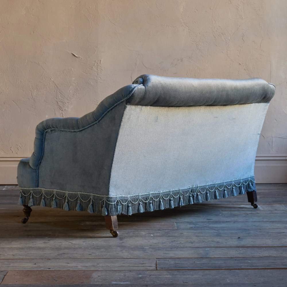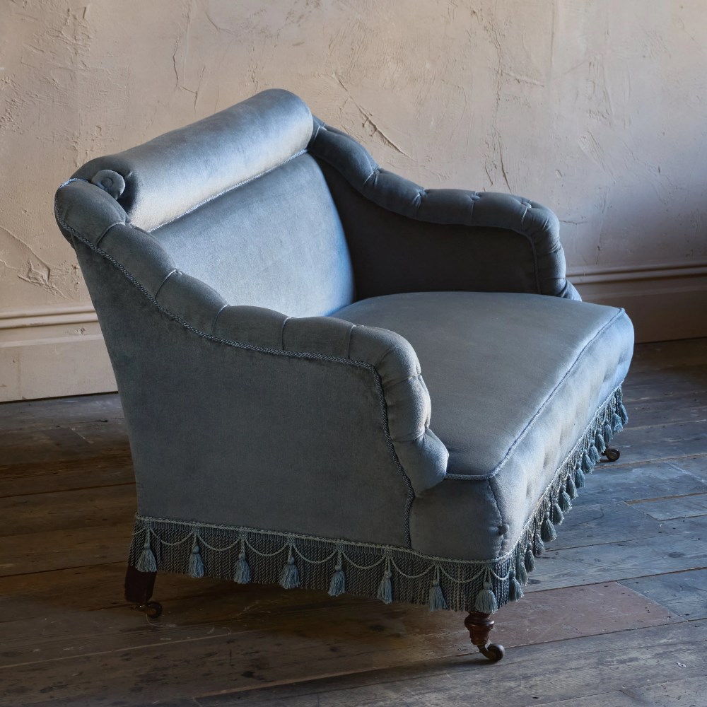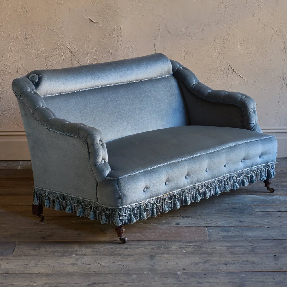 Antique Bedroom Sofa - Blue Velvet With Tassel Trim