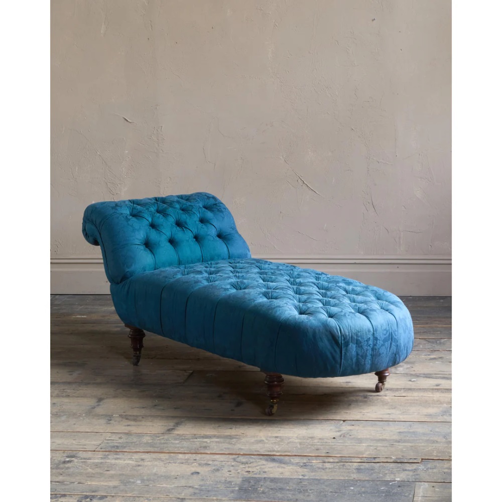 Antique Chaise Longue - Blue Damask