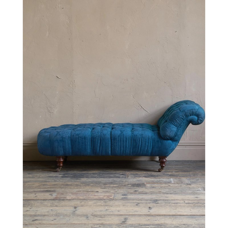 Antique Chaise Longue - blue damask.