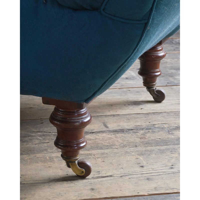 The blue damask fabric is in reasonable condition and the seat is in great order.