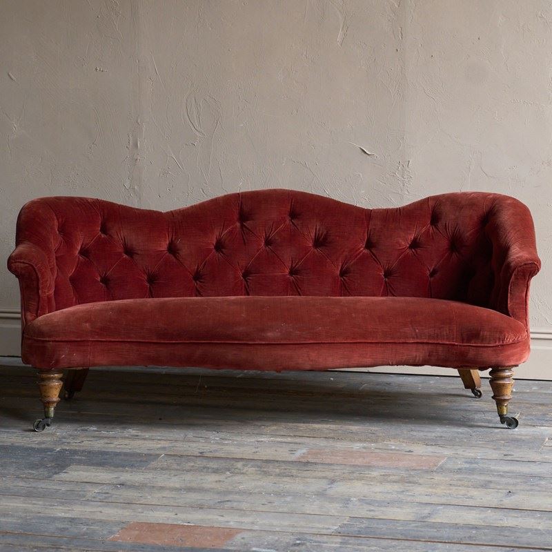 Antique Country House Sofa By Hindley And Sons - Claret Velvet