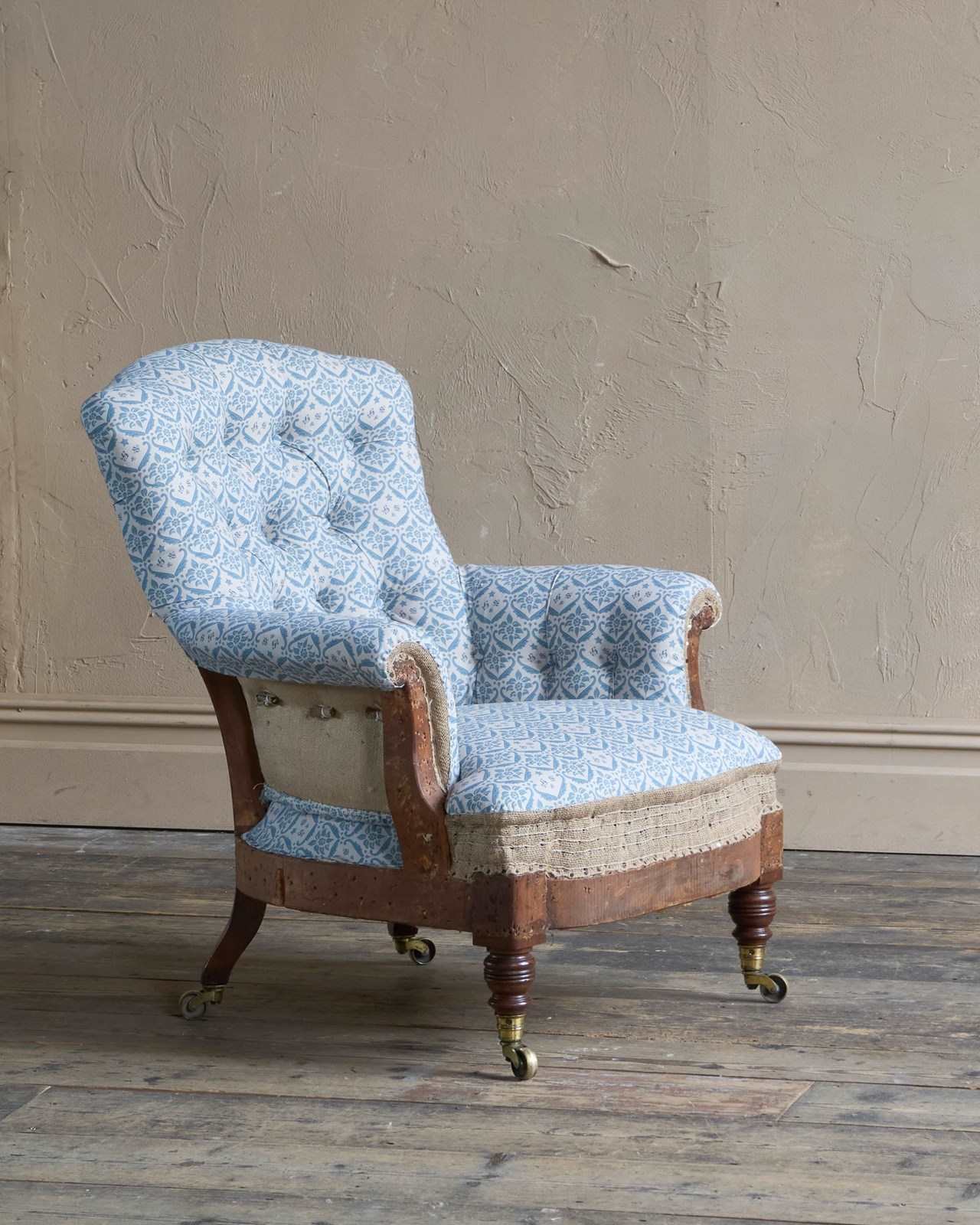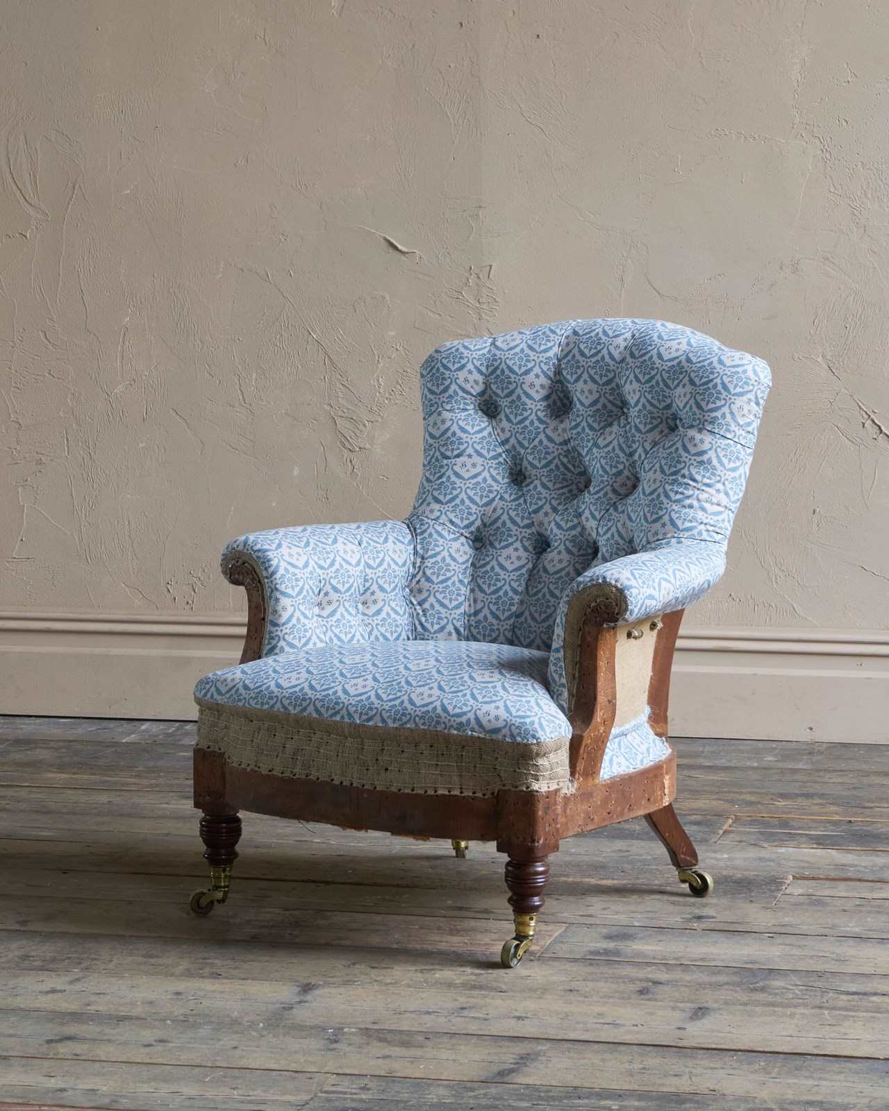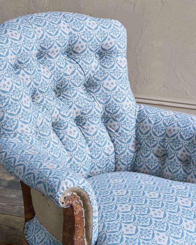 Now fully restored from the frame up, using all traditional methods and natural fillings, lined with H&S ticking Fabric.