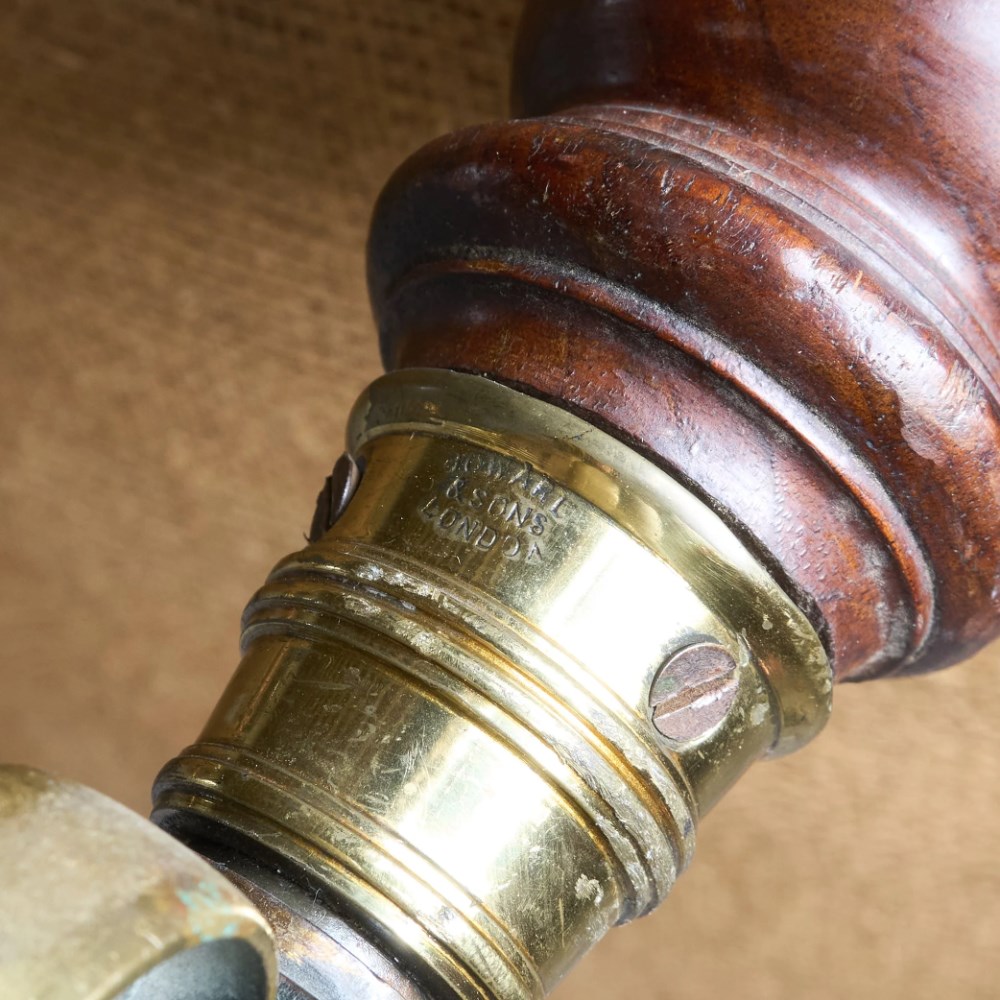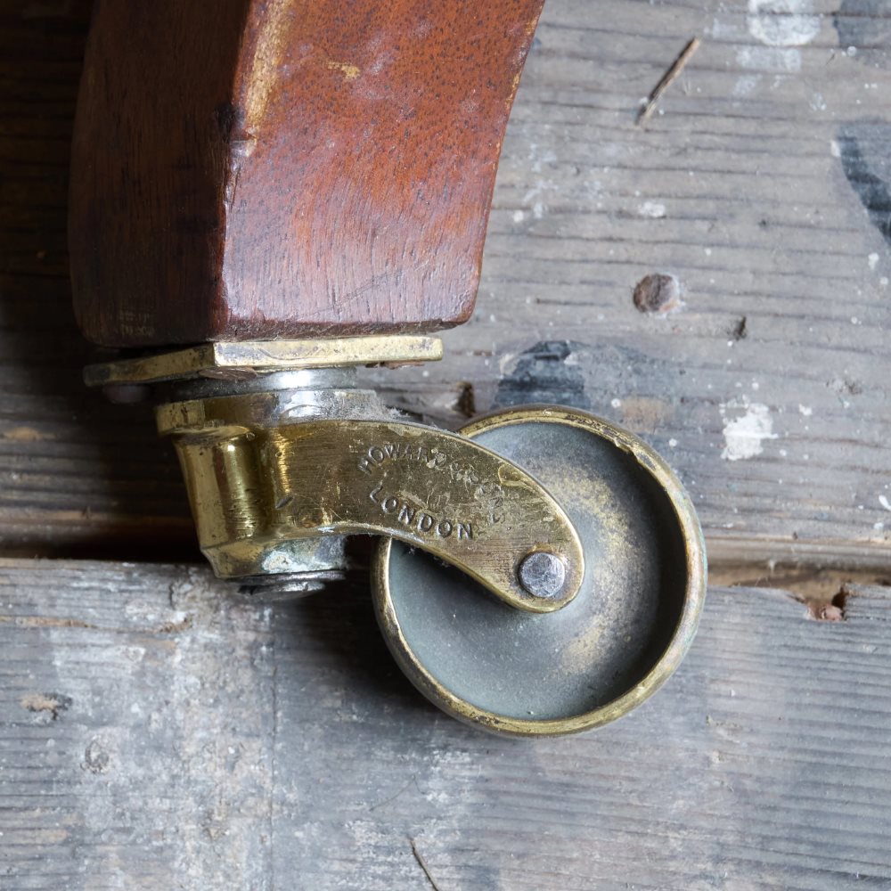 Turned Mahogany front legs with gilt brass ring castors which are stamped Howard and sons.