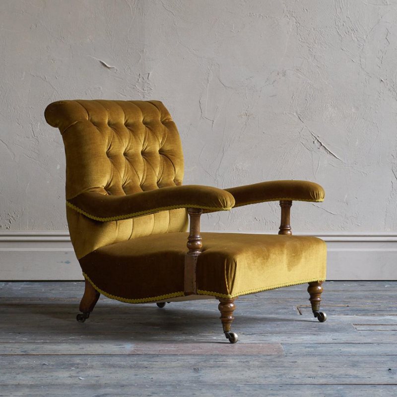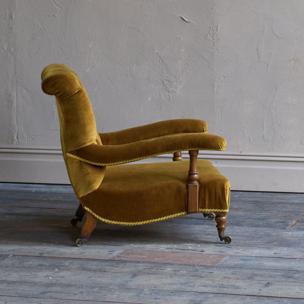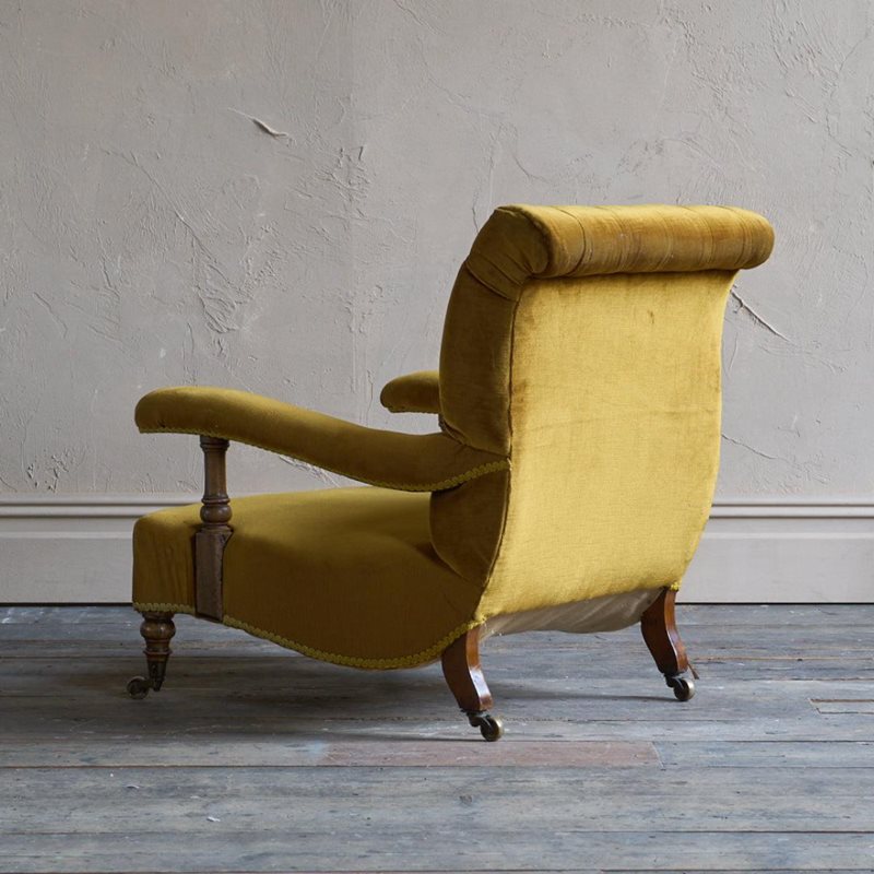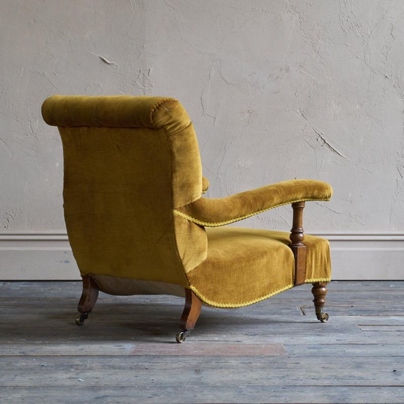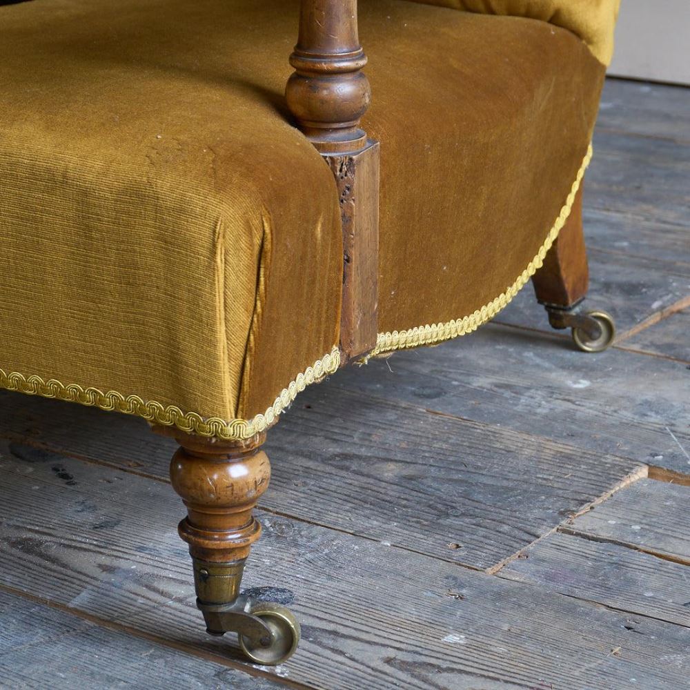Antique Howard And Sons Open Armchair, Gold Velvet