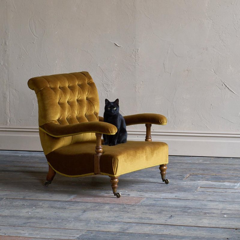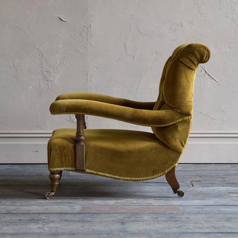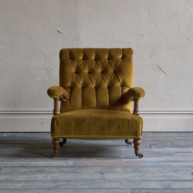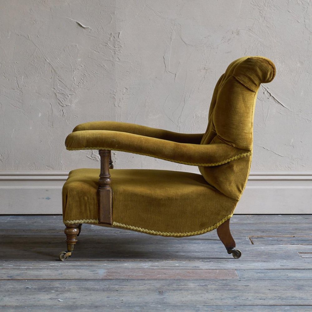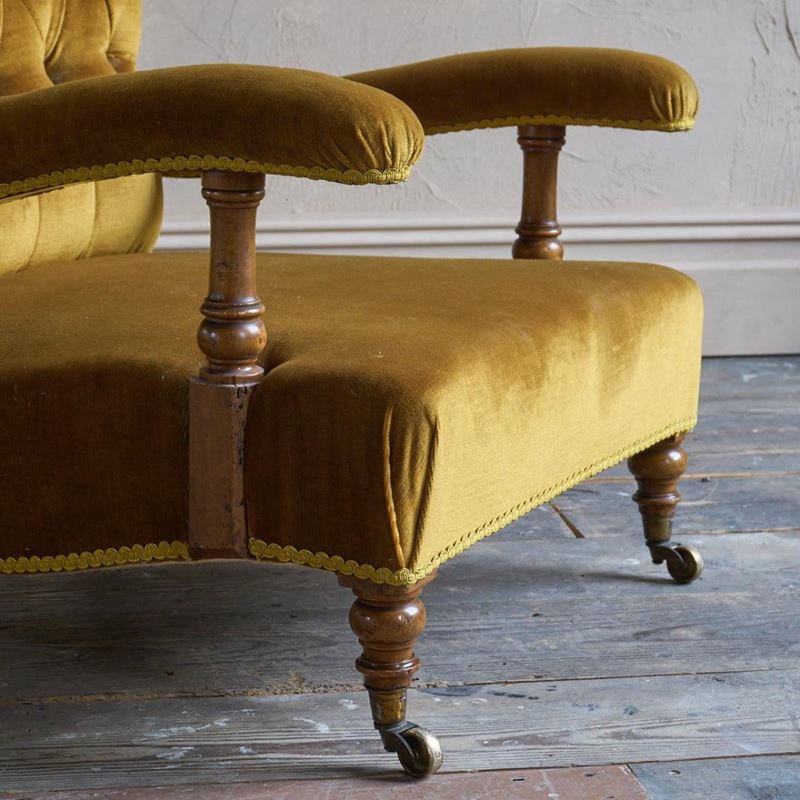 Antique Howard And Sons Open Armchair, Gold Velvet