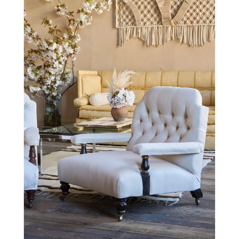 Currently lined with unbleached cotton, deep buttoned back.