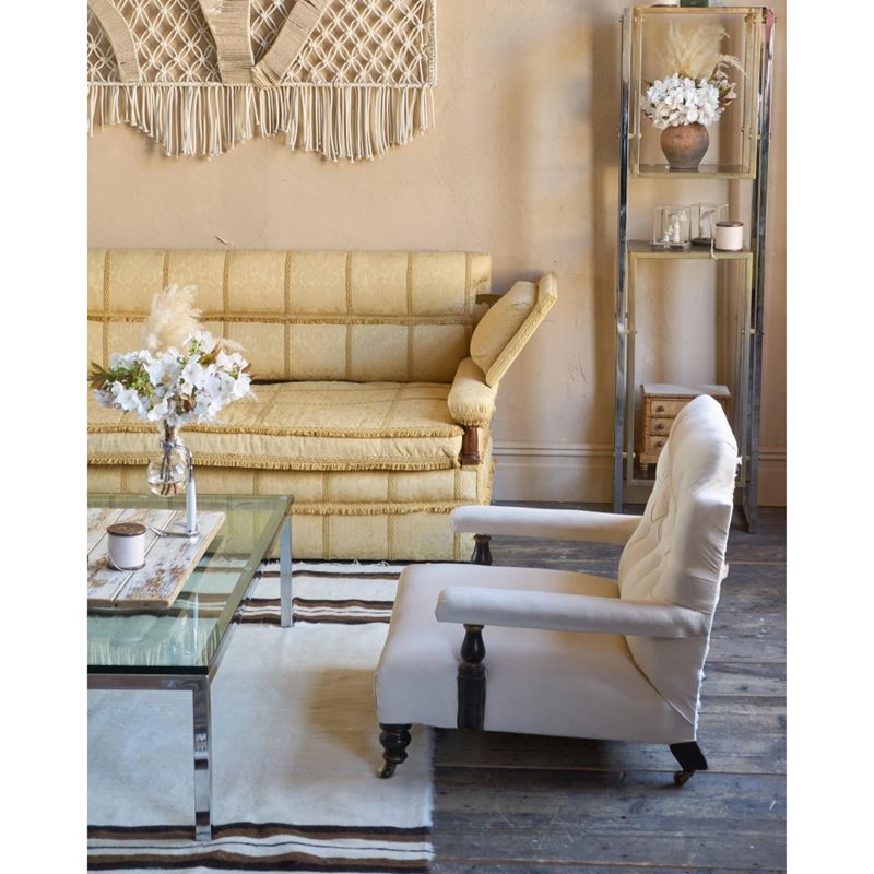 Restored - the frame is sturdy without issue and the traditional upholstery has been restored wherever necessary.