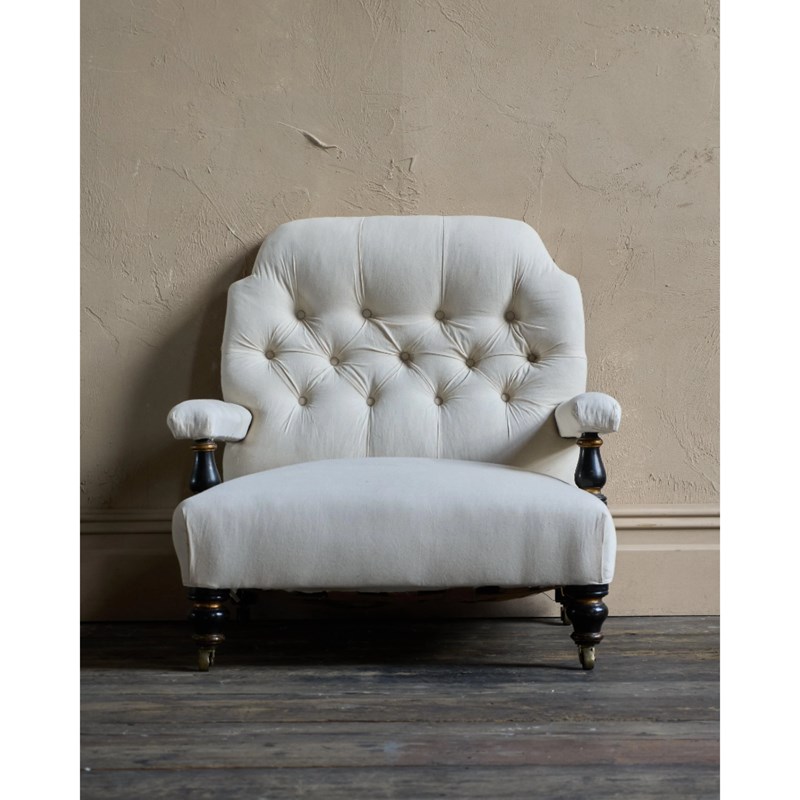 Antique Open Armchair - Ebonised Legs - Restored