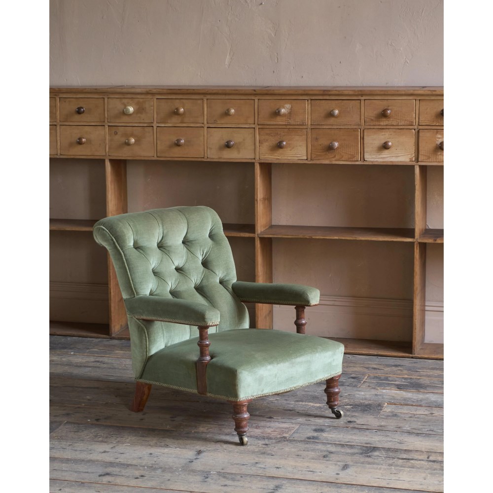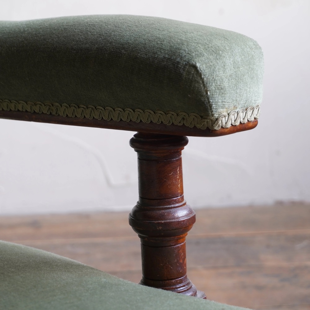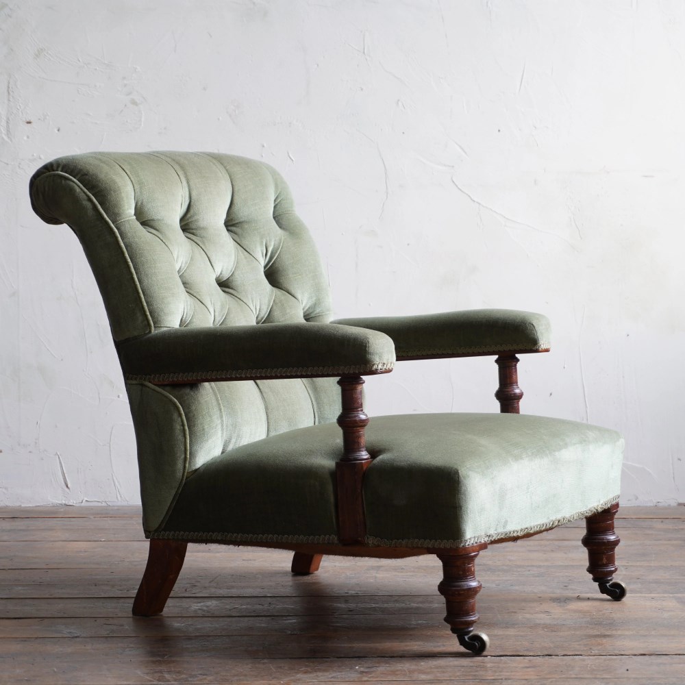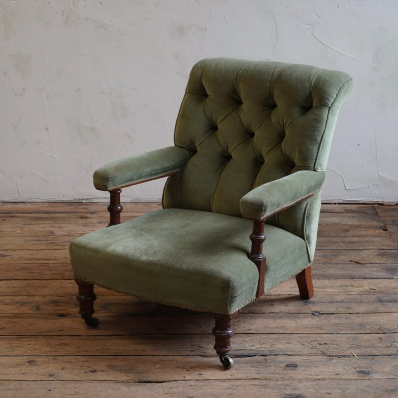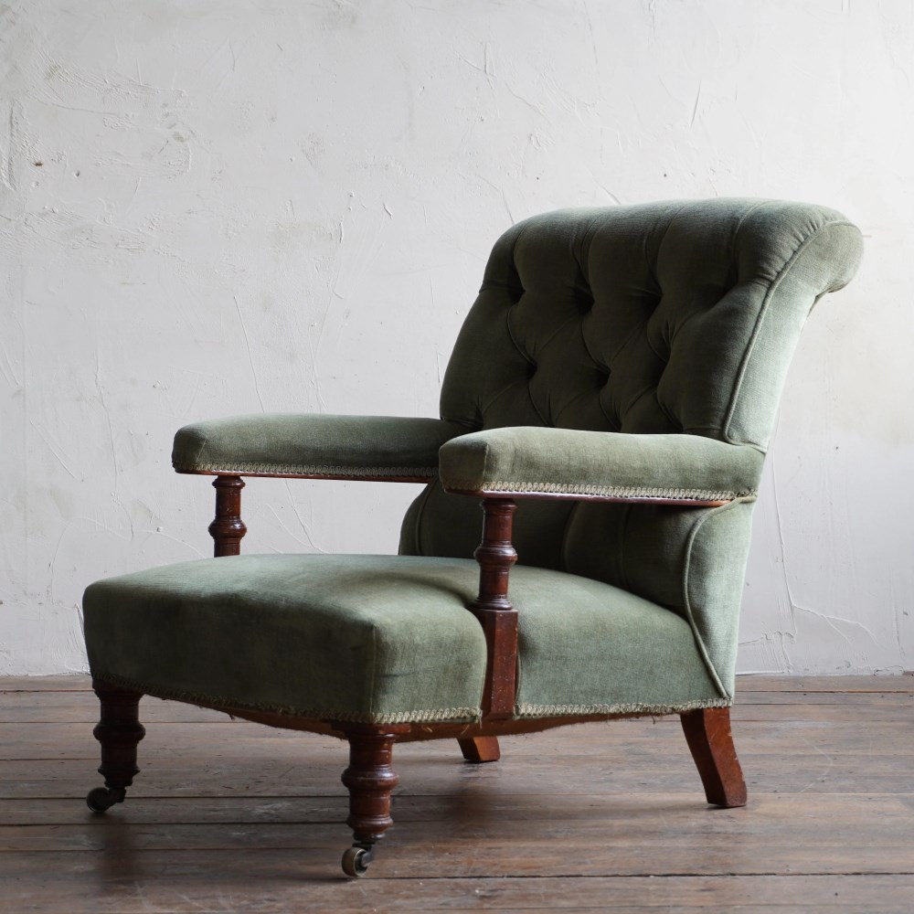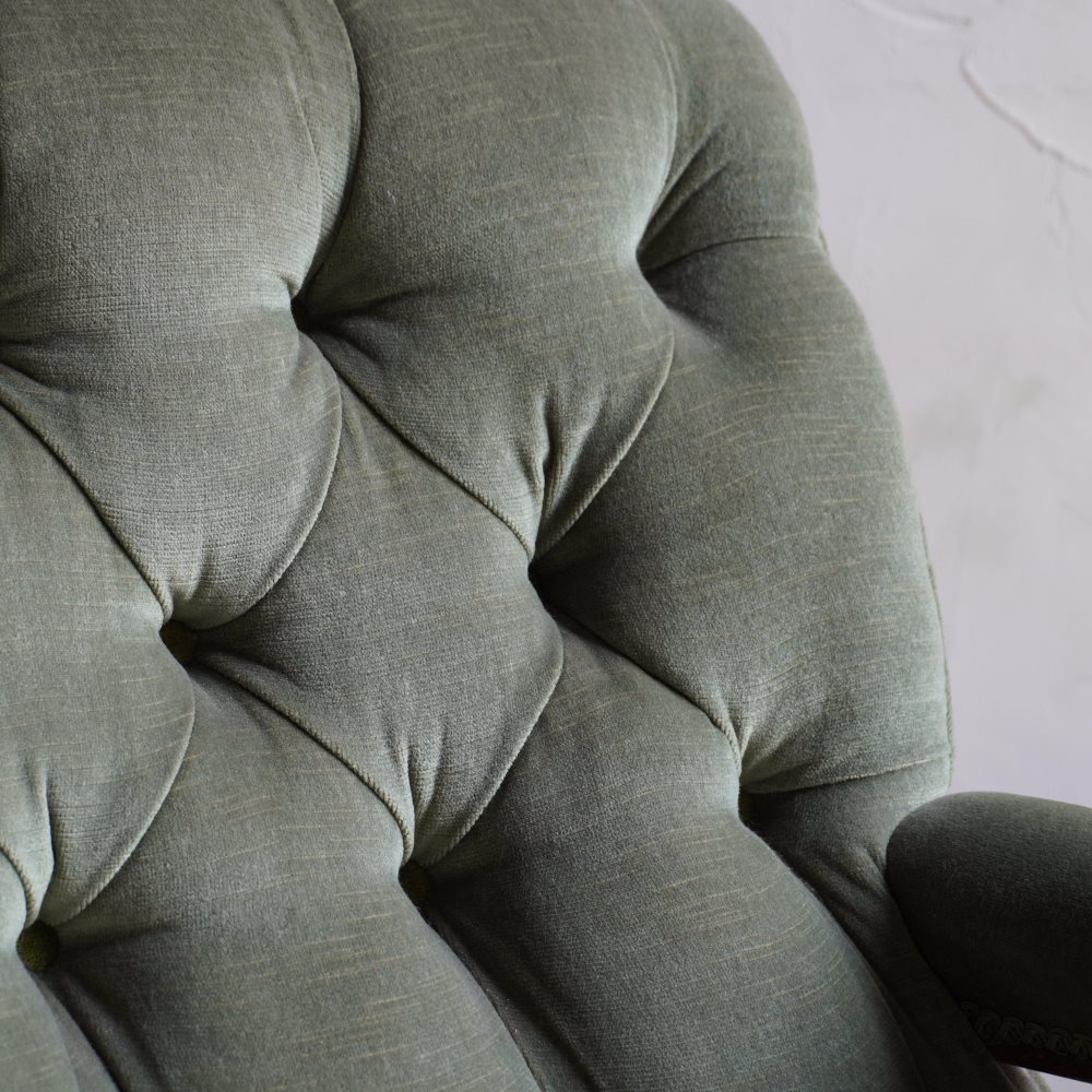 Antique Open Armchair - green velvet.