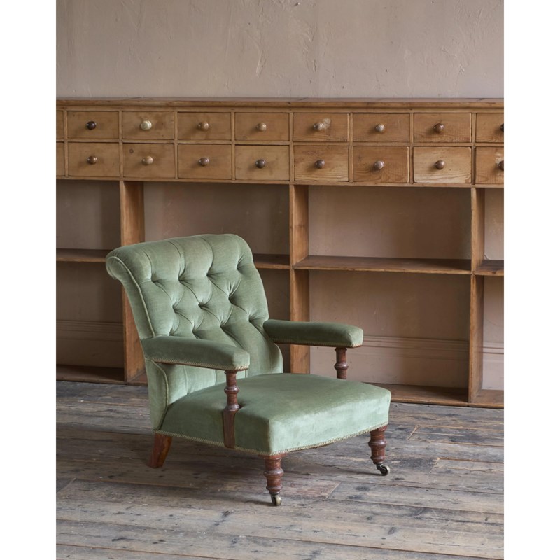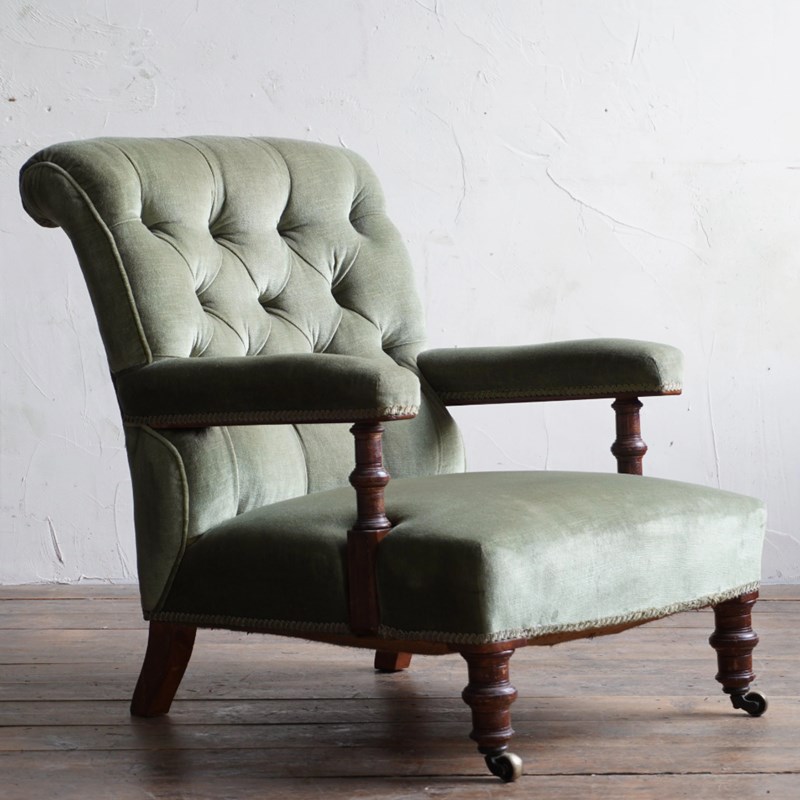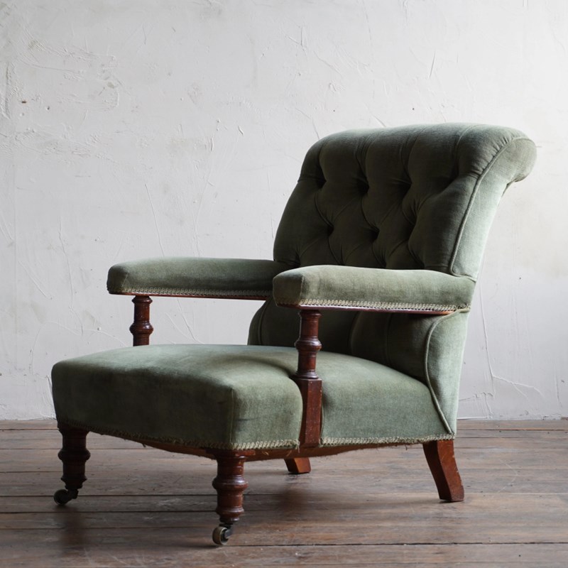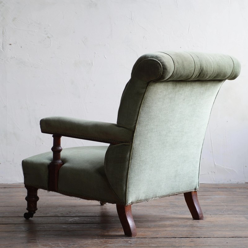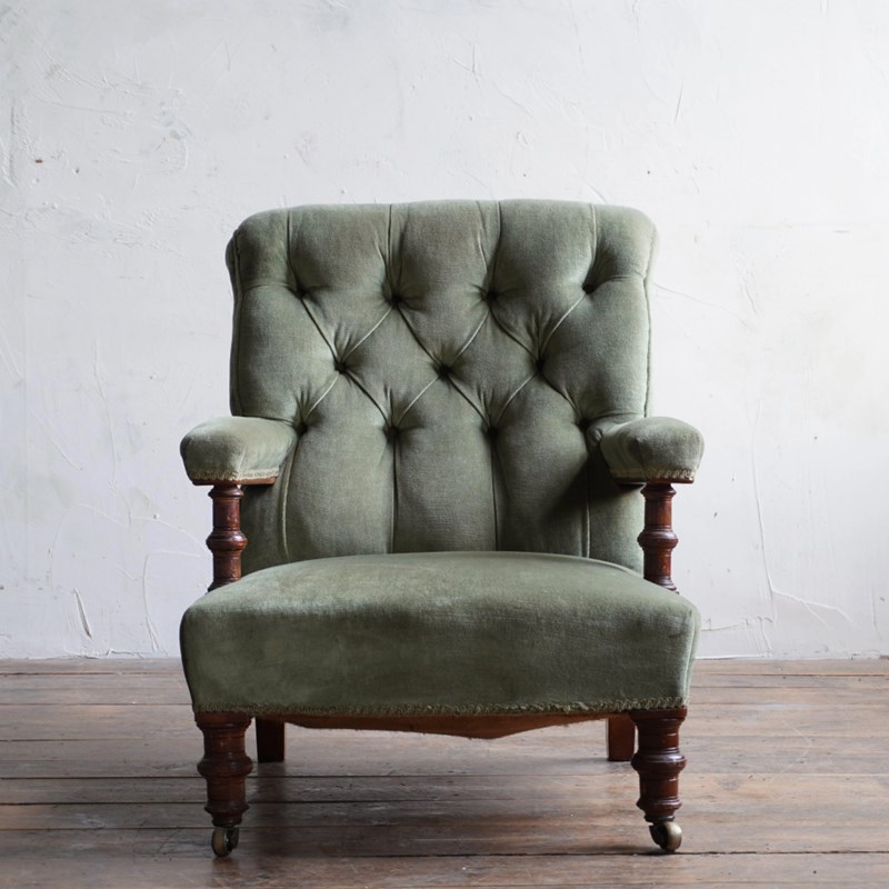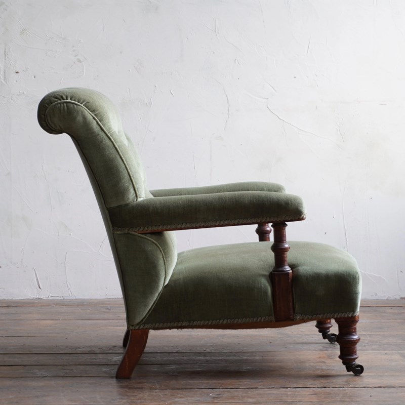 Antique Open Armchair - Green Velvet