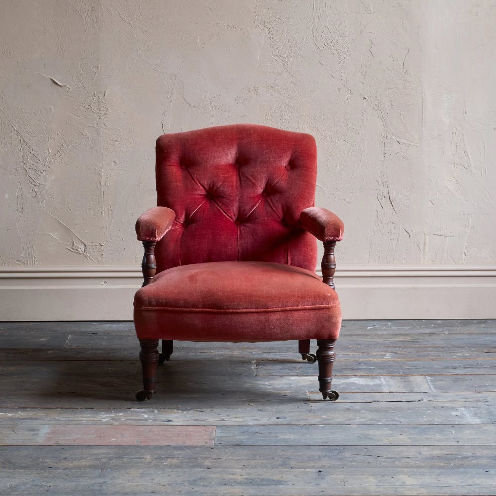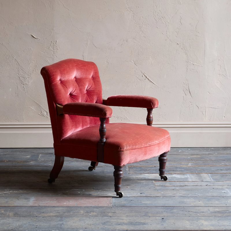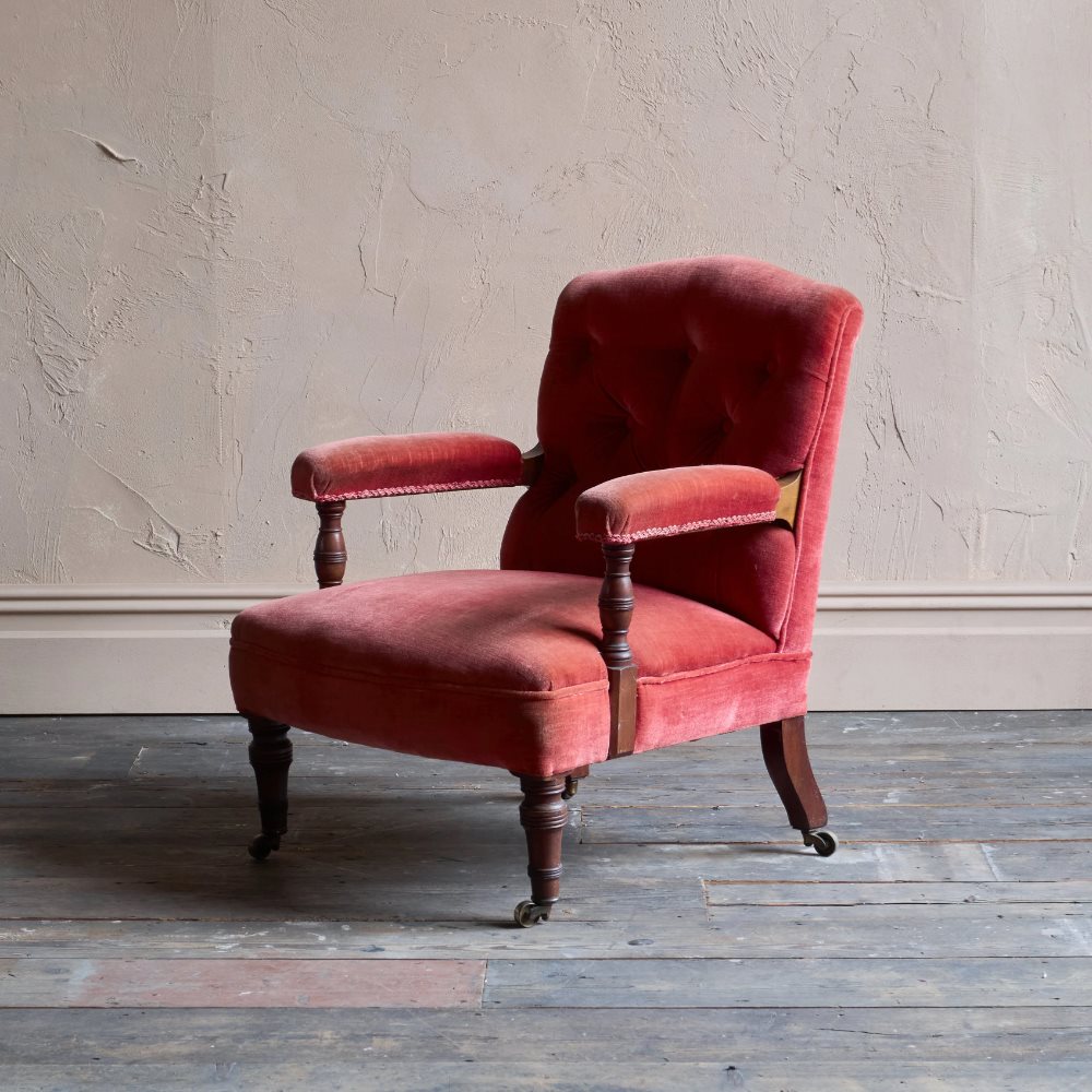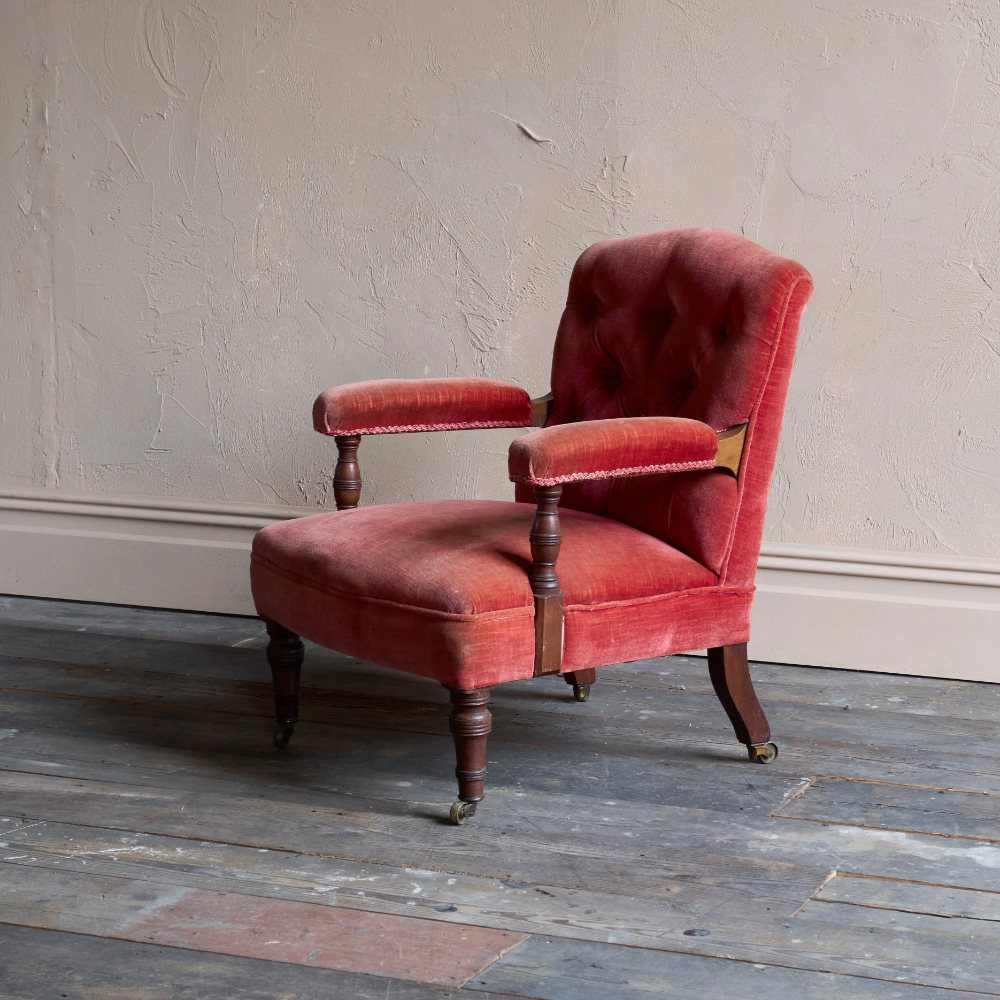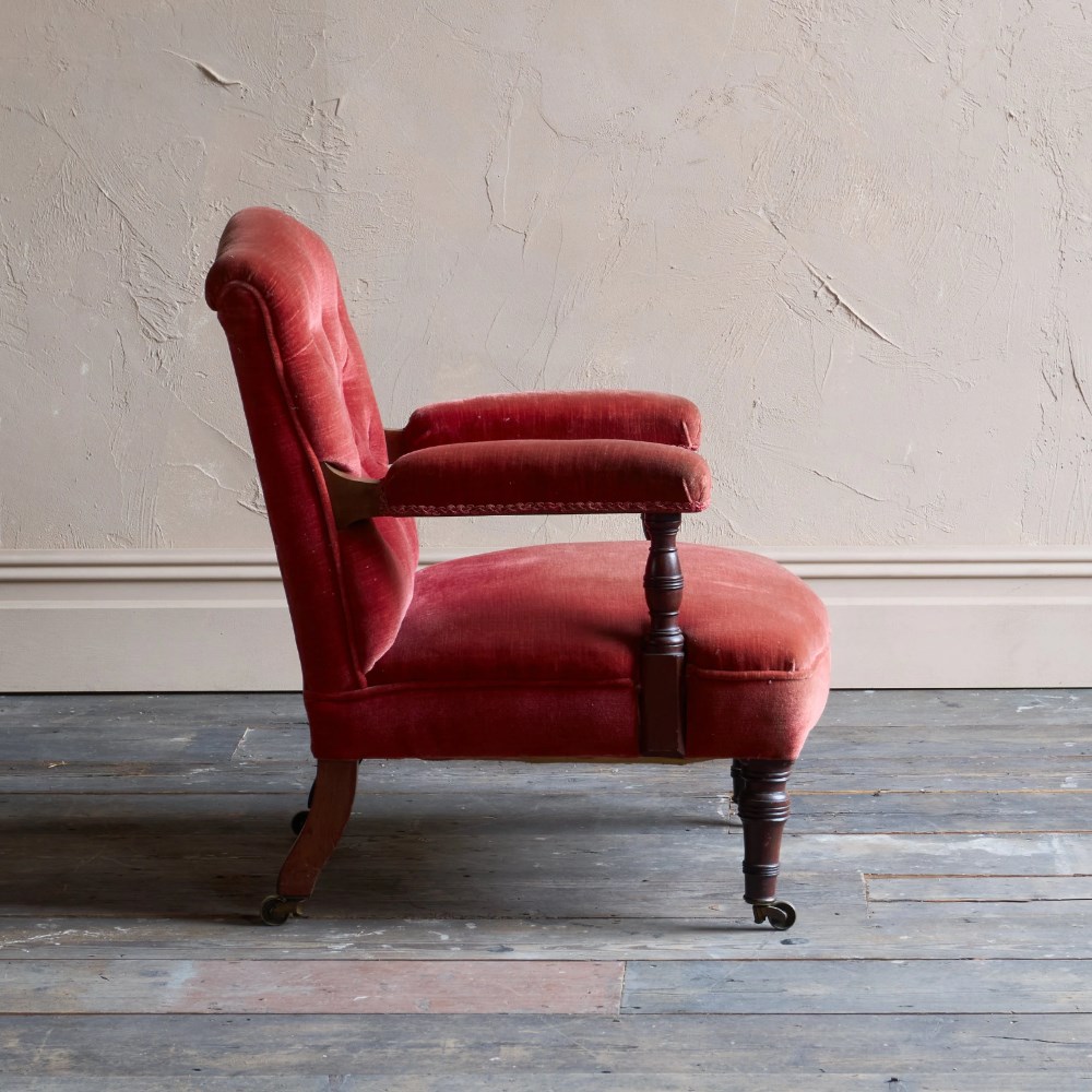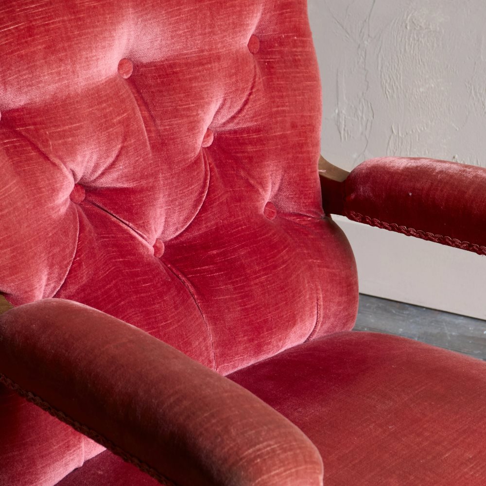 Antique Open Armchair - Red/Pink Velvet