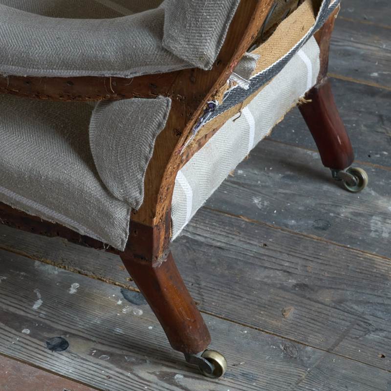 Antique Open Armchair With Prep Ticking