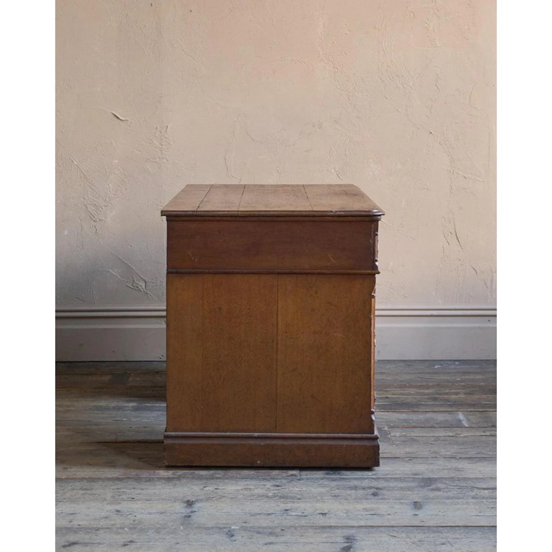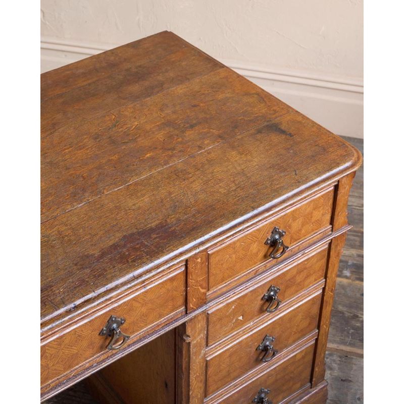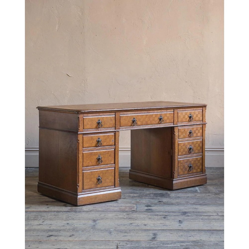 Antique Parquetry Oak Pedestal Desk