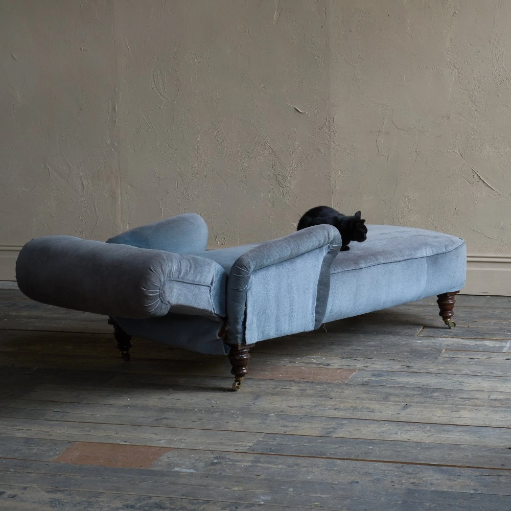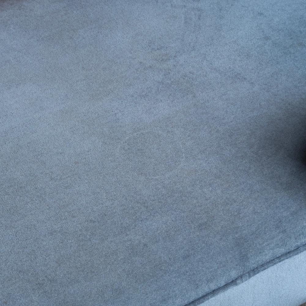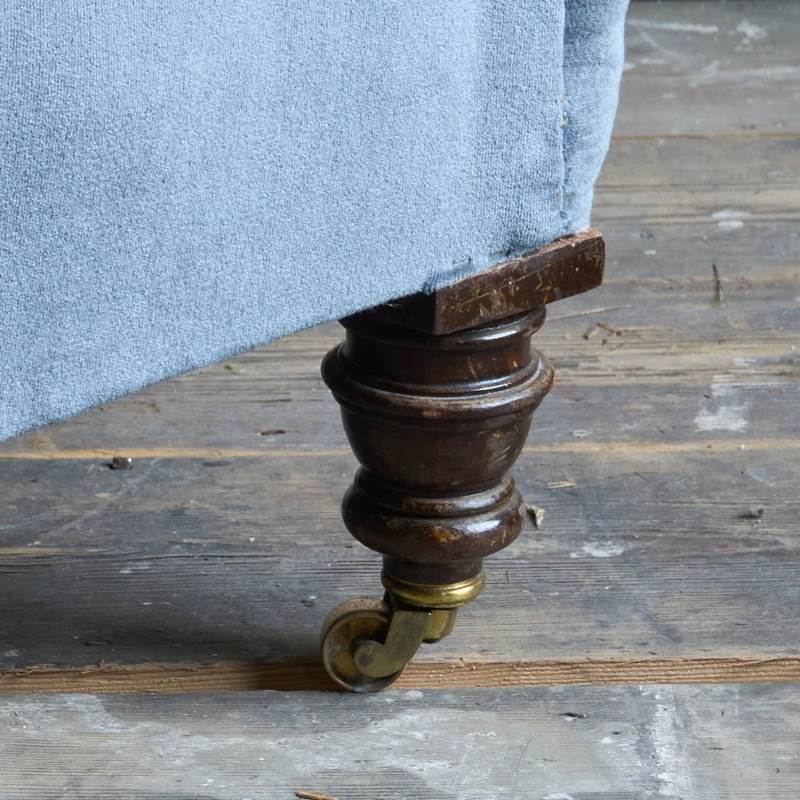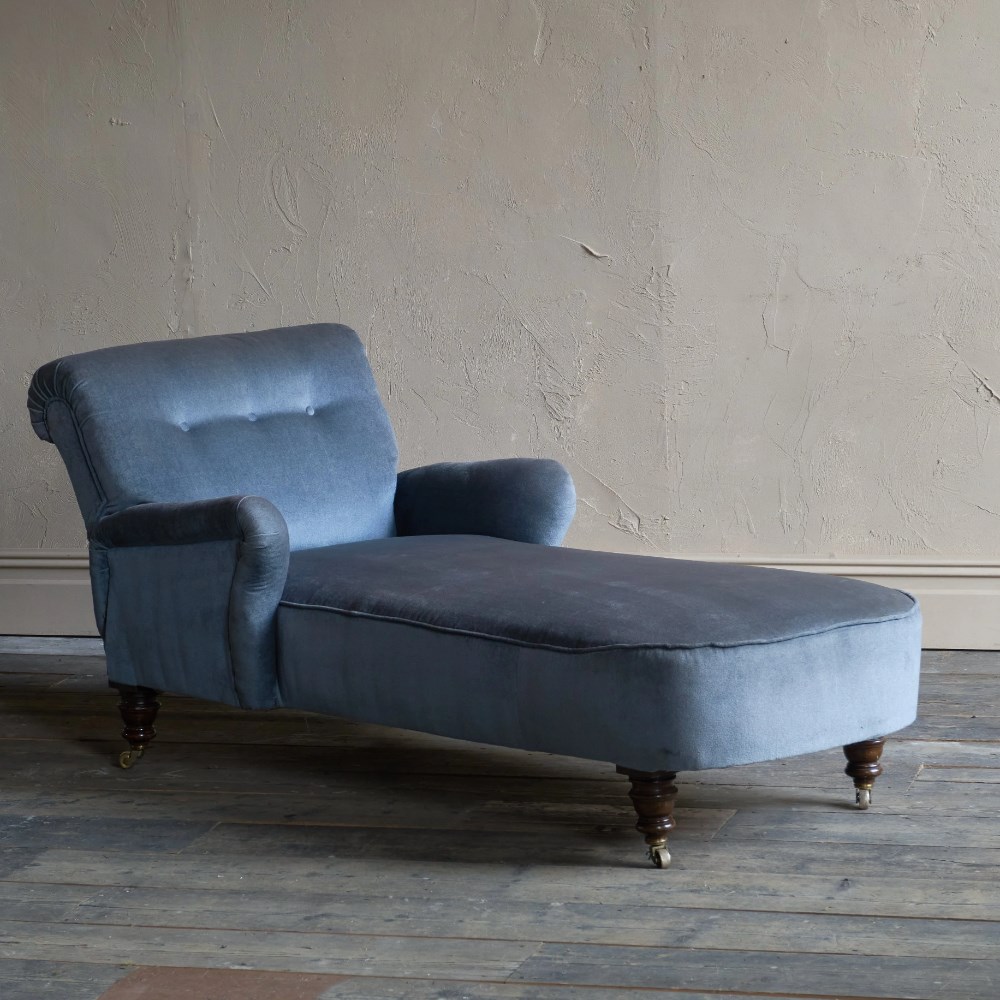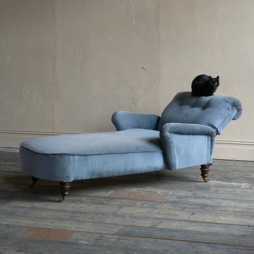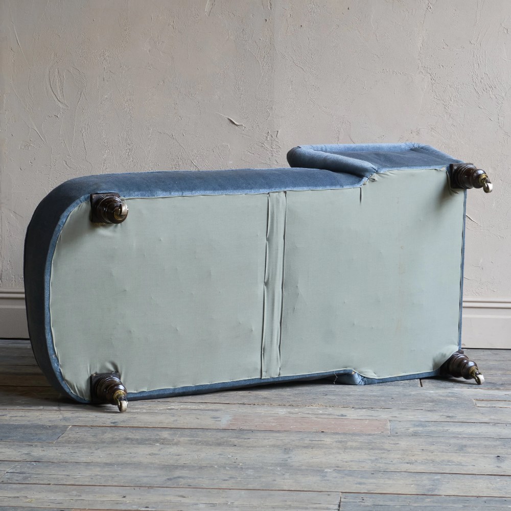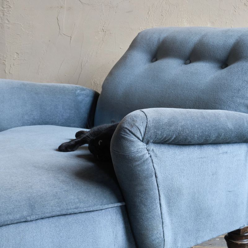 The velvet upholstery is in reasonable condition and could be useable with a professional clean.